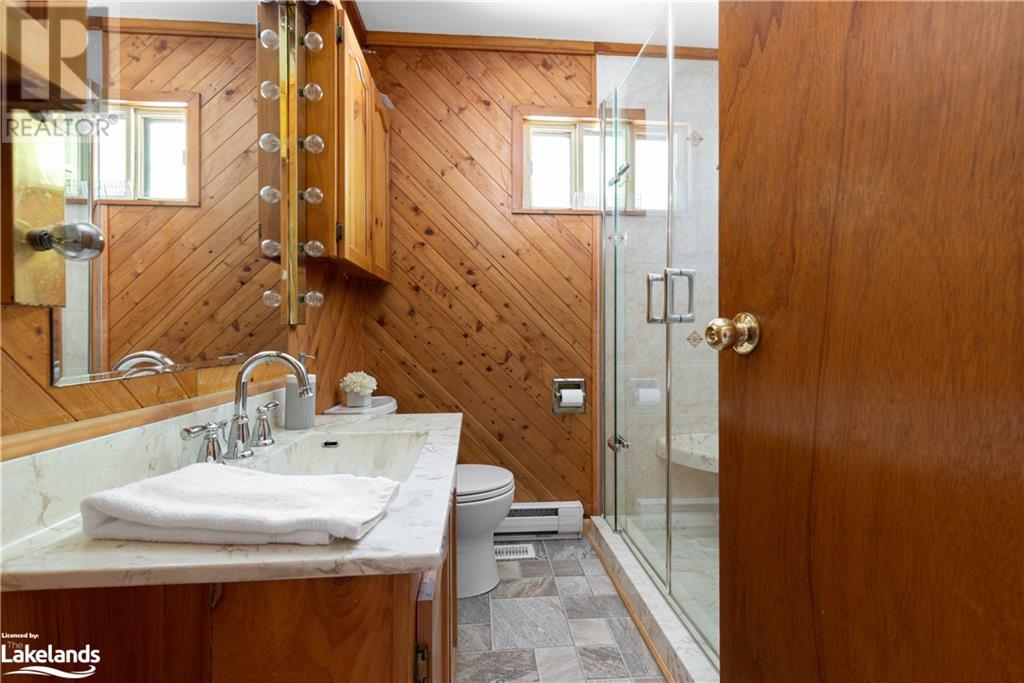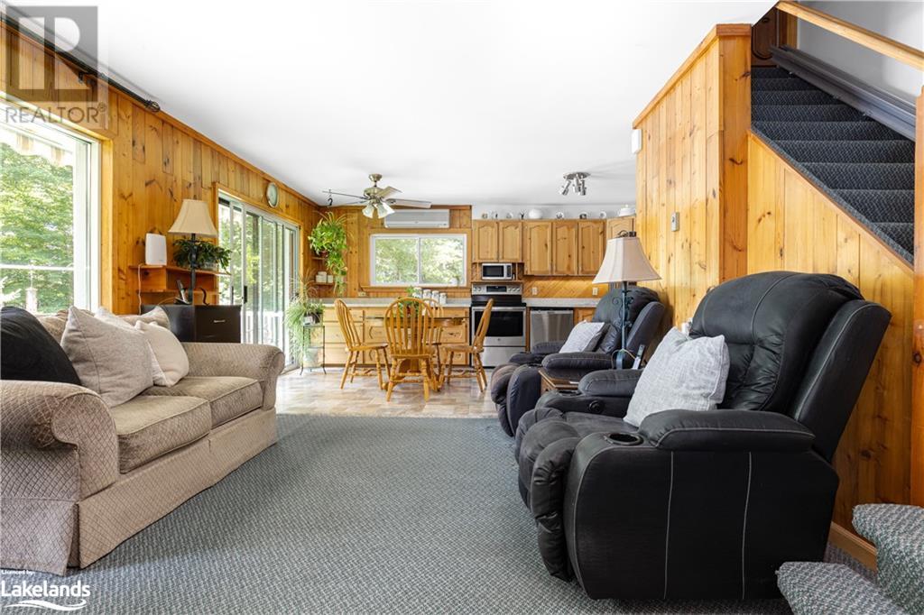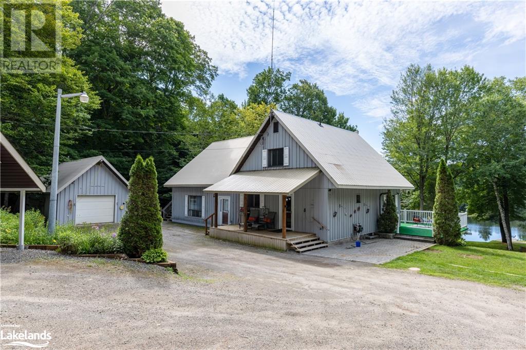 Escape to a waterfront paradise, where the calm of the lake and the embrace of nature create a sanctuary of quiet tranquility and unparalleled privacy! This is where you can recharge, reconnect and escape all year long, or as a summer retreat family and friends! This year round address is resting on a picturesque park-like lot offering up over 2+ acres of privacy, and an impressive 230’ of south facing shoreline, providing the ultimate pause from the hustle and bustle of everyday life. Nestled in off the road, you’ll discover a complete package including a beautifully appointed 5-bedroom, 3-bathroom year-round home, detached oversize 2 bay garage plus storage, a huge detached workshop, and another storage shed for extra summer and winter toys! Inside, the home/cottage provides a sprawling main floor with all the conveniences of one-floor living including a main floor primary suite, stackable laundry and 2 baths. Here all the principal rooms capture waterfront views and the kitchen/dining opening out to a spacious lakeside deck. Upstairs, 4 additional bedrooms and excellent storage provide tons of space for family and visiting guests. Two of the bedrooms offer incredible space + private walkouts. Downstairs a walkout level provides additional space to finished or interim storage. The manicured grounds and perennial gardens invite you outdoors and to the quiet lakeside dock where you are surrounded with incredible peace and quiet. With very few cottages on Little Leech Lake it almost feels like you have it all to yourself, but if you ever crave more adventure and excitement a public access to Clear Lake is a minute away! Pride of ownership inside and out! Plus, this one has all the bonuses like an automatic Generator, Central Air, Propane Forced Air heating, and UV purification system on the well. Indulge in the luxury of ultimate privacy, where the world slows down, and every day feels like a vacation in Muskoka! (id:22211)