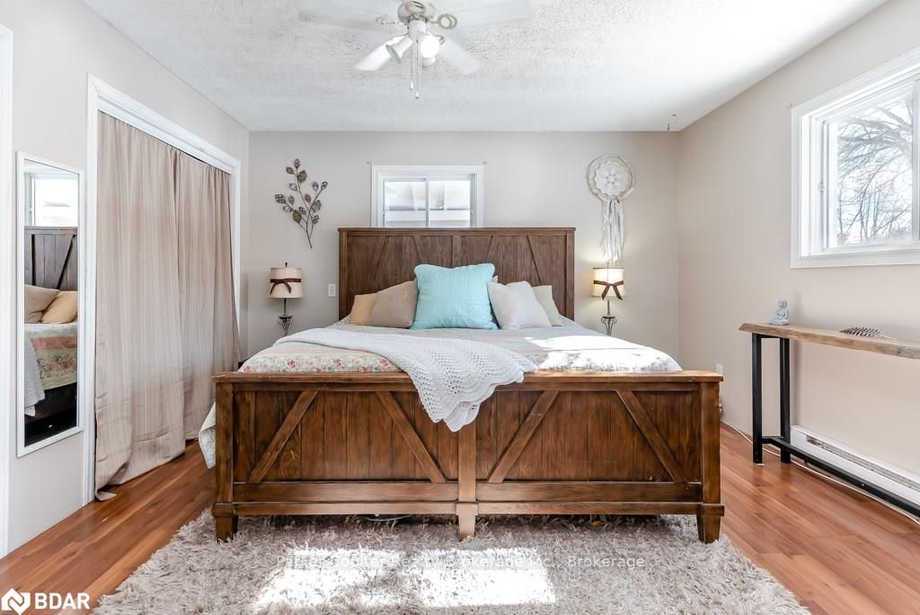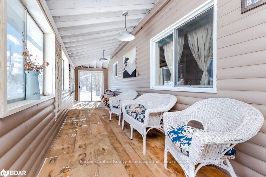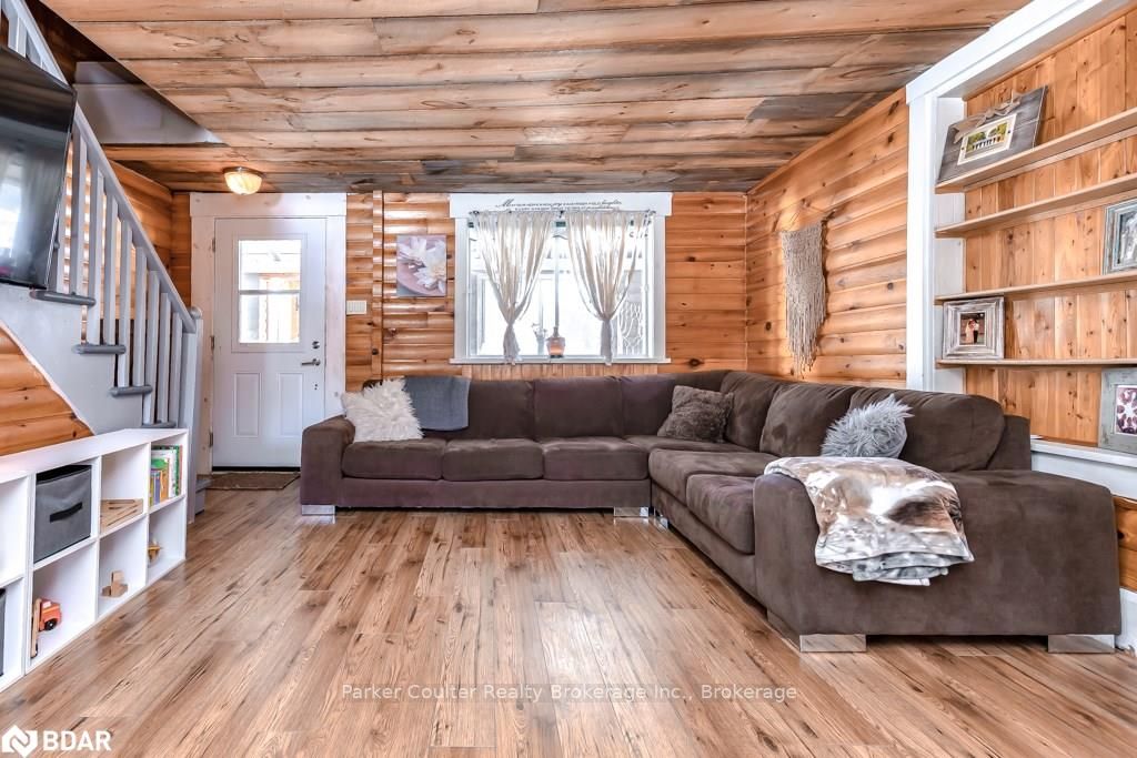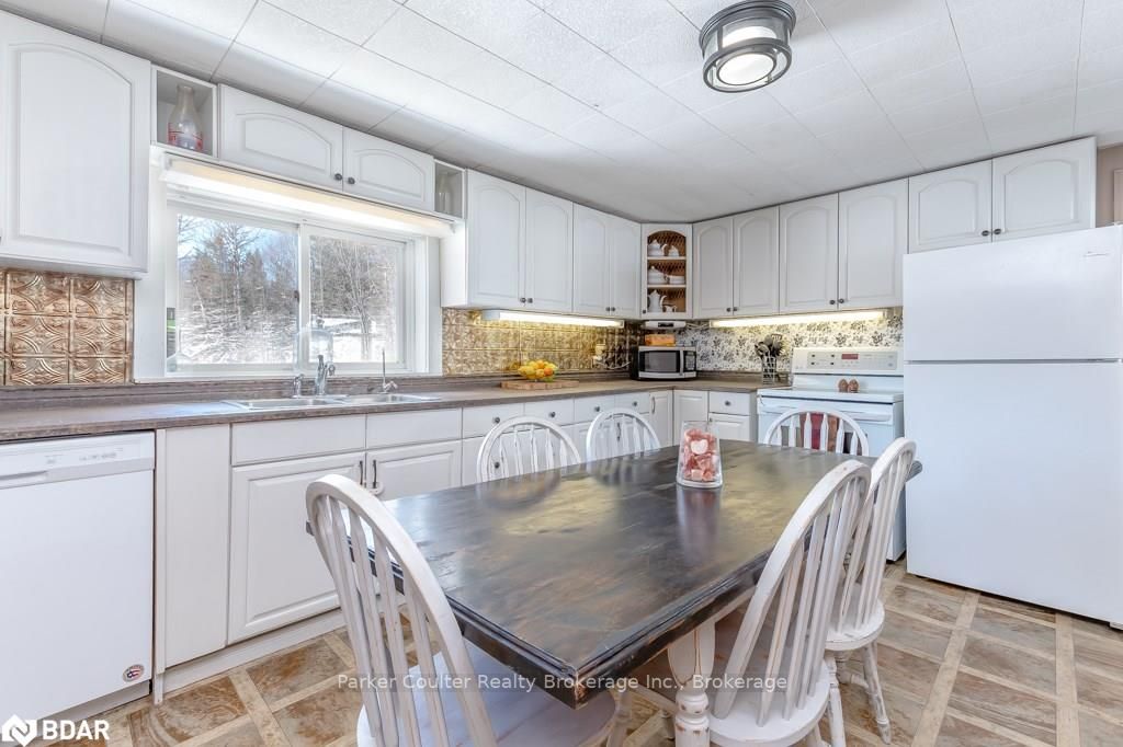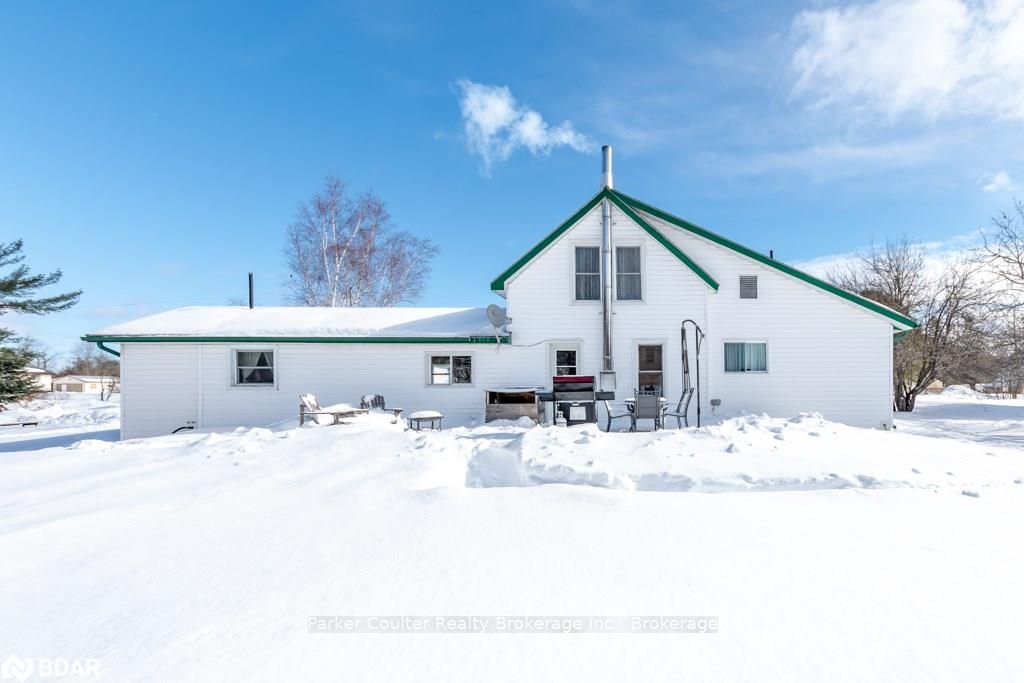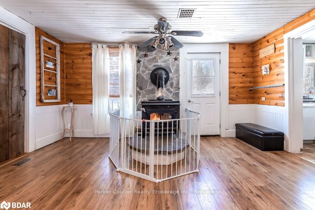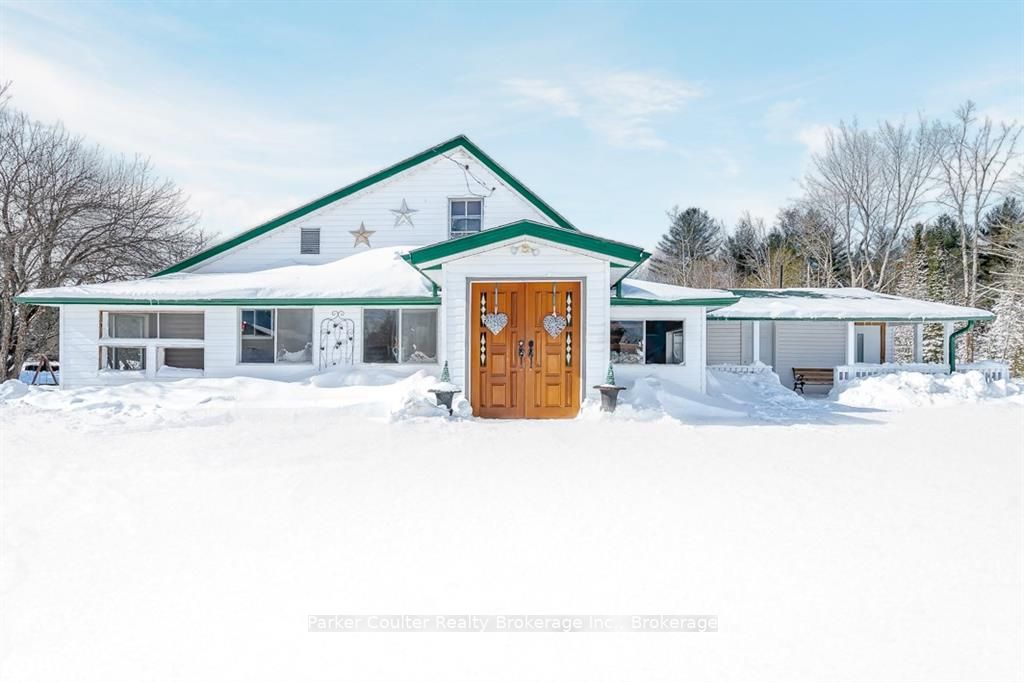 This fantastic home is set back on a beautiful corner lot with a private pond (great for a winter hockey rink) and almost 4 acres of property. Located conveniently just off HWY 118 and only a few minutes to HWY 400. It features, newer windows, all new doors, new floors throughout, drilled well with new reverse osmosis and 3 year old submersible pump. Detached insulated garage with brand new roof, a new 14 x28ft deck off the back of the home facing the pond. Septic approximately 15 years old, pumped within the last year. Furnace 5 years old. See my website for more information.