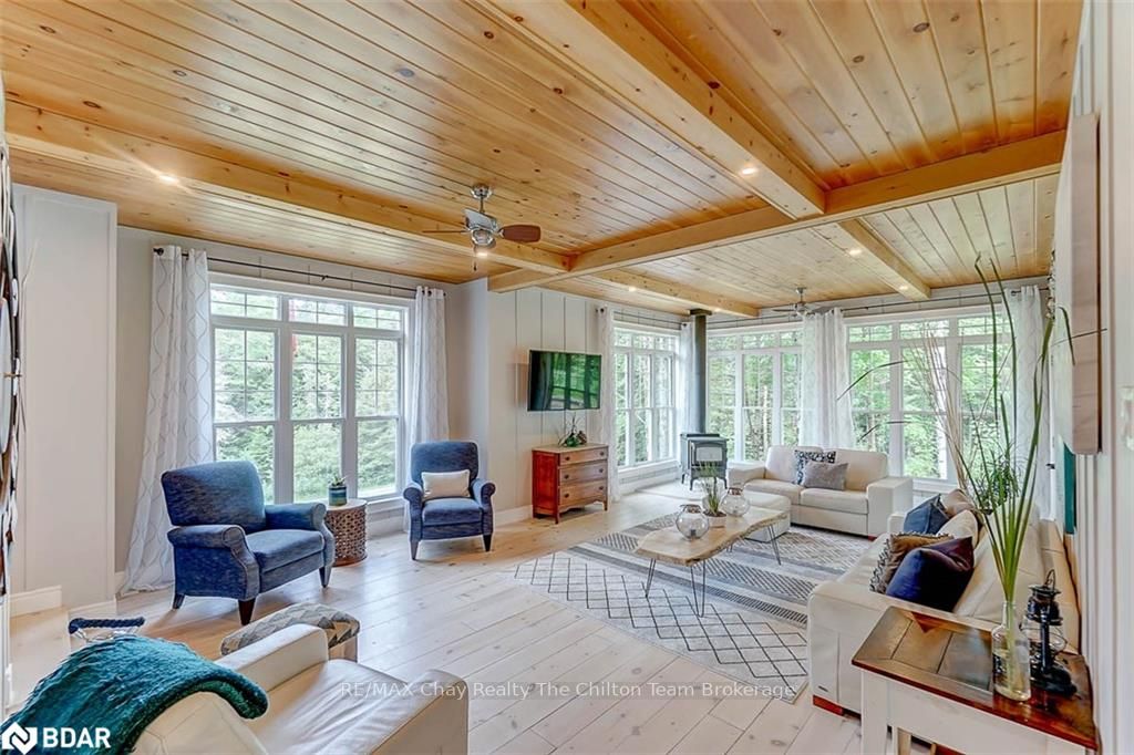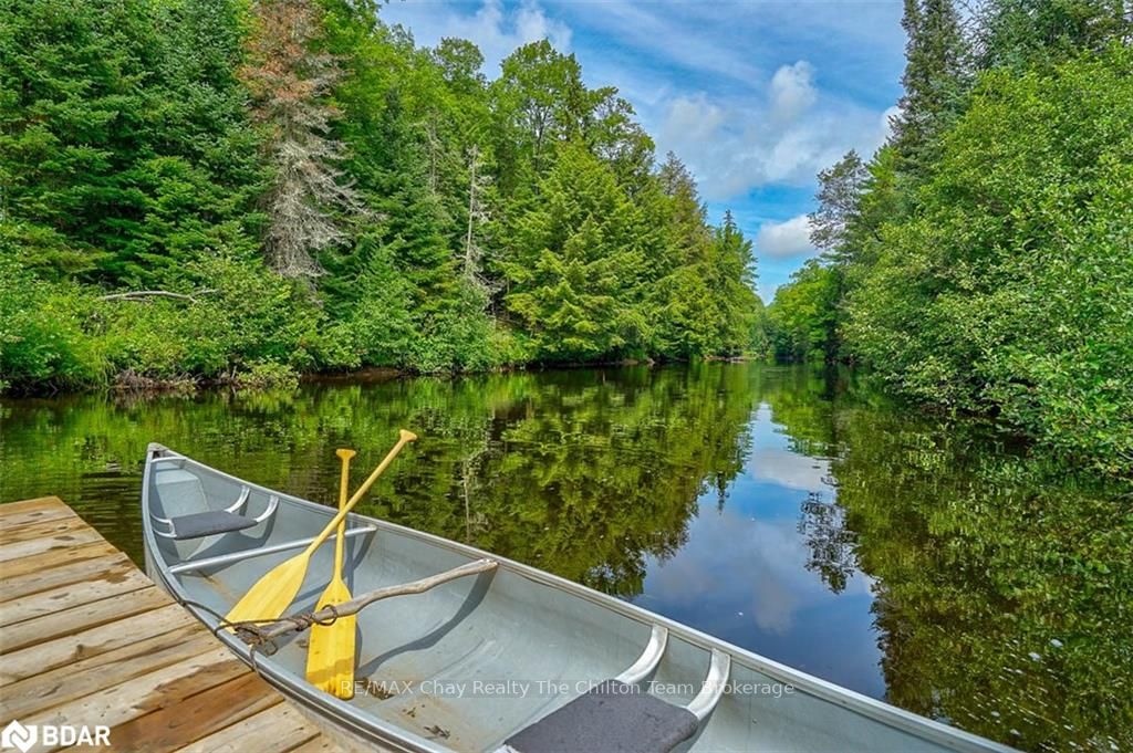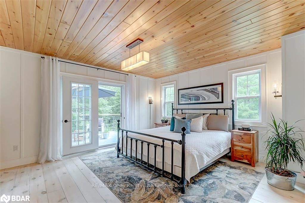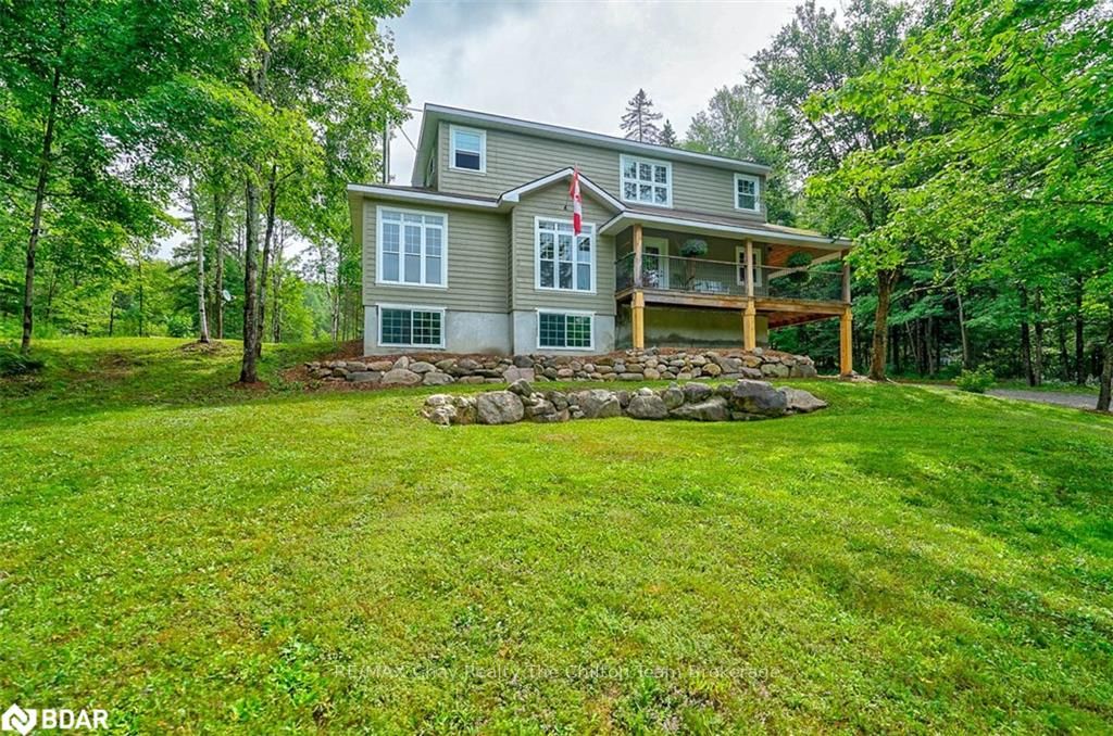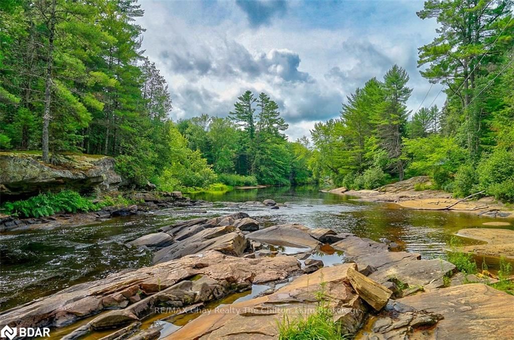 A delightful riverside retreat in Muskoka, this chic & stylish home has great space for family & guests along w/ deeded river access to enjoy all year round. Inside is a great cottage vibe with wood flrs & pine clgs. The kitchen has been refined to include quartz counters, stainless steel appls, and an arabesque marble backsplash. The cozy family rm is wrapped in floor to clg windows and is warmed by a corner wood burning stove. Walkouts from the family & dining rm take you to the covered back deck. On the upper level are 3 generous bdrms, including the inviting master suite w/ a private deck, huge walk-in closet & spa-like 5pc ens. Outside, the home is nestled on a 2+ acre wooded haven w/ trails & lots of room for kids to play. You can canoe, swim or fish from dock across the road on the Black River or enjoy year round activities at the nearby Vankoughnet Village Community Park. ICF foundation, furnace 2018. Easy access to amenities in both Bracebridge & Gravenhurst. Seller is license
