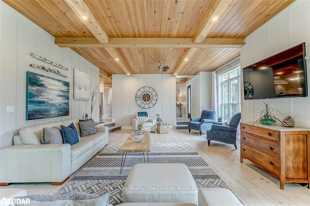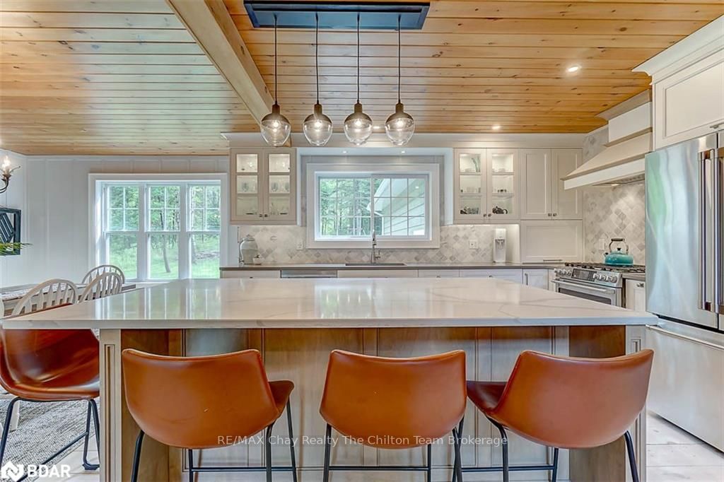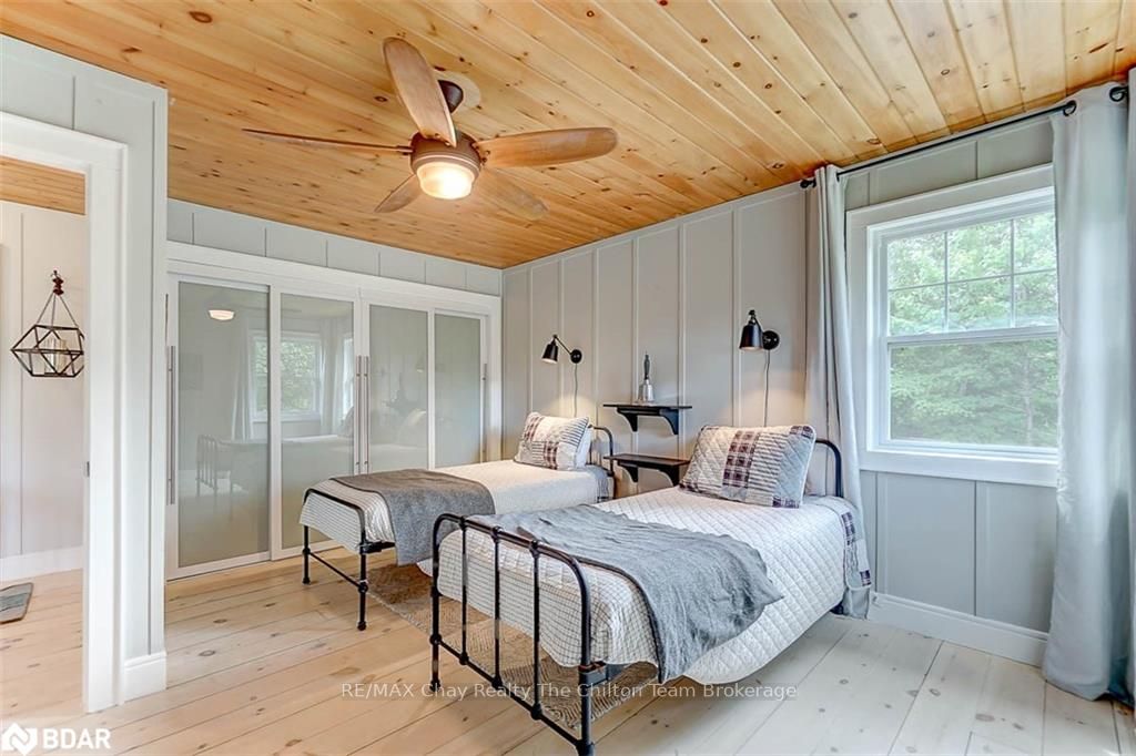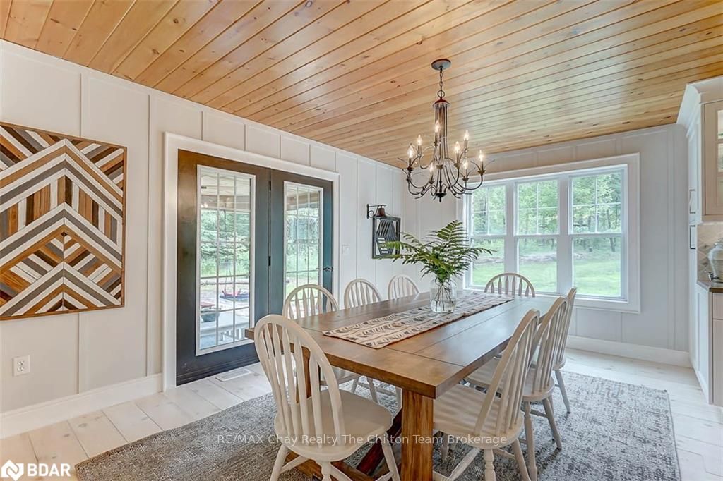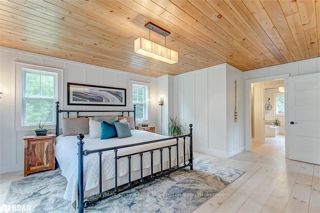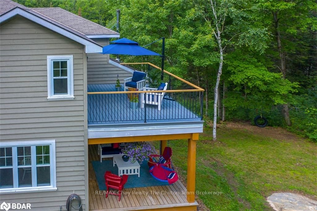 A delightful riverside retreat in Muskoka, this chic & stylish home has great space for family & guests along w/ deeded river access to enjoy all year round. Inside is a great cottage vibe with wood flrs & pine clgs. The kitchen has been refined to include quartz counters, stainless steel appls, and an arabesque marble backsplash. The cozy family rm is wrapped in floor to clg windows and is warmed by a corner wood burning stove. Walkouts from the family & dining rm take you to the covered back deck. On the upper level are 3 generous bdrms, including the inviting master suite w/ a private deck, huge walk-in closet & spa-like 5pc ens. Outside, the home is nestled on a 2+ acre wooded haven w/ trails & lots of room for kids to play. You can canoe, swim or fish from dock across the road on the Black River or enjoy year round activities at the nearby Vankoughnet Village Community Park. ICF foundation, furnace 2018. Easy access to amenities in both Bracebridge & Gravenhurst. Seller is license