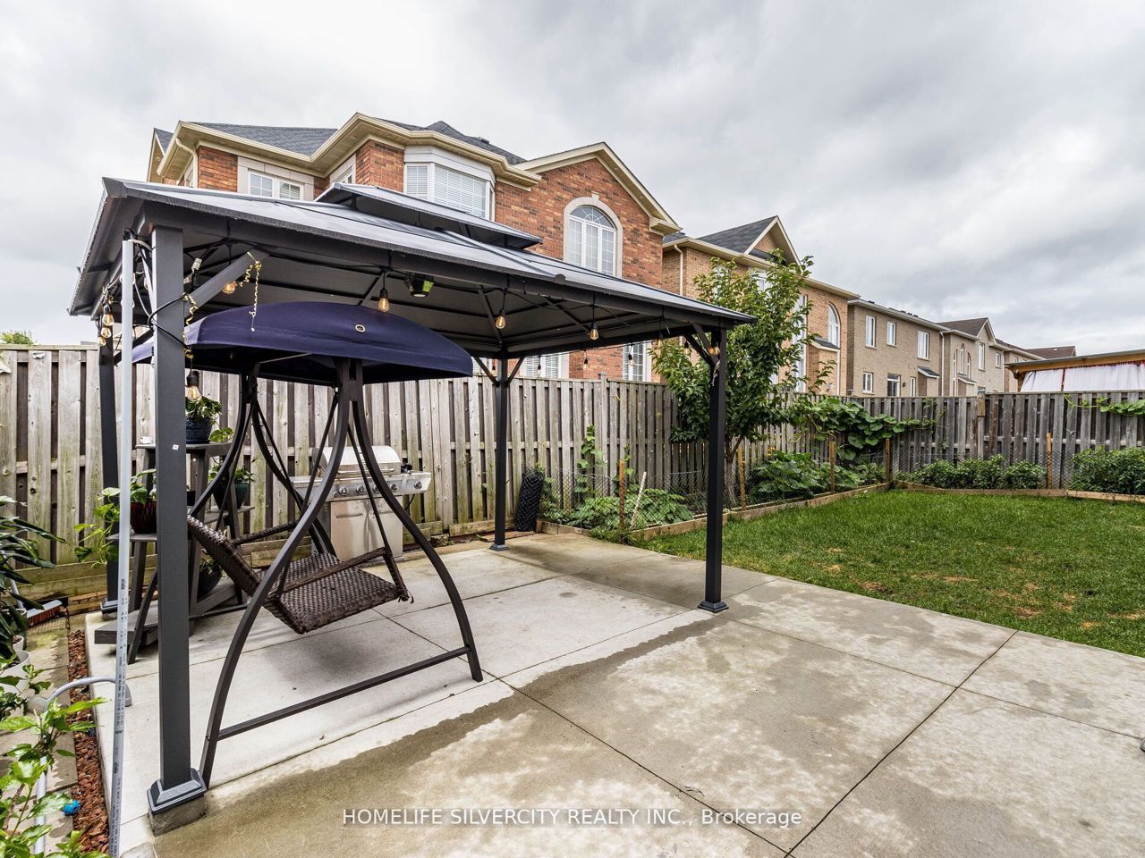 A beautiful 2614 sqft. detached house with a prime corner lot offers four bedrooms on 2nd floor and 2 bedrooms in the basement. Freshly painted, custom blinds, pot lights throughout, oak staircase, den on 2nd floor. Newly renovated kitchen with huge center island and stainless steel appliances. Separate family room offers fireplace with open to above ceiling. A large backyard with a beautiful gazebo. Entire house filled with windows with a wrap around front porch, main floor laundry, walkout to yard.All Electrical Light Fixtures and Custom window coverings. Gazebo in the backyard.