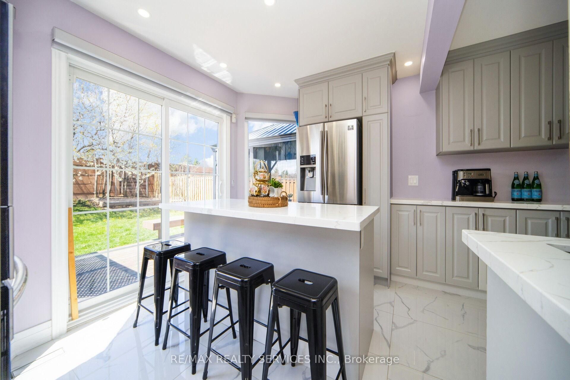 主层采用明亮的布局,铺设硬木和瓷砖地板,配有便利的两件套化妆间和主层洗衣房。现代化的厨房(2021年升级)配备时尚橱柜、石英台面、不锈钢电器,以及宽敞的早餐区,可直通大露台和凉亭,是娱乐的绝佳场所。舒适的家庭房配有燃气壁炉,独立的客厅和餐厅区域为日常生活和特殊场合提供了充足空间。