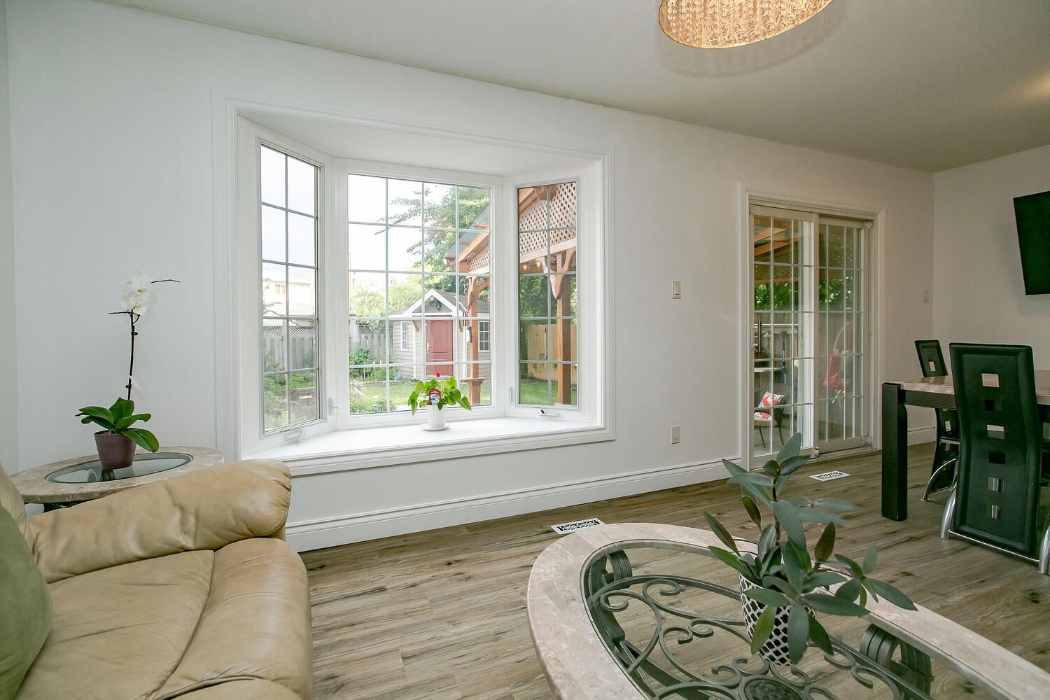 Vinyl Floor Bay Window O/Looks Backyard