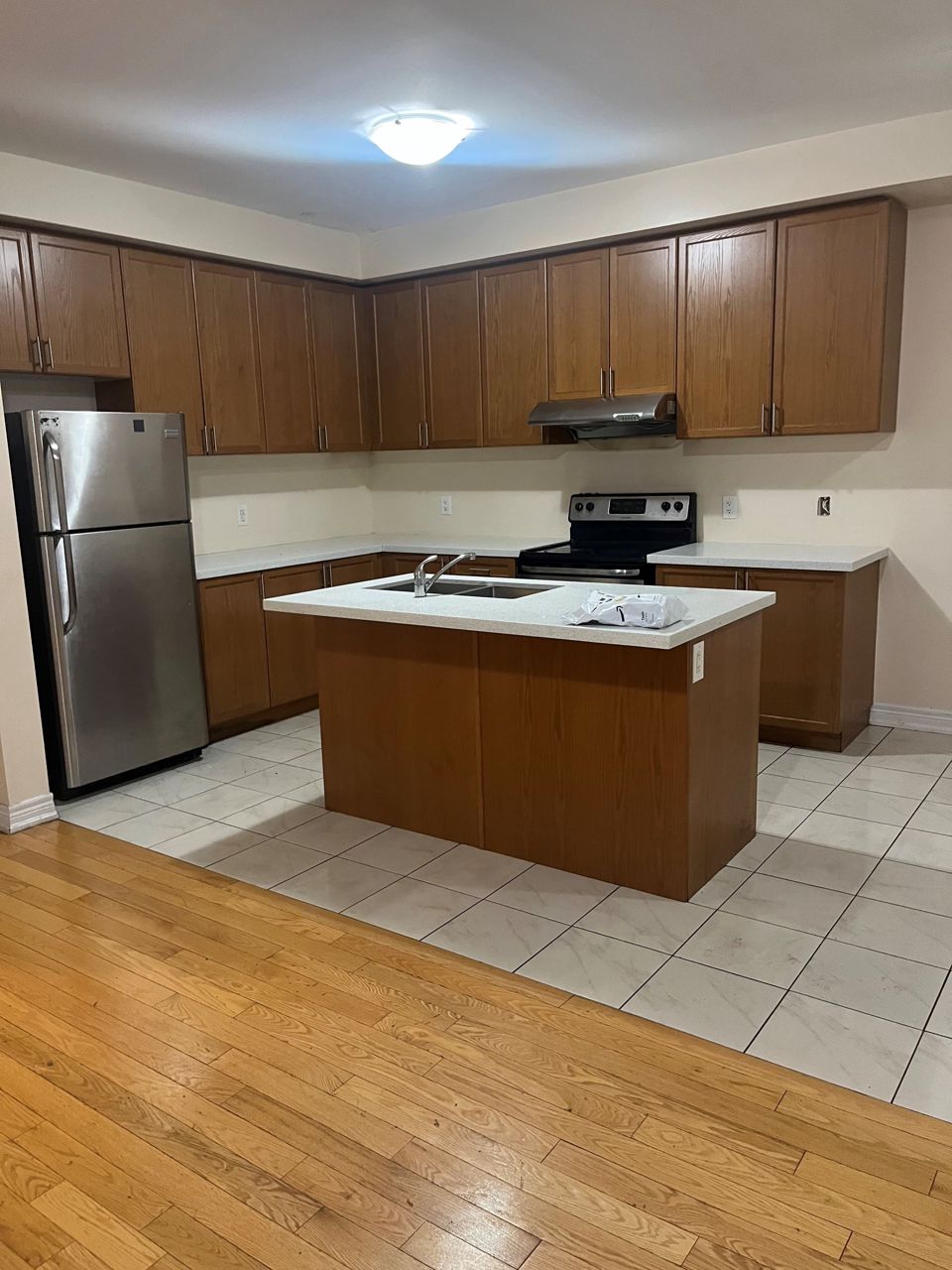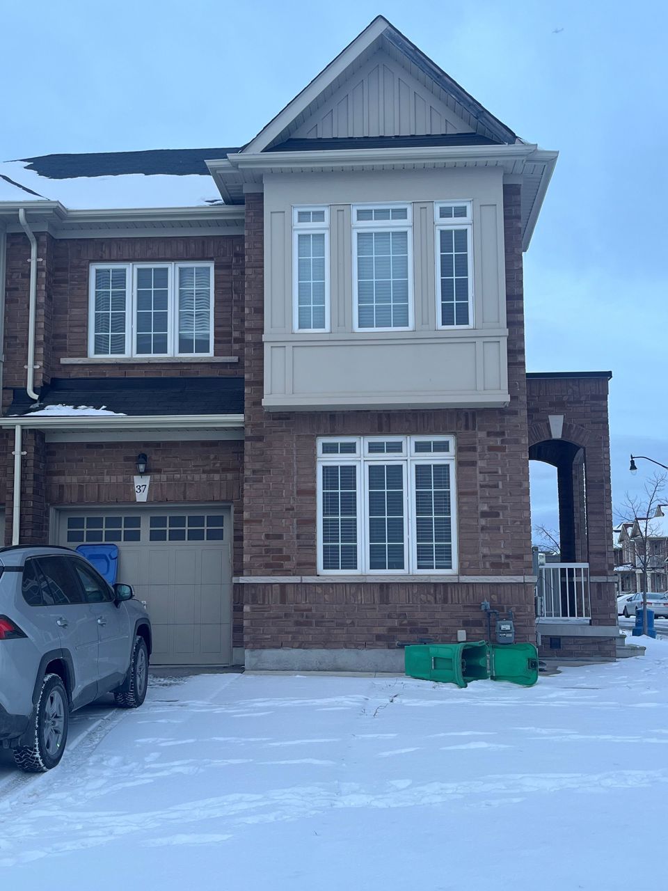 Stunning corner semi-detached house, large window for bright and spacious 4 bedrooms w/ sep. Living an d Family rooms. 9 celling on both floors, oakwood staircase ! 1900 square floor semi-detached home located in a lovely new subdivision with all amenities and shops close by. Enjoy a huge master bedroom with a 4 pc ensuite and walk in closet with 3 car parking central air, garage door opener, quartz kitchen counter, 9 foot ceilings on main and second floor. Spacious airy flow throughout. Walking distance to walmart & home depot. Beautiful hardwood floors on main level.Basement not included. New counter quartz and backsplash have been installed. Brand new fridge and faucets.