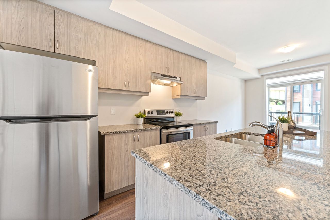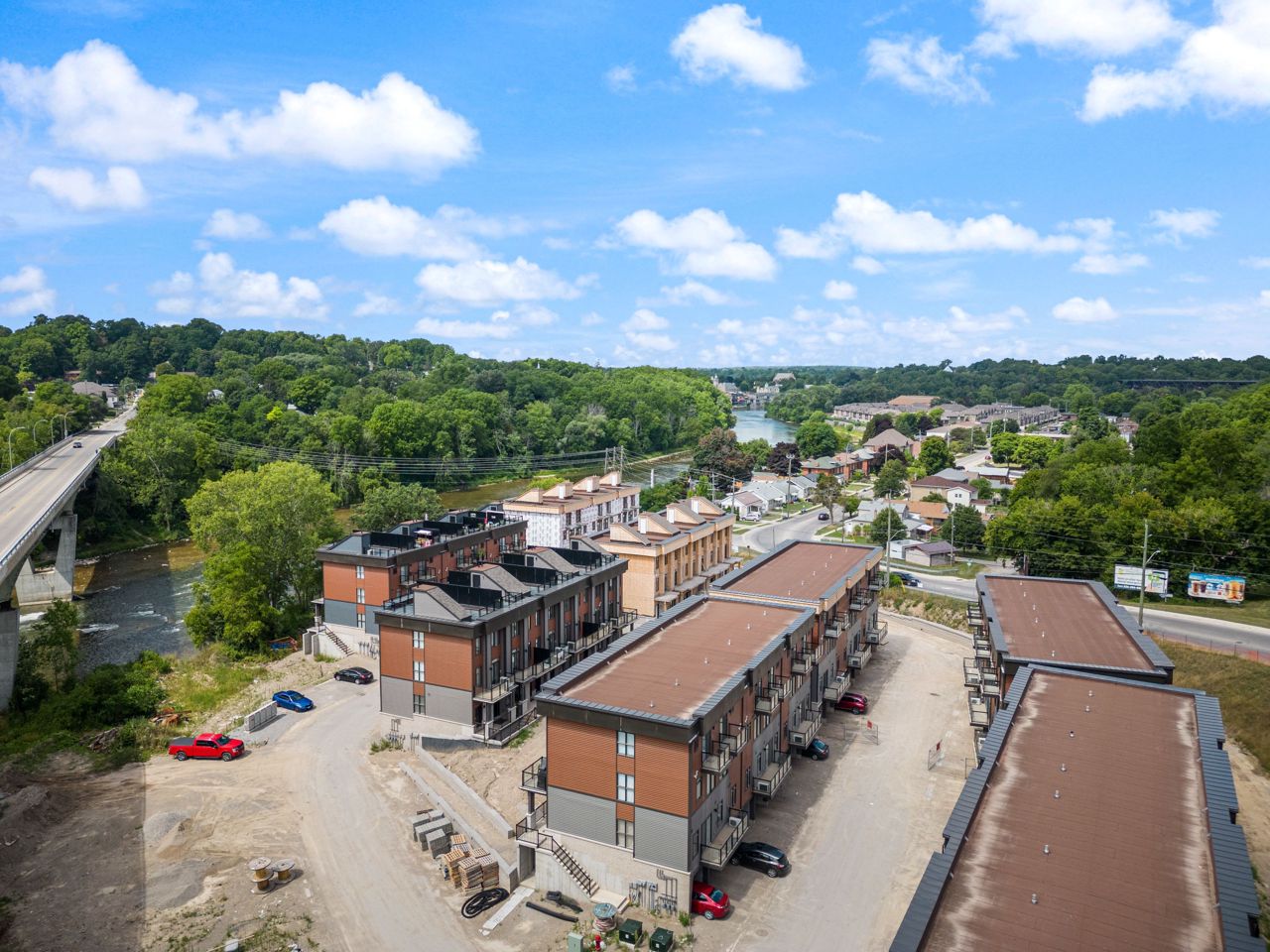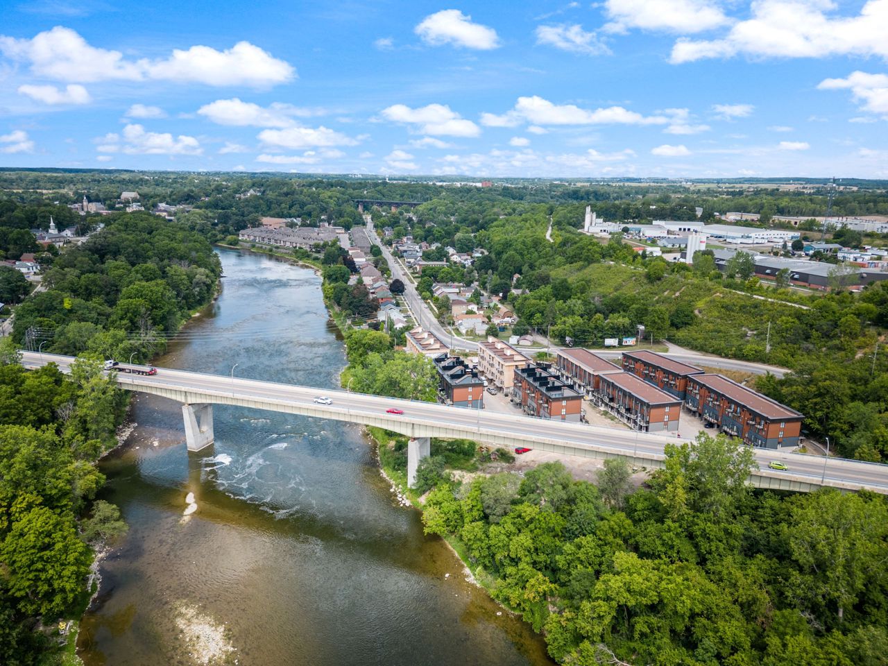 Welcome to luxurious riverside living. This executive style townhome offers 2 bed, 2.5 bath 1,181 sq.ft. of finished living space. The main floor boasts an abundance of natural light, an open concept kitchen/living/ dining area with a private balcony and laminate flooring through out. The eat-in kitchen features stainless steel appliances and granite countertops. The stunning hardwood staircase leads to the upstairs complete with 2 bedrooms, laundry, another private balcony, and a main 4-piece bath. The primary bedroom features 2 large closets and a private 3 piece ensuite. The private single garage located on the lower level and the extra parking spot outside the garage accommodates for 2 vehicles. Paris, Ontario is filled with locally owned artisanal shops & restaurants overlooking where the forks of the Nith and Grand Rivers meet. All Amenities located close by. Close to shopping, schools, parks, and other amenities. Easy access to both Hwy 403 and 401.AAA Tenants only please. Full Equifax Credit Report, Employment Letter, Recent 2 Paystubs, Rental Application, References, ID's, 1 Year Lease, Tenant Insurance. Tenant To Pay All Utilities, Hot Water Heater and Water Softener Rental.
