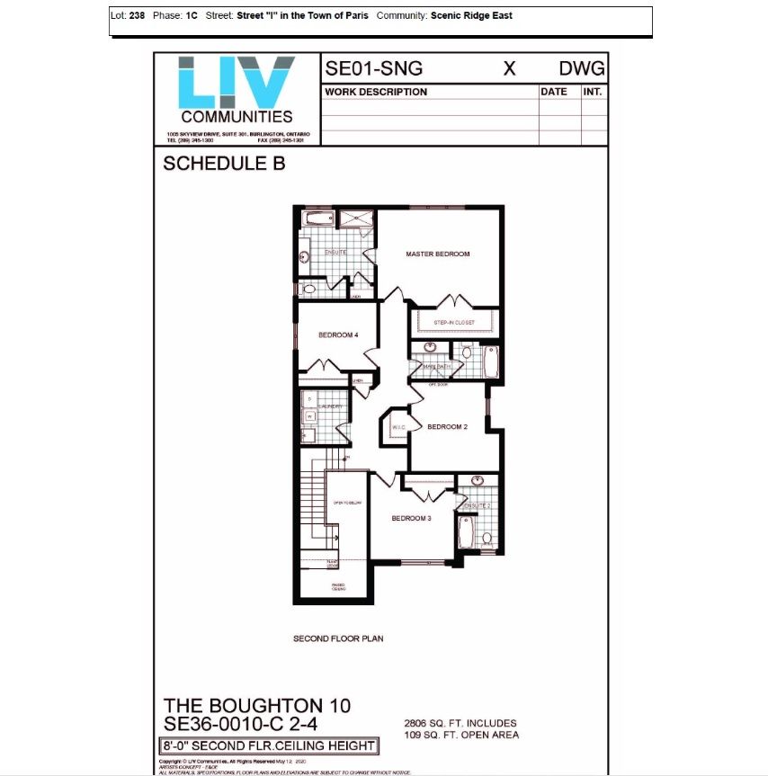 Priced to sell!!! This brand new modern, luxury, four-bedroom, detached home is located in one of the most sought-after communities in Paris, "Canada's prettiest little town." LIV Communities Boughton 10, with almost 3000 sqft of living space, is a stunning masterpiece with a well-crafted floor plan, stunning modern finishes, a double car garage, a covered porch with exterior columns, and luxurious tall double-entry doors. Inside the home, you will fall in love with the two-story foyer, open-concept living area with impressive 9-foot ceilings on the main floor, Designer kitchen with 36” extended upper kitchen cabinet height, formal dining room, upgraded porcelain tiles throughout kitchen and bathrooms, California knock-down ceilings throughout the home, patio doors to the back yard and direct entrance to the garage. Upstairs you have an oversized master bedroom with four piece ensuite, three generous size bedrooms, a second 3 piece ensuite, a laundry room, and a third bathroom.Located in a highly desired area just minutes from the Grand River, Paris sports complex, schools, parks, trails, restaurants, shopping and less than 2 minutes from the 403, making this location perfect for commuters.