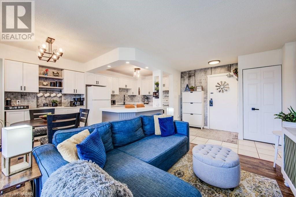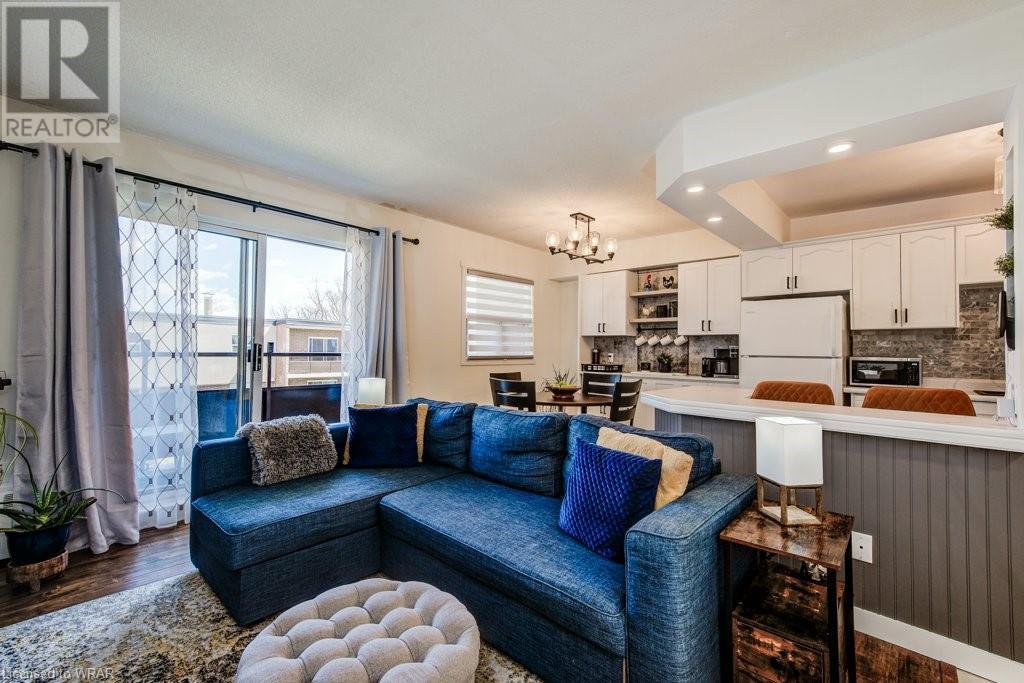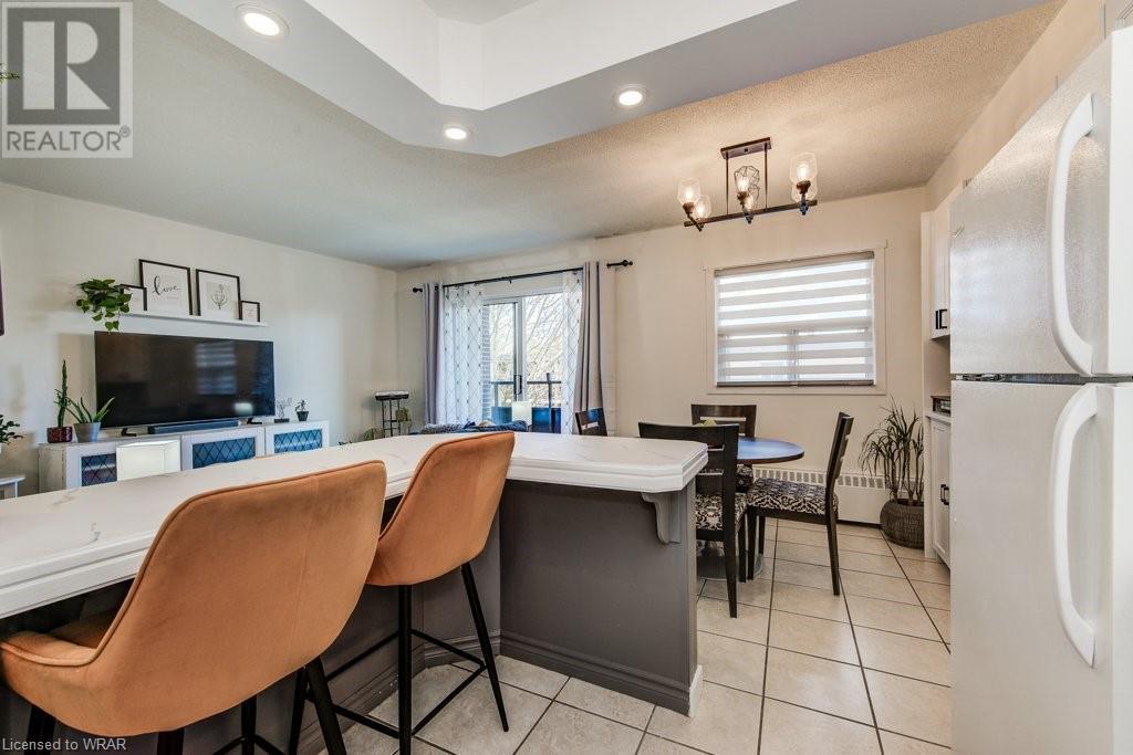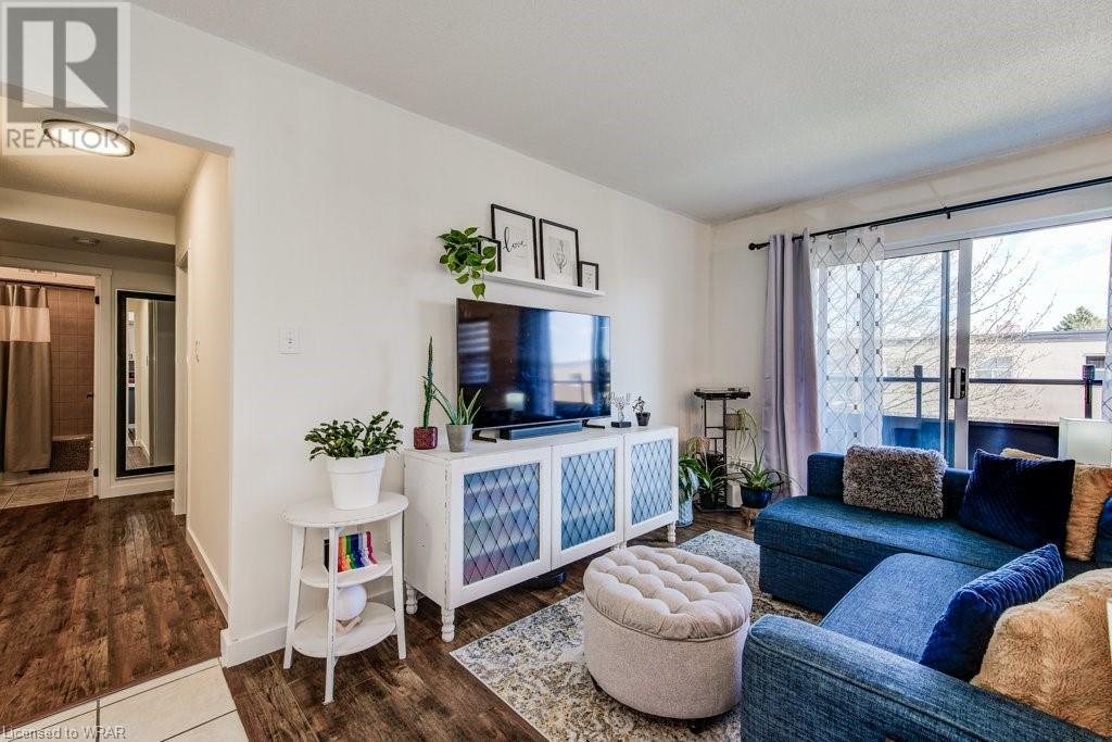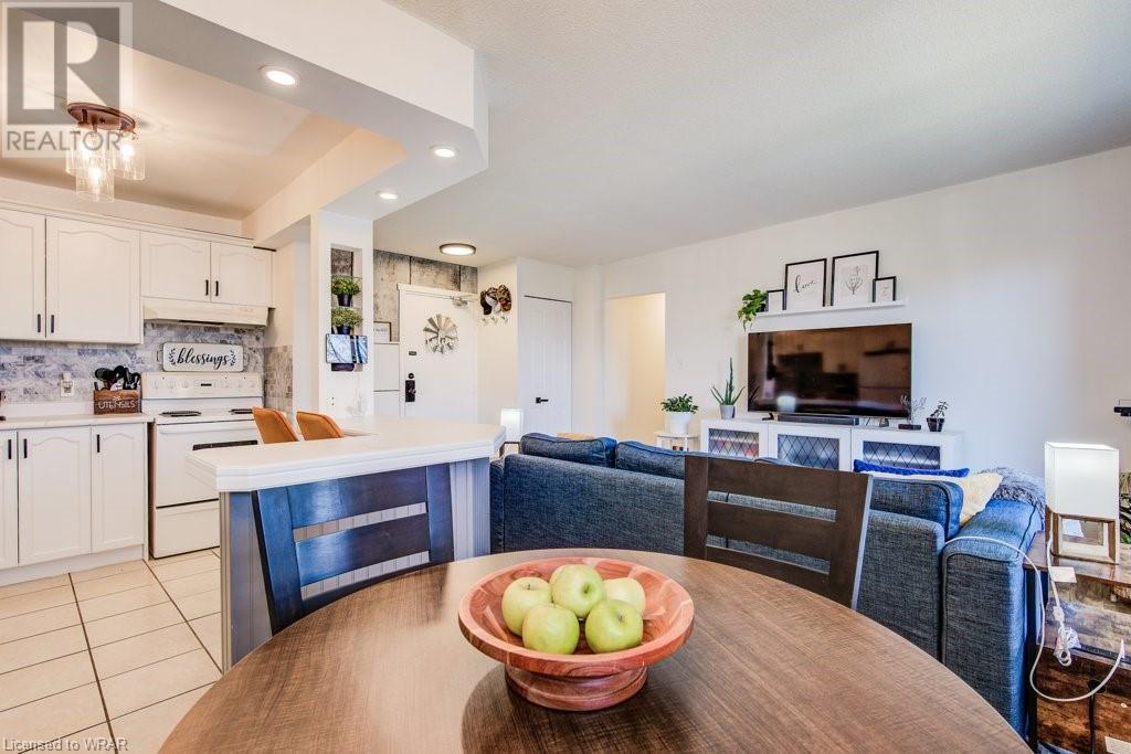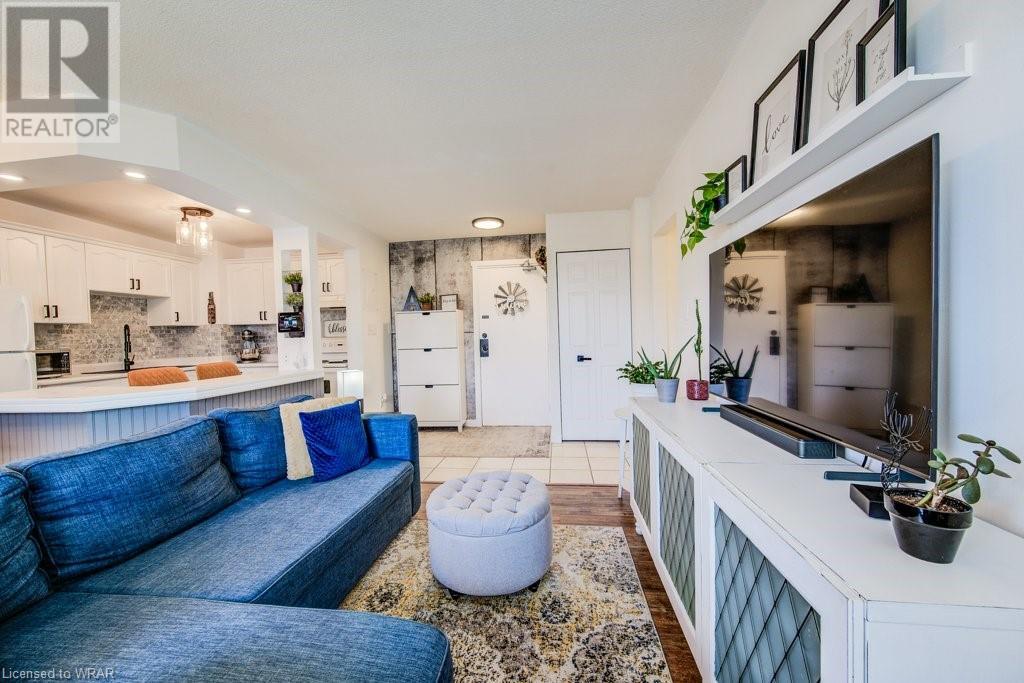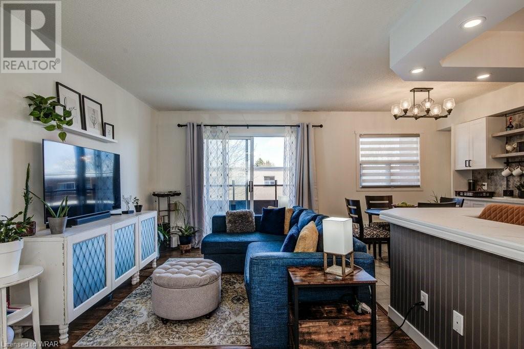 Welcome to this charming and beautifully updated 2-bed, 1-bath condo located in a prime area with quick access to amenities, Brantford Hospital, and the 403! The kitchen is a standout feature, boasting a newly built cupboard wall and upgraded modern finishes. LED lights illuminate the space, creating a bright and inviting atmosphere. Enjoy the eat-in counter space or opt for a sit-down meal in the designated dining area. The condo includes generously sized bedrooms and the 4-piece bathroom is sleek and functional. Additional perks include an in-unit washer and dryer. This unit comes with one parking spot and a storage locker located conveniently across the hall. The condo has been freshly painted and features modern door handles and hinges, reflecting the pride of ownership and meticulous care given to this home. Step out onto the open private balcony to enjoy fresh air and outdoor living space. Whether you're a first-time buyer or looking to downsize, this condo offers the perfect blend of style, comfort, and convenience. Don't miss the opportunity to make this well-cared-for condo your new home! (id:22211)