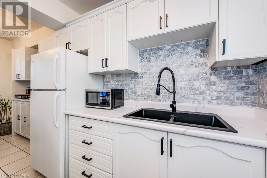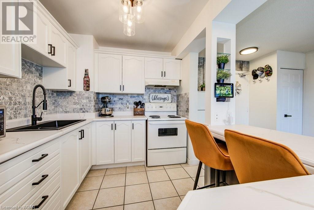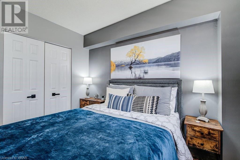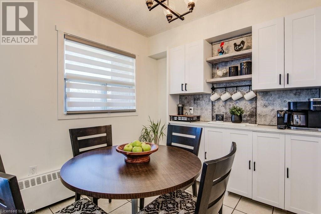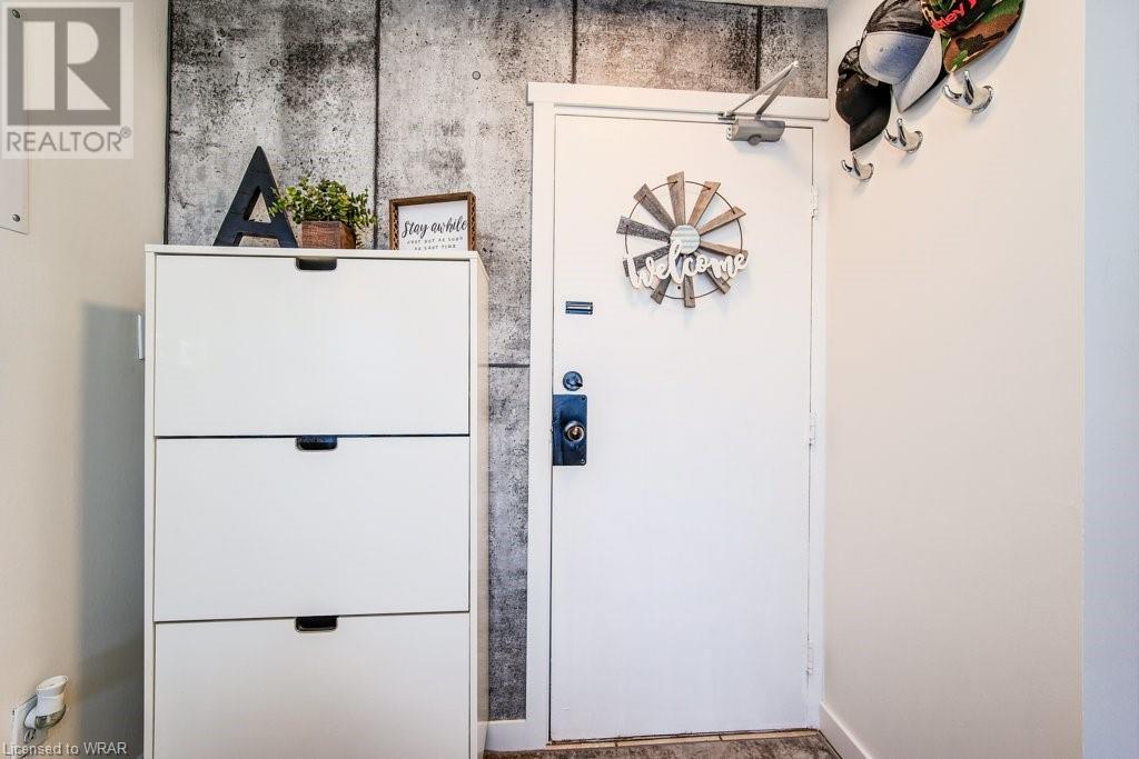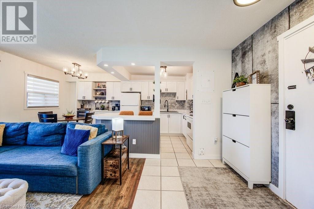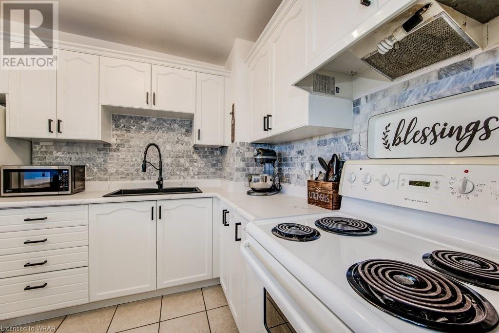 Welcome to this charming and beautifully updated 2-bed, 1-bath condo located in a prime area with quick access to amenities, Brantford Hospital, and the 403! The kitchen is a standout feature, boasting a newly built cupboard wall and upgraded modern finishes. LED lights illuminate the space, creating a bright and inviting atmosphere. Enjoy the eat-in counter space or opt for a sit-down meal in the designated dining area. The condo includes generously sized bedrooms and the 4-piece bathroom is sleek and functional. Additional perks include an in-unit washer and dryer. This unit comes with one parking spot and a storage locker located conveniently across the hall. The condo has been freshly painted and features modern door handles and hinges, reflecting the pride of ownership and meticulous care given to this home. Step out onto the open private balcony to enjoy fresh air and outdoor living space. Whether you're a first-time buyer or looking to downsize, this condo offers the perfect blend of style, comfort, and convenience. Don't miss the opportunity to make this well-cared-for condo your new home! (id:22211)