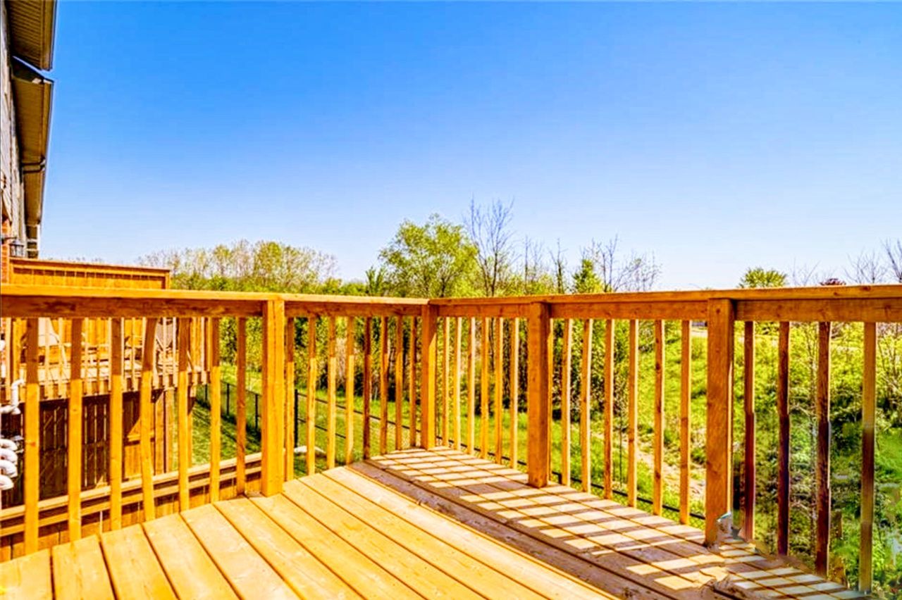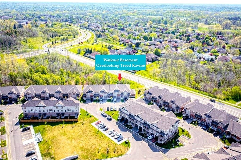 Stunning Townhouse with WALK-OUT BASEMENT OVERLOOKING TREED RAVINE in West Brant Built by Award Winning Builder New Horizon Development Group. This impressive townhouse is offering 1580 Sq. ft., 3 beds, 2.5 baths. The main level open concept layout with 9-foot ceilings, beautiful hidden lights in ceilings and is complete with high-end stainless-steel appliances including a gas stove & the lovely kitchen having an ISLAND with double sink. The great room windows overlook the amazing green space at the back and open to the perfectly sized deck for you to enjoy the view. The second floor has a huge primary suite with an ensuite bathroom 4 pieces with featuring double sinks, double glass shower and walk-in closet. The other 2 bedrooms share the main 3 pieces bathroom, and the laundry room is convenient in the same level as the bedrooms with oversized high-end washer and dryer. Not only that, but there is also a WALK-OUT BASEMENT.