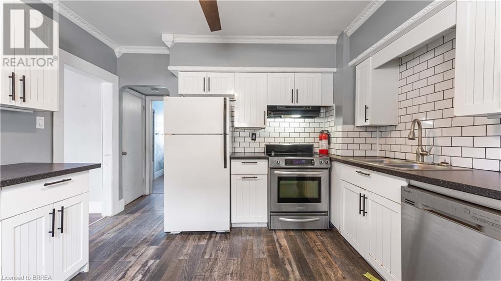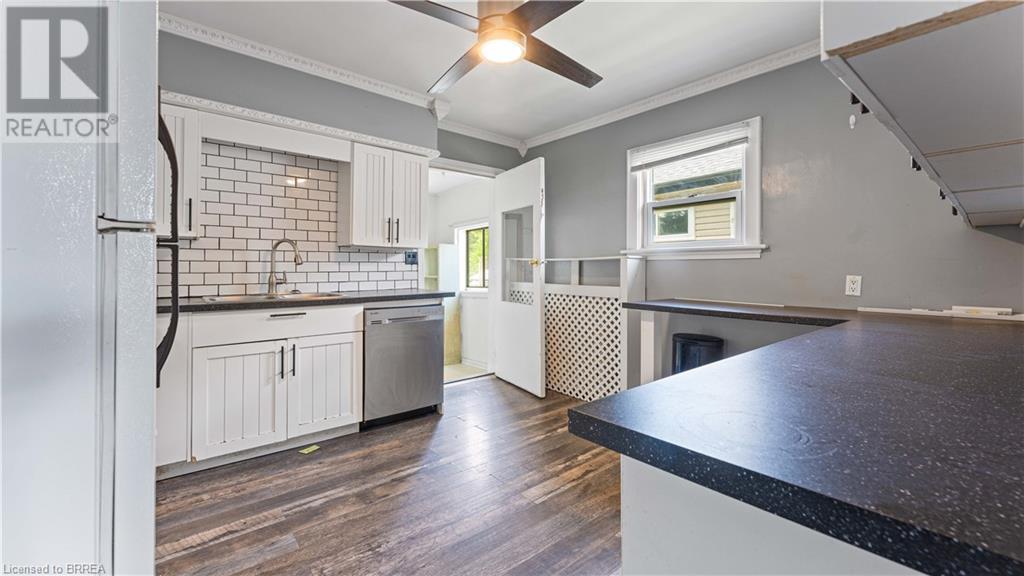 Terrace Hill all brick charming 4 bedroom 1.5 bath home in a great neighbourhood with immediate possession is ideal for the first time home buyer or investor, many recent updates including newer kitchen with all newer cabinets, w/subway tile backsplash, over sink lighting, underlighting on the bonus bank of cabinets, very stylish ceiling fan, and built-in eating area. Fridge, Stove & Buiilt-in Dishwasher. The main 4 piece bath has also been re-done featuring a custom ceramic tub surround and more! There are 2 of the 4 bedrooms on the main floor and the other 2 on the upper level including a 2 piece ensuite off one of the bedrooms. The lower level boasts a large rec-room and large laundry/utility room with tons of storage. Close to schools, parks, shopping, hospital, grocery store and all the amenities that King George Road has to offer this one is a must see! (id:22211)