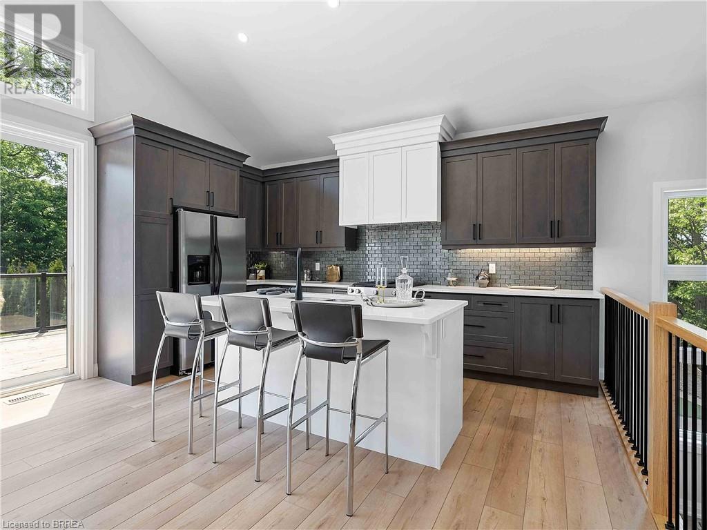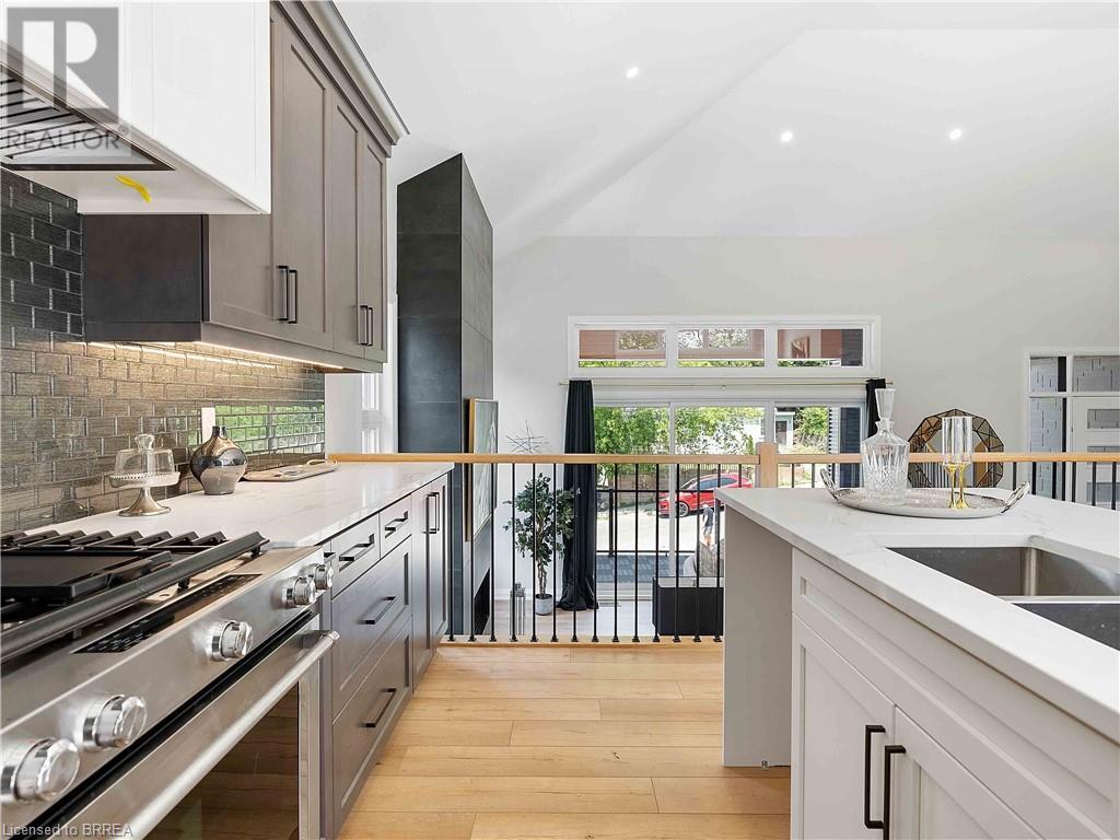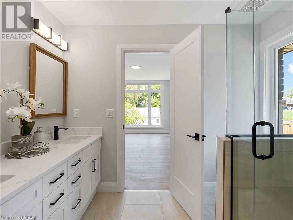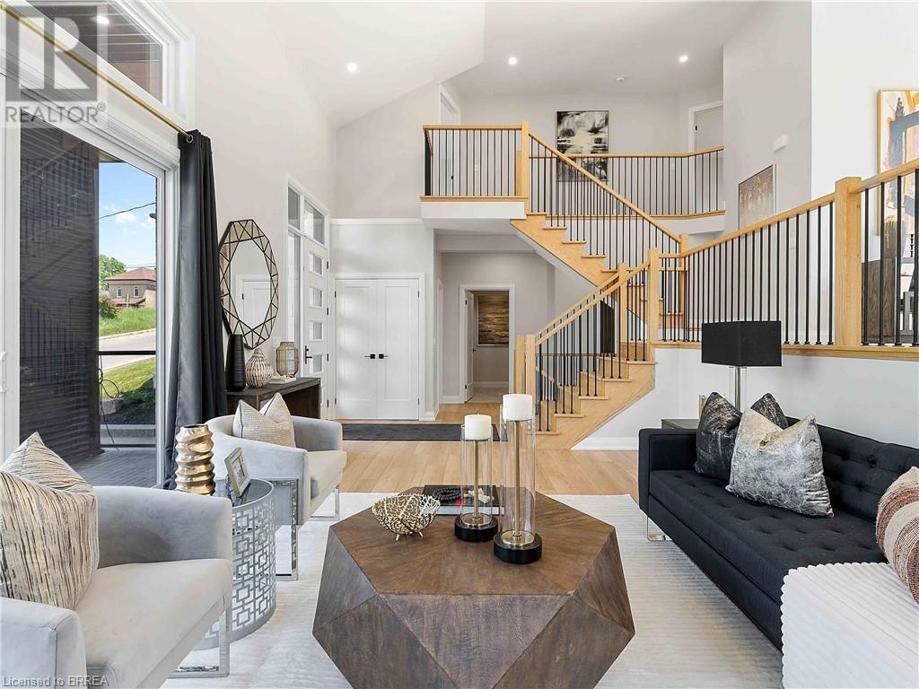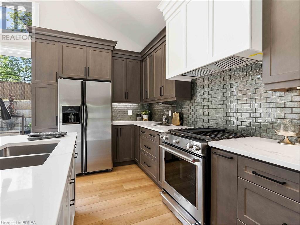 Exquisite Home built by CarriageView Construction - an established, local builder known for his quality finishes and outstanding workmanship. This modern home spares no expense and features all the bells & whistles. Vinyl plank flooring on every level including Heated Floors in the Rec Room, Main Floor Laundry, Main Floor Bath, and Main Floor (2) Bedrooms. Large windows including transom windows located on Main Floor allowing for plenty of natural sunlight. Open Concept Main Floor with 14ft & 18ft Sloped Ceilings and an abundance of Pot Lights. Spacious Dining Room & Kitchen, which features Granite Countertops, Backsplash & an Island. This area overlooks the Great Room which boasts a Gas Fireplace and sliding doors to the Front covered Balcony. Easy access from the Dining area thru the Sliding doors to the rear private 12ft x 21ft Deck and a Fenced, Landscaped yard boasting Armor Stone. Exposed Aggregate Front Steps with a covered Porch. Includes Central Air and a paved Asphalt Driveway (to be completed prior to closing). Walking distance to the Brantford General Hospital, a park and so much more. For commuters, the drive to Hwy 403 is just minutes away. TARION Warranty is included. (id:22211)