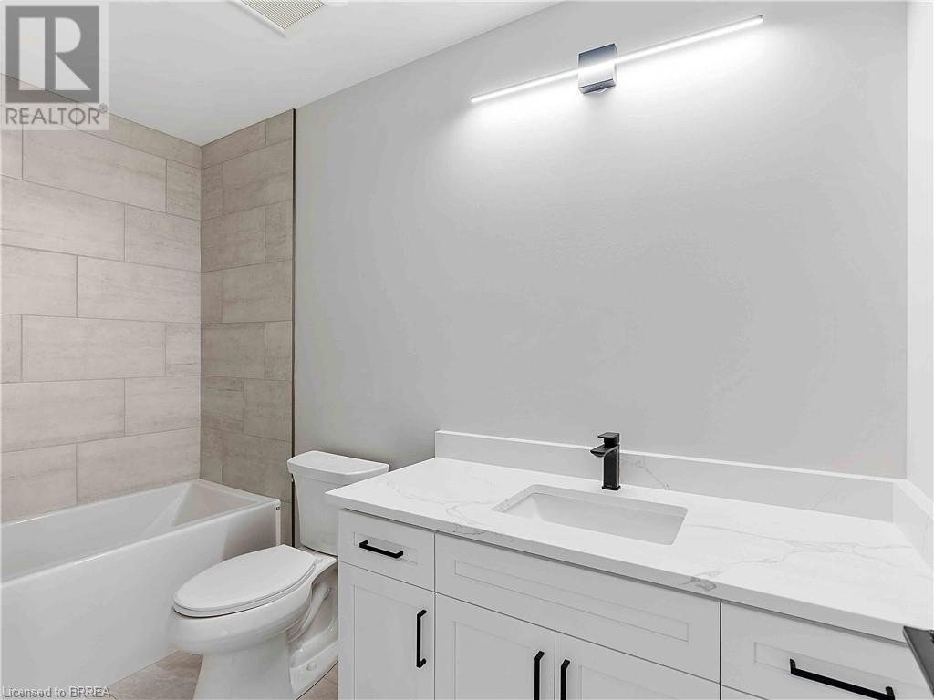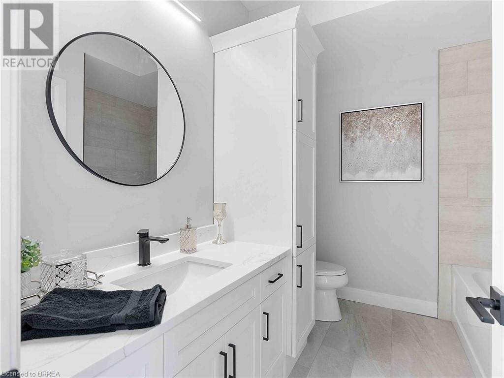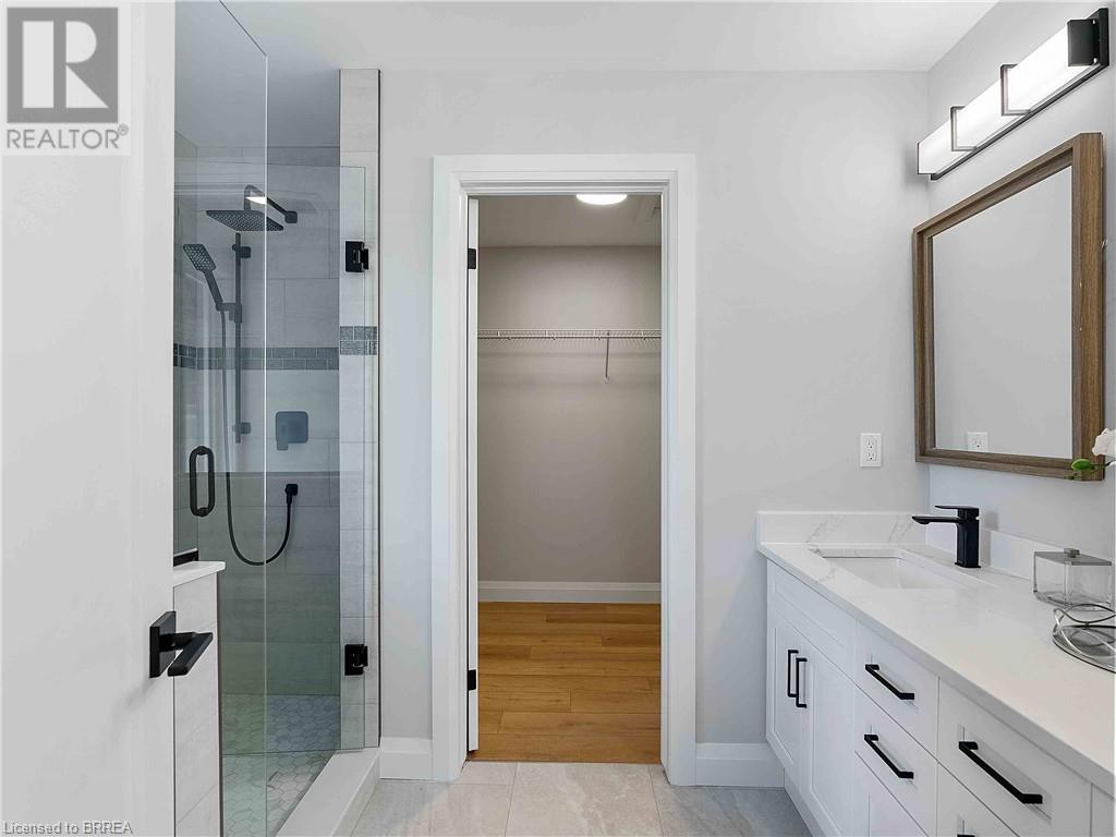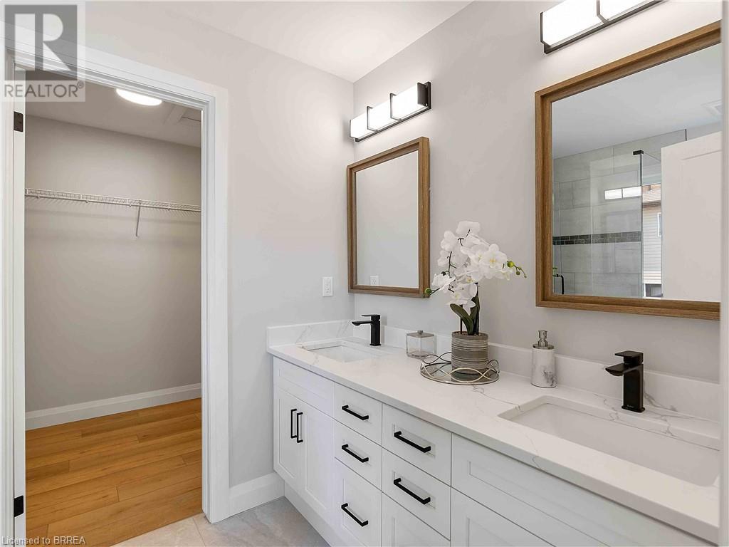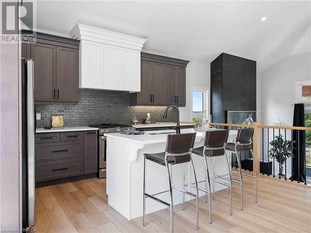 Exquisite Home built by CarriageView Construction - an established, local builder known for his quality finishes and outstanding workmanship. This modern home spares no expense and features all the bells & whistles. Vinyl plank flooring on every level including Heated Floors in the Rec Room, Main Floor Laundry, Main Floor Bath, and Main Floor (2) Bedrooms. Large windows including transom windows located on Main Floor allowing for plenty of natural sunlight. Open Concept Main Floor with 14ft & 18ft Sloped Ceilings and an abundance of Pot Lights. Spacious Dining Room & Kitchen, which features Granite Countertops, Backsplash & an Island. This area overlooks the Great Room which boasts a Gas Fireplace and sliding doors to the Front covered Balcony. Easy access from the Dining area thru the Sliding doors to the rear private 12ft x 21ft Deck and a Fenced, Landscaped yard boasting Armor Stone. Exposed Aggregate Front Steps with a covered Porch. Includes Central Air and a paved Asphalt Driveway (to be completed prior to closing). Walking distance to the Brantford General Hospital, a park and so much more. For commuters, the drive to Hwy 403 is just minutes away. TARION Warranty is included. (id:22211)