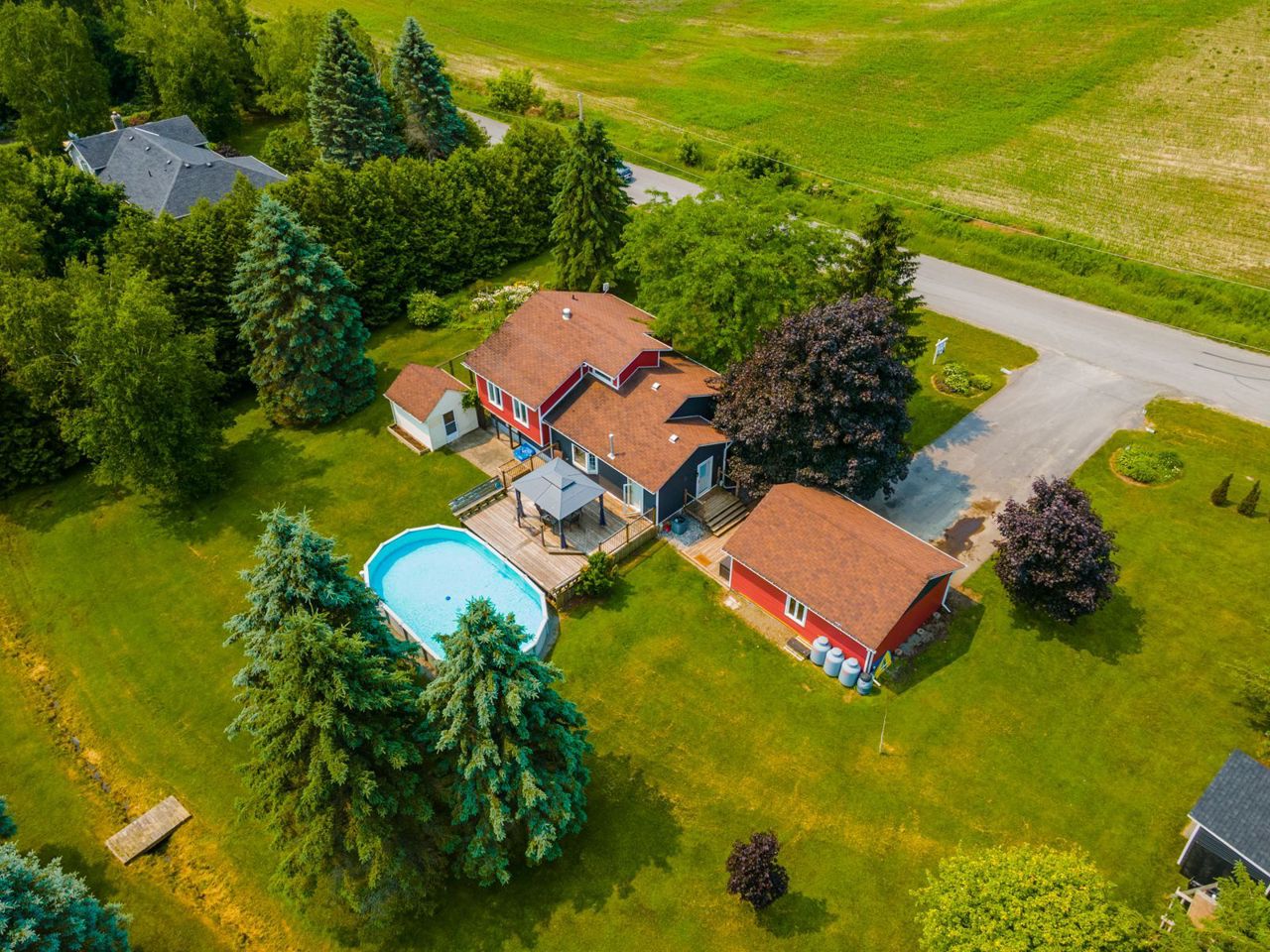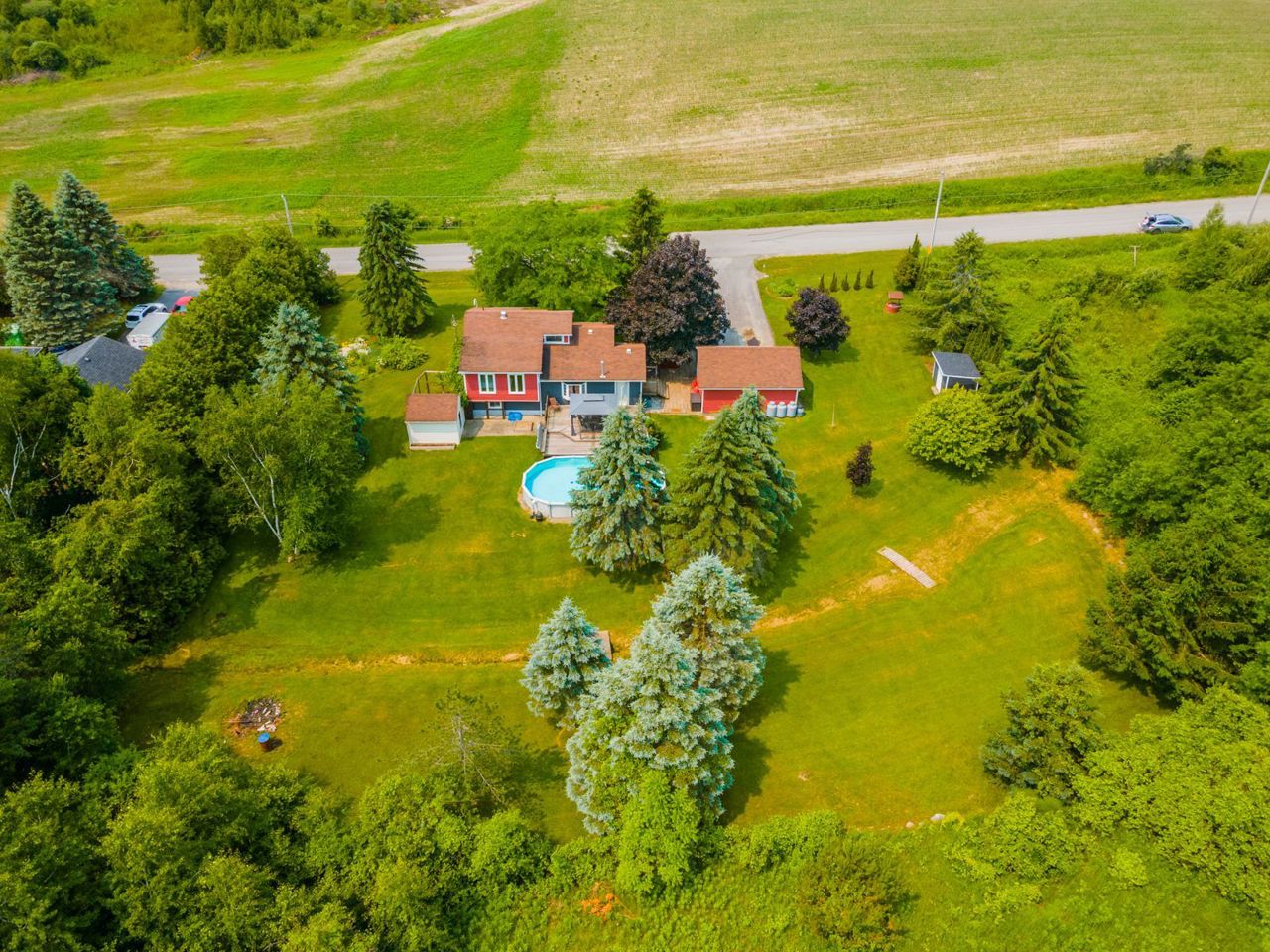 A charming 3-bed side split home on a large country lot, close to the 401 for an easy commute. This property offers a serene retreat with open concept design, ample outdoor space, and amenities. Step inside to an inviting atmosphere and seamless flow. The living area is bathed in natural light, while the adjacent dining area is perfect for gatherings. The chef's kitchen boasts modern appliances, ample storage, and a breakfast bar. Access the deck from the mudroom . Upper level has two spacious bedrooms, lower level offers a third bedroom, office, and another full bathroom. Finished basement with a built-in bar offers endless possibilities. Outdoor enthusiasts will love the large pool with a deck and the expansive country lot. Double detached garage and a paved driveway with parking for six cars. Enjoy the privacy and tranquility of this property. Change your life. Move here!