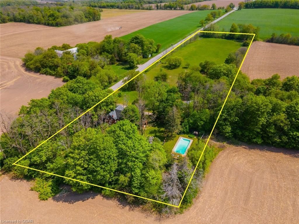 This breathtaking 6-bedroom century home is nestled on 5 stunning acres of picturesque property located just minutes away from the 401. Step outside and immerse yourself in the tranquility of the extensive gardens, Take a dip in the inviting inground pool, perfect for those hot summer days. Feel the stress melt away as you soak in the warm waters of the luxurious hot tub, providing the ultimate in relaxation and rejuvenation. The outdoor living space is perfect for hosting unforgettable gatherings, from elegant parties to intimate celebrations. Whether it's a wedding, anniversary, or special occasion, this versatile area will leave your guests in awe. With 6 bedrooms, 2 bathrooms and multiple fireplaces, there's ample space for everyone to find their sanctuary. Multiple walk-out to porches on all sides and you'll enjoy the convenience of the double garage/workshop and barn, offering both storage and creative opportunities. Commuting is a breeze with quick access to the 401.