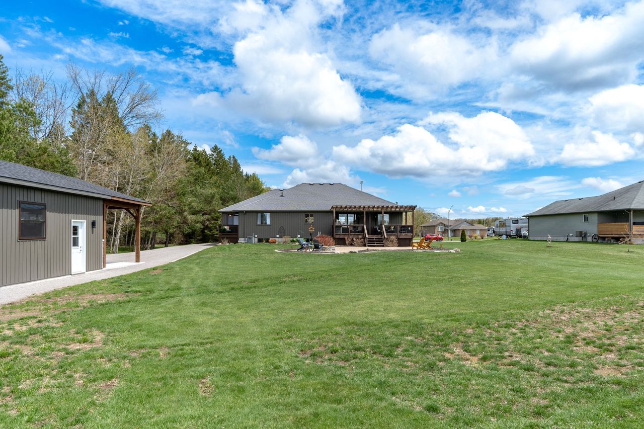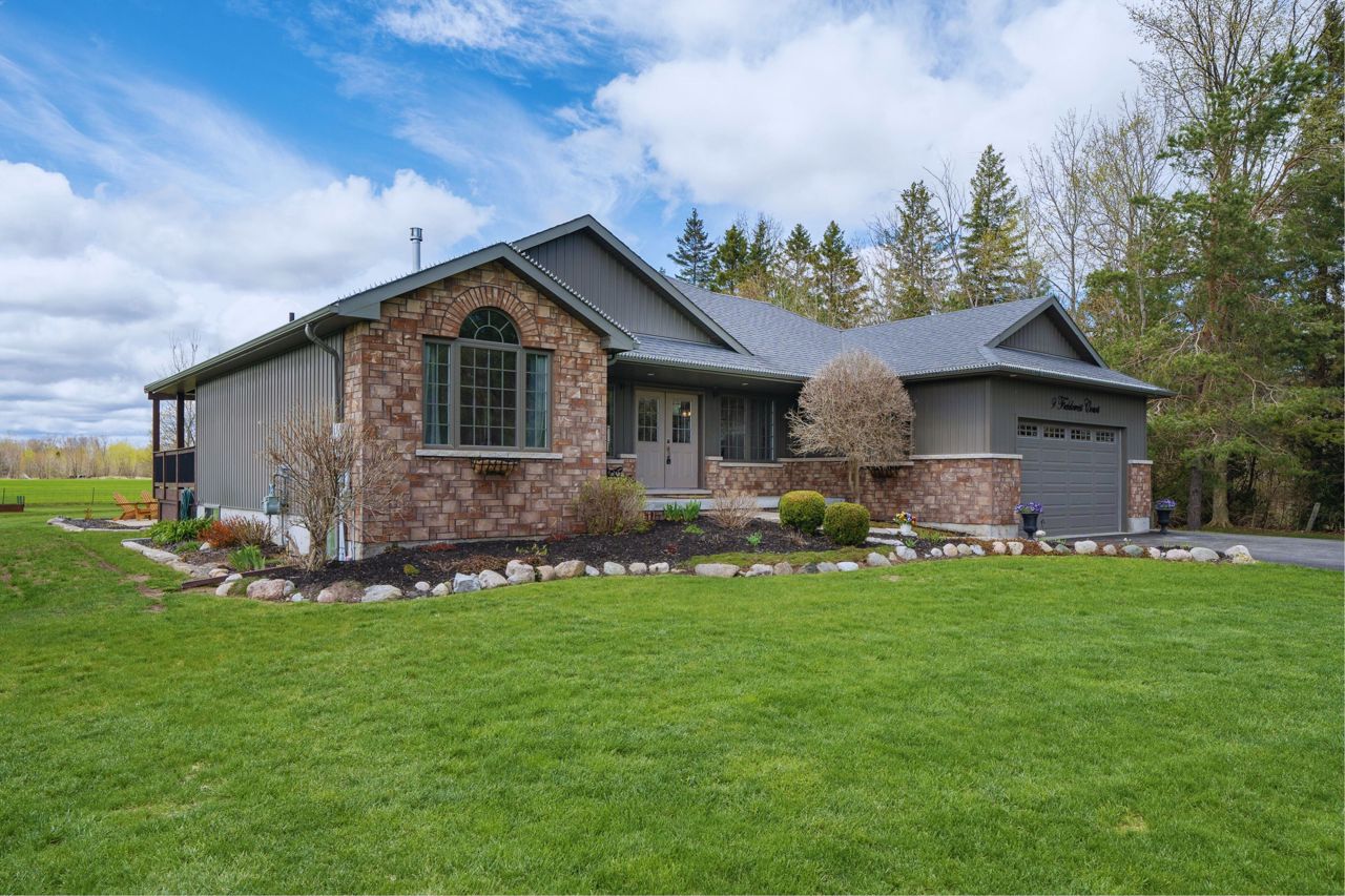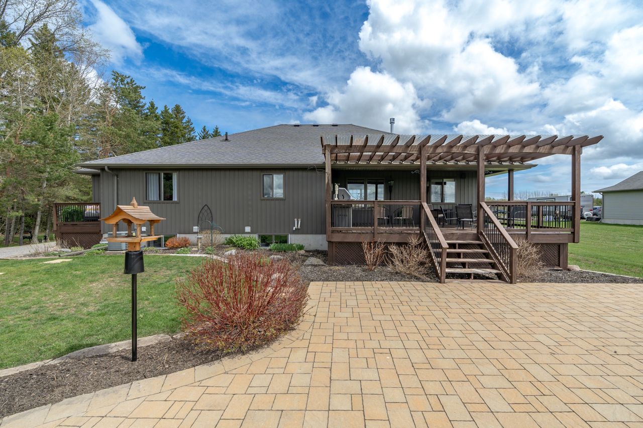 Stunning Bungalow Your New Home. This 3+2 Bed 3 Bath Home Is Set On Large Acre Lot With Country Setting. Walk In The Front Foyer To Open Concept, Kitchen, Living, Dining With Vaulted Ceilings, Eng Hardwood Floors, Eat In Kitchen With Island, Solid Surface Counters & Pantry, Walkout To Back Deck With Covered Area, Floor To Ceiling Gas Fireplace & Built In Shelving. Primary Suite Has Double Doors, Large Walk In Closet, Ensuite With Soaker Tub, Walk In Glass Shower & Walk Out Garden Door To Private Deck. Two Main Floor Bedrooms & Main Floor 3PC Bath. Main Floor Laundry & Entrance From House To Double Car Garage. Lower Level Is Fully Finished, 2 Bedrooms, Full Bath, Beautiful Entertaining Rec Room With Gorgeous Bar, Bright Oversized Windows, Plenty Of Storage & Utility Area. Brand New Detached 25X30 Workshop With Gas & Water Rough In Lines, Electrical & Timber Frame Entry. Exterior Landscaping, Paved Drive & Interlock.This Home Is Located In Desired Area, Minutes From Brighton & The 401