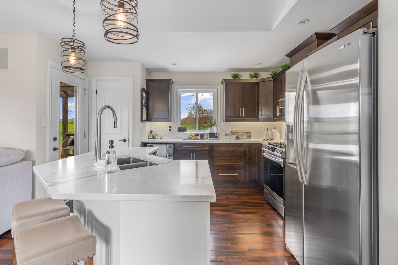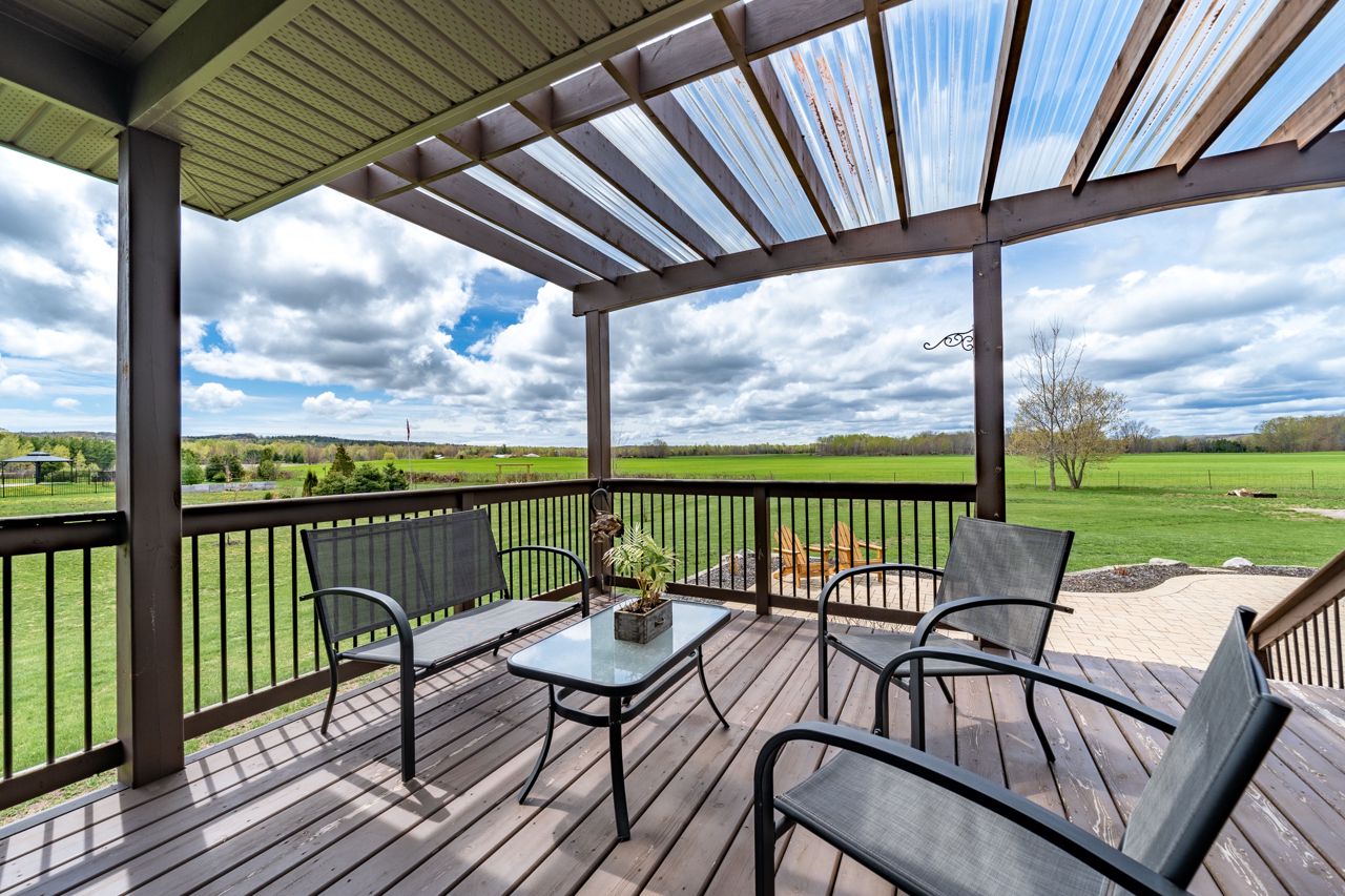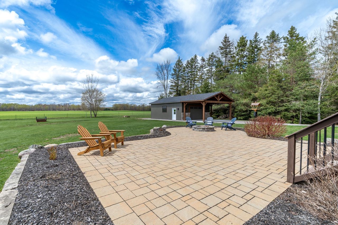 Stunning Bungalow Your New Home. This 3+2 Bed 3 Bath Home Is Set On Large Acre Lot With Country Setting. Walk In The Front Foyer To Open Concept, Kitchen, Living, Dining With Vaulted Ceilings, Eng Hardwood Floors, Eat In Kitchen With Island, Solid Surface Counters & Pantry, Walkout To Back Deck With Covered Area, Floor To Ceiling Gas Fireplace & Built In Shelving. Primary Suite Has Double Doors, Large Walk In Closet, Ensuite With Soaker Tub, Walk In Glass Shower & Walk Out Garden Door To Private Deck. Two Main Floor Bedrooms & Main Floor 3PC Bath. Main Floor Laundry & Entrance From House To Double Car Garage. Lower Level Is Fully Finished, 2 Bedrooms, Full Bath, Beautiful Entertaining Rec Room With Gorgeous Bar, Bright Oversized Windows, Plenty Of Storage & Utility Area. Brand New Detached 25X30 Workshop With Gas & Water Rough In Lines, Electrical & Timber Frame Entry. Exterior Landscaping, Paved Drive & Interlock.This Home Is Located In Desired Area, Minutes From Brighton & The 401