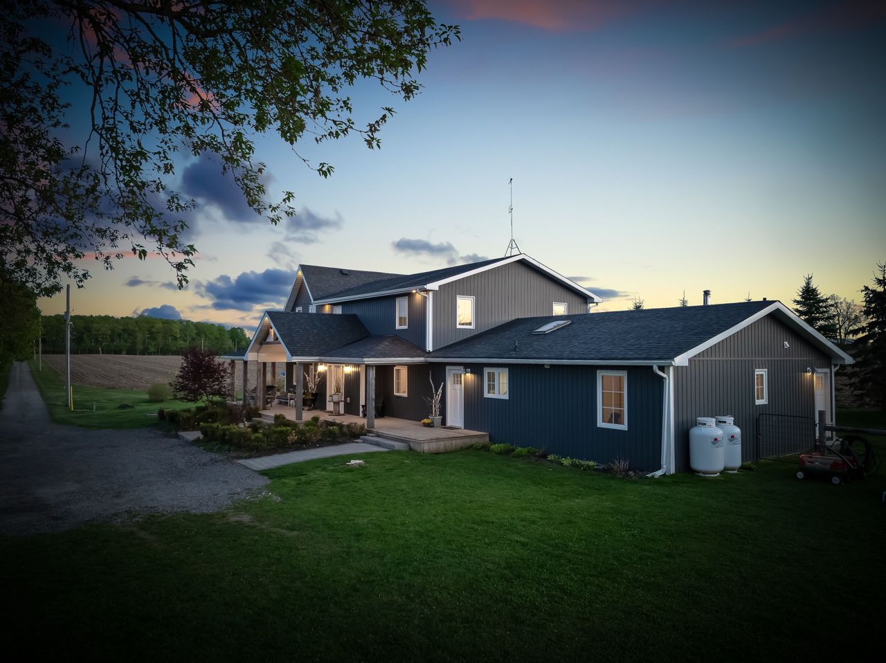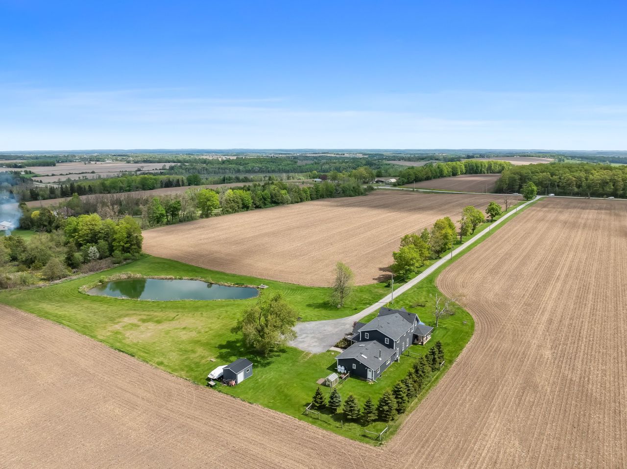 Welcome to The Hideout - The Renovated Farmhouse of Your Dreams. Tucked away just outside Uxbridge & Port Perry, this fully renovated 19th-century farmhouse sits on 1.9 acres with sweeping panoramic views. Watch sunrise to sunset with light flooding in through oversized windows, & feel immersed in a private, tranquil retreat especially when the crops rise & The Hideout earns its name. Expertly finished, this 3,620 S.F. home is relaxed, inviting & unpretentious to match the effortless ease of the countryside surrounding it. Enter into a spacious foyer with heated tile floor, attached to a self-contained mudroom/dogroom, perfect for kids cubbies/sports gear/or other multi-use purposes. A versatile, comfortable kitchen combines the perfect balance of classic design & contemporary aesthetics with quartz counters, & a large centre island O/L the casual dining space. At the heart of the home is an open concept 17 ft X 21 ft living room that overlooks the wraparound porch and property including expansive views of the nearby pond, fields, and maple-lined laneway. A cozy den offers flexible use as a family room/library/office/main floor primary suite, with walkout to the fully fenced side-yard. Upstairs, the airy primary offers stunning SE views, a closet, & ensuite with heated tile flooring. All bedrooms are generously sized, each offering its own unique view of the peaceful countryside. A private, self-contained addition serves as a legal accessory dwelling unit (ADU). Ideal for in-laws, young adults starting out, or long term guests - its perfect for those who will enjoy the close, yet separate living quarters. The full basement beneath addition offers untapped potential: expand the main house, enlarge the in-law suite, or create a 3rd self-contained space with a sep entrance. Outside, enjoy the pea gravel patio, rows of peonies, and countless spots to unwind on the expansive 1,000 S.F. wraparound porch. Additional features: 200 Amp (2019), Roof (2015), Windows (2018)