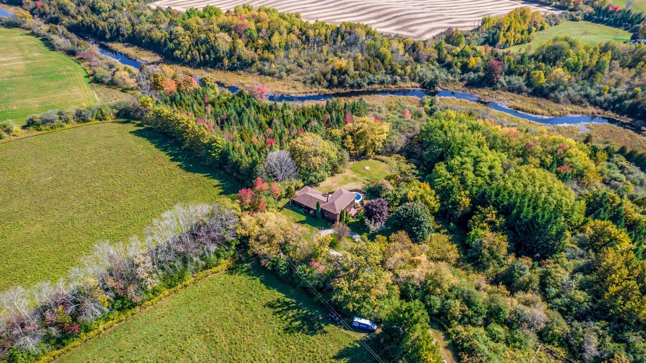Behold! An extraordinary and rare offering of a sprawling 44+ acre Peaceful Retreat. This Incredible Property Offers A Heated Inground Pool, Soaring Colourful Trees, Many Trails, Fields, The Beaver River, and So Much More! This secluded bungaloft is discreetly tucked just moments away from the charming town of Cannington. It Features 6 Spacious Bedrooms, 3 Upgraded Full Bathrooms, Amazing Sunroom With Panoramic Views & Walk Out, Family Room W/ meticulously crafted wood mantle and a wood-burning fireplace that adds a touch of nostalgia. Separate Primary Wing With An inviting seating area overlooking a breathtaking conservation view, Huge Workshop,Multiple decks and walk-outs, including one from the finished basement, providing a serene view of the Inground Pool. This Property Is Truly A Nature Lover's Paradise!House Freshly Painted, Exterior 2 Sides Re-Painted, All Bathrooms Reno'd, All New Light Fixtures Throughout, Kitchen Water Filtration Tap, New Well Pump, Septic Pumped 2021.
