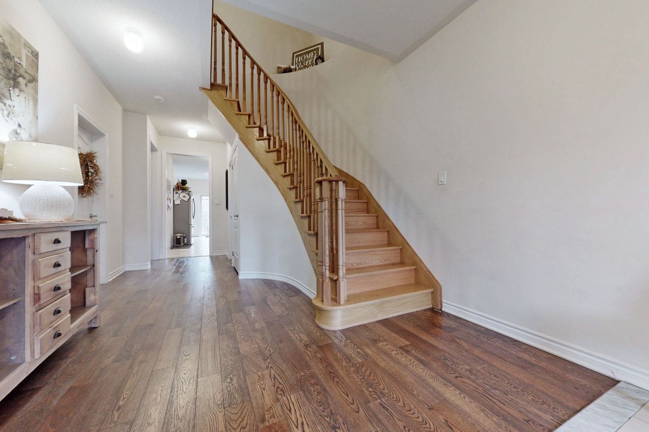 Beautiful detached home with double garage in high demand area of Beaverton. Main floor with hardwood floor. Fire place in the living room large eat-in kitchen, w/o to yard, convenient main flr laundry, home to garage access. 2nd floor with 4 good size bedrooms. Master bedroom with ensuite washroom and w/i closet. All bedrooms with closets. Cold cellar in the basement. Steps to park, school, minutes to shopping, go bus stop, all amenities & more!