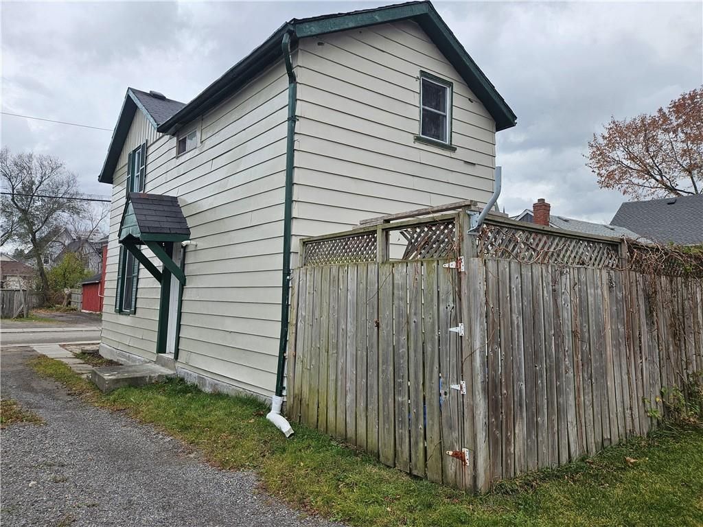 Conveniently located downtown and close to shopping, restaurants, schools, waterfront, and more. This property would be great for those first time homebuyers or investors. The main floor opens into a large living/dining area at the front, with the kitchen at the back. Including main floor laundry and access to the fully fenced backyard. Upstairs you will find oak hardwood floors running throughout the hallway and 3 bedrooms. A 4pc bath finishes off the upper level with new vinyl flooring. Outside there is a fully fenced backyard that provides a concrete patio, covered storage, and grassy area. Out front there are bordering garden beds with parking on the interlocking stone driveway. Updates include: 2024: exterior paint, parging, vinyl flooring, 2020 furnace, 2014 shingles, 2008: some plumbing, electrical, drywall, trim, windows, doors, maple kitchen cabinets, oak hardwood floors upstairs, blown-in insulation in the attic. See documents for the full list of property improvements and survey.