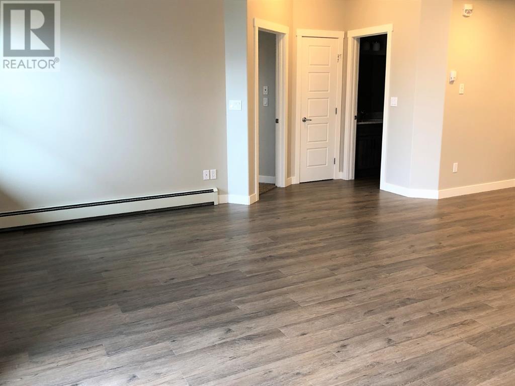 Welcome to the newest adult condo in Brooks, Meadow Brook Estates. Enjoy the security of a carefree condo living in this brand-new condo. A total of 22 units offering 1, 2, & 3 bedrooms units. A lock & leave lifestyle is what you will enjoy. This spacious unit is warm and inviting, a must-see. Offering a good sized bedroom and a 4 piece bathroom. Laundry room. Natural lighting shines throughout this unit from the patio door. Enjoy stepping out onto the balcony with a view of Meadow Lake. The kitchen has ample soft close cabinetry with quartz countertops and a island. Luxury vinyl planking in the living areas and carpet in bedroom, modern LED light fixtures throughout. Gasline for the BBQ on each balcony, enclosed storage units off the balcony. Elevator, air conditioning, and indoor heated parking stall is available in the parkade. Additonal outdoor parking or garage stall is available for purchase. Social gathering room, exercise room and shop is available. With the highest quality of building standards, featuring concrete between each floor and a dual-wall wood construction (each suite has its own framing). The low condos fees include water, heat, garbage, reserve fund allocation, landscaping & snow removal. You deserve to call this your new home. This list price includes the GST, the seller will provide a GST rebate to the buyer of $3636.00. The seller will give a $1500.00 appliance package credit to the buyer. Make Meadow Brook Estates your new home. (id:22211)