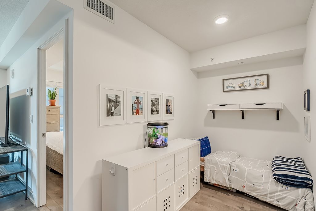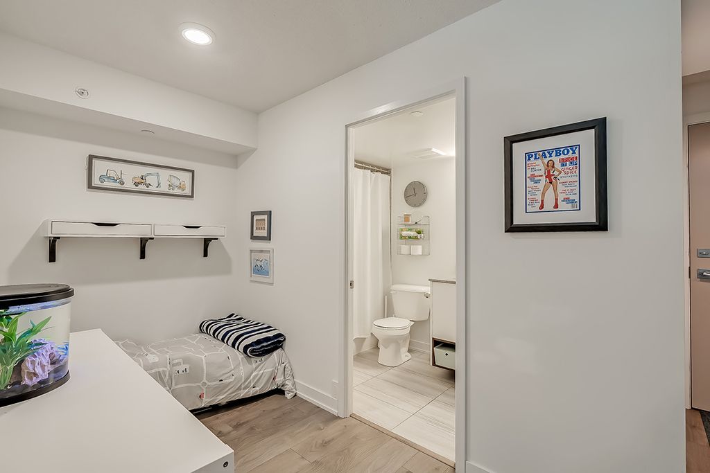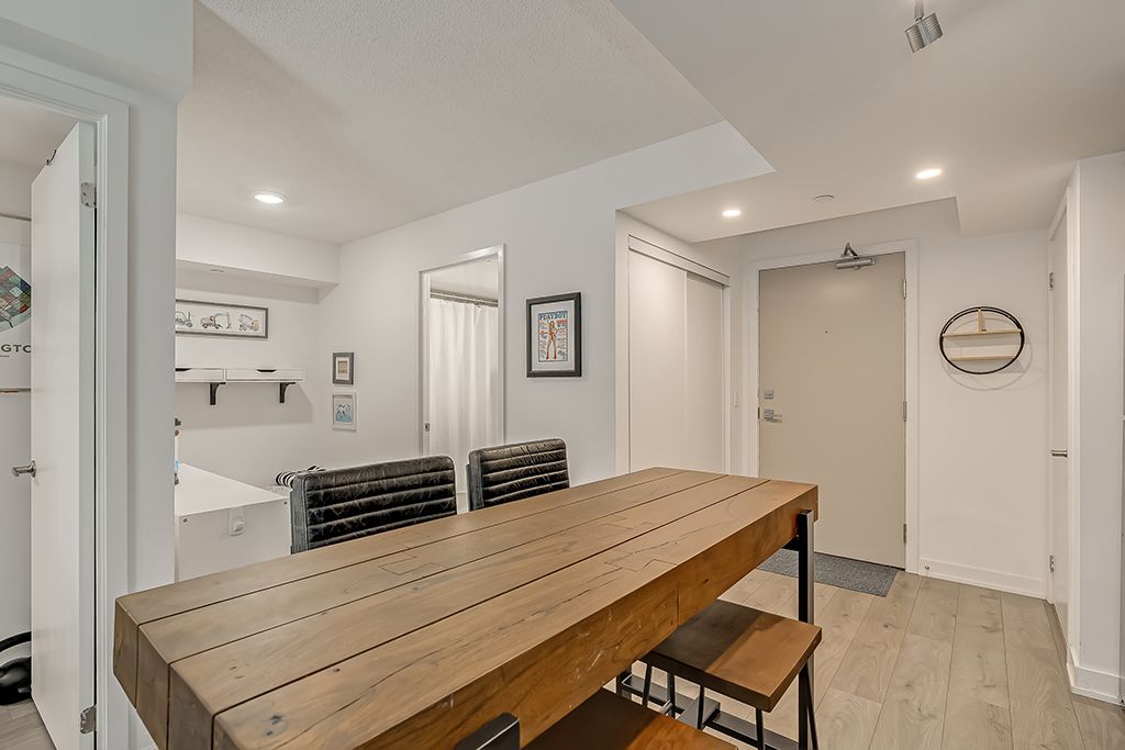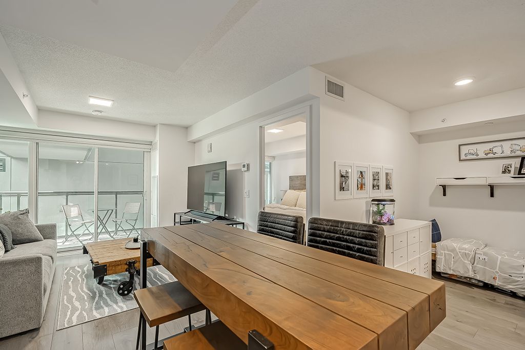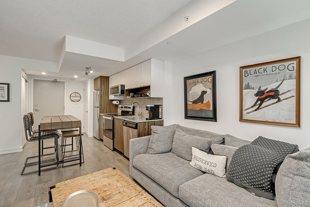 One bedroom + den/office at 'Stationwest' in Aldershot! Convenient location steps to GO station, highway access, Burlington Golf & Country Club, LaSalle Park/Marina and Royal Botanical Gardens. 529 sq.ft. + 58 sq.ft. extremely private balcony. Eat-in kitchen with quartz countertops, island, stainless steel appliances and subway tile backsplash. Upgraded custom window blinds, in-suite laundry, one underground parking space and one storage locker. Building amenities include concierge, fitness centre, party room, rooftop terrace, bicycle storage, visitor parking and access to car sharing service.