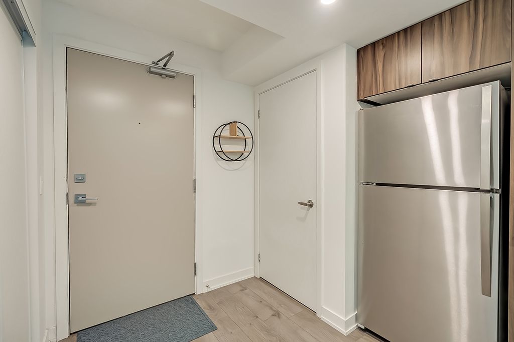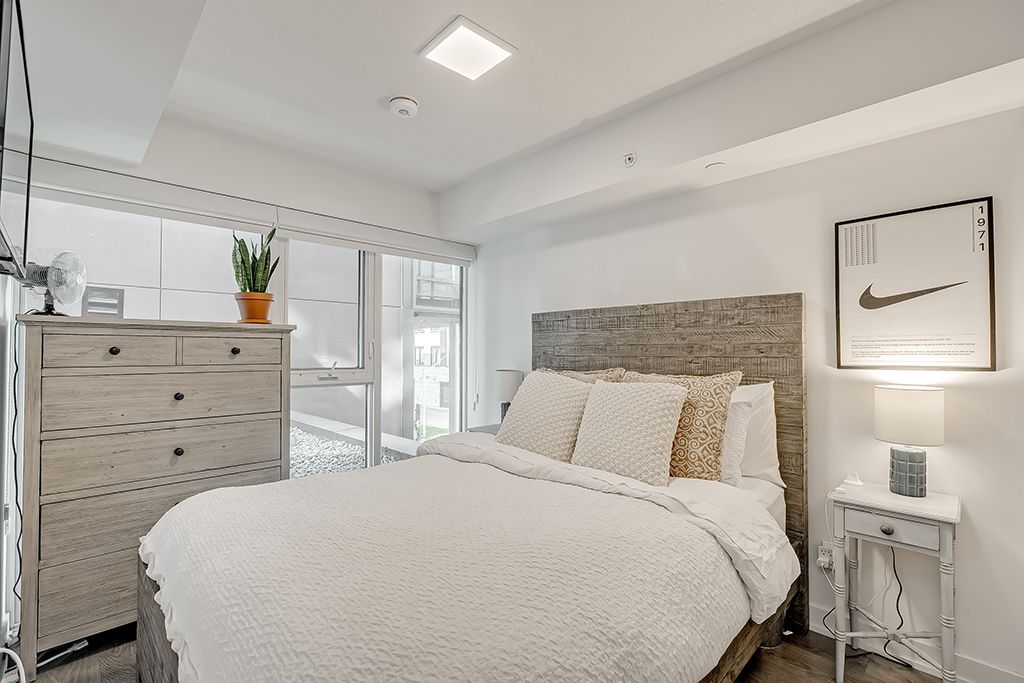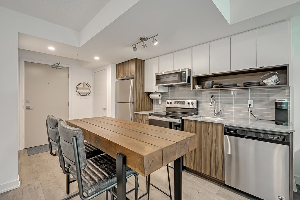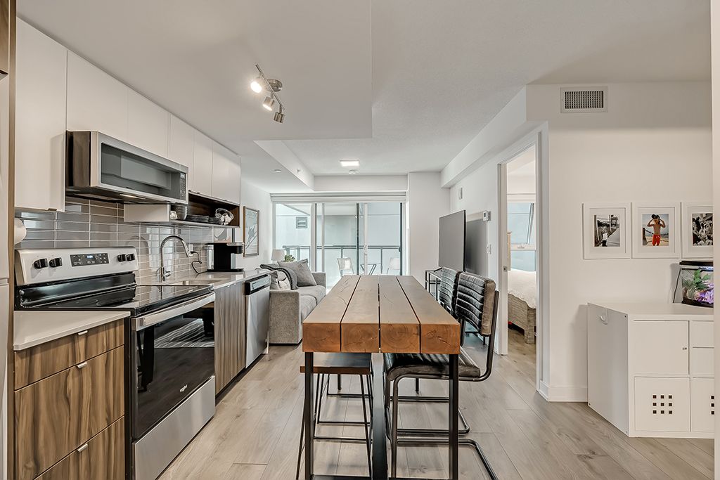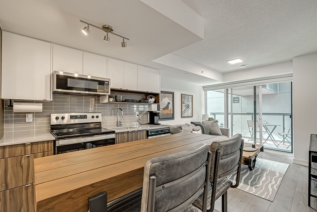 One bedroom + den/office at 'Stationwest' in Aldershot! Convenient location steps to GO station, highway access, Burlington Golf & Country Club, LaSalle Park/Marina and Royal Botanical Gardens. 529 sq.ft. + 58 sq.ft. extremely private balcony. Eat-in kitchen with quartz countertops, island, stainless steel appliances and subway tile backsplash. Upgraded custom window blinds, in-suite laundry, one underground parking space and one storage locker. Building amenities include concierge, fitness centre, party room, rooftop terrace, bicycle storage, visitor parking and access to car sharing service.