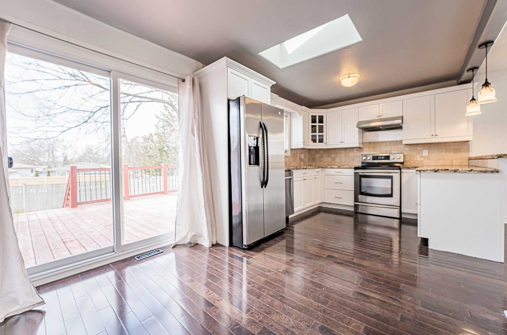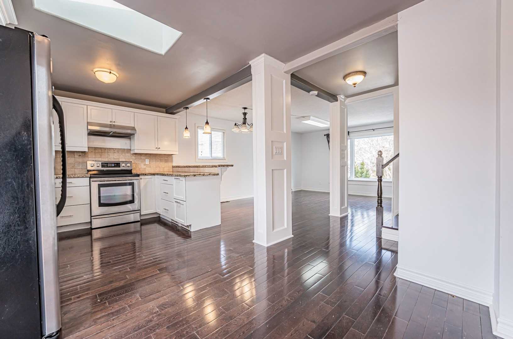 Renovated Throughout 4 Lvl Sidesplit On Pie Shaped Lot In Quiet Court. Features: Den Can Be As The 4th Br, Family Rm, Garage Converted Into Home Studio. Open Concept 2nd Lvl W/Hardwood & Skylight. Newer Kitch W/Granite & Tumble Stone Backsplash. Liv Rm W/New Front Window '17, Sliding Door '17 To Lrg Private Deck '17.Bsmnt W/Rec Rm, Potlights, Lrg Windows, Crown Molding, 3Pc Bathrm, Laundry & Crawl Space. New Roof '22. New Painting. W/O To Fully Fenced In Yard & Deck. Easy Hwy Access. Move-In Ready!