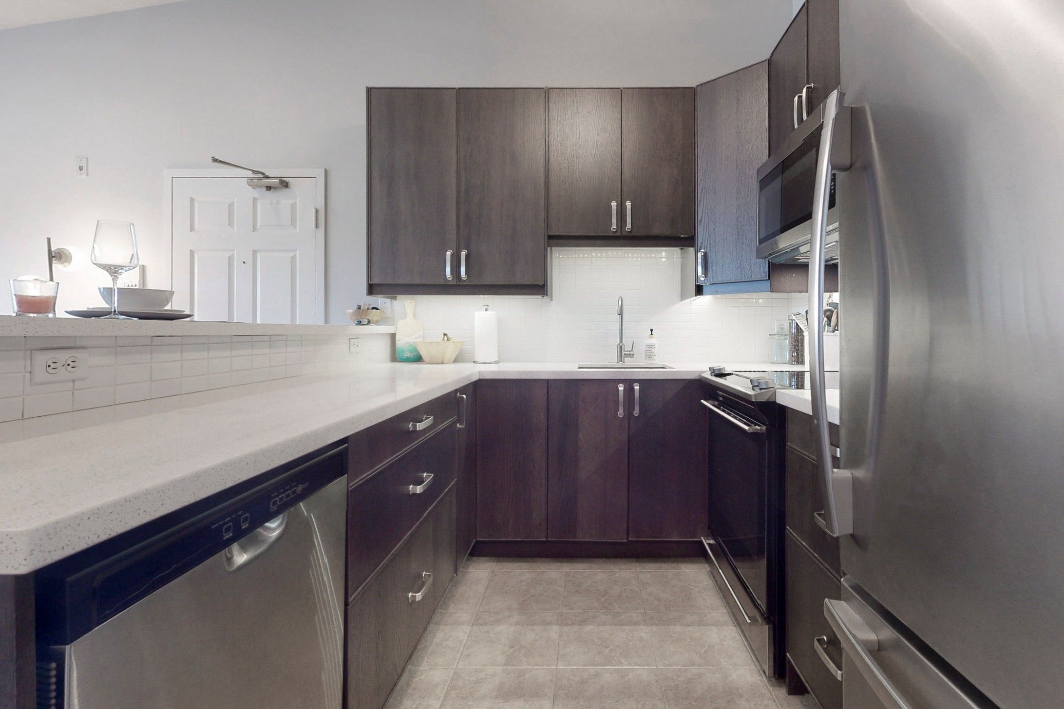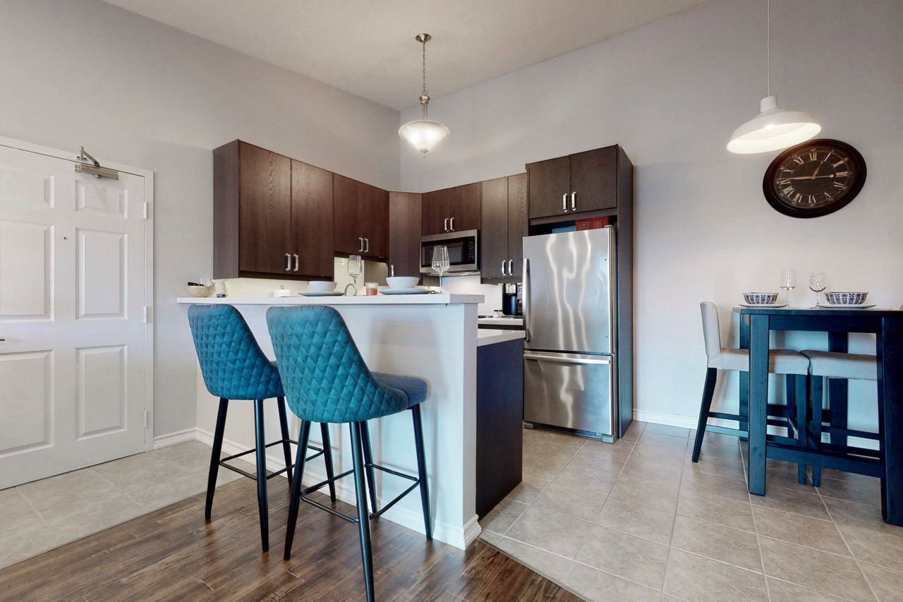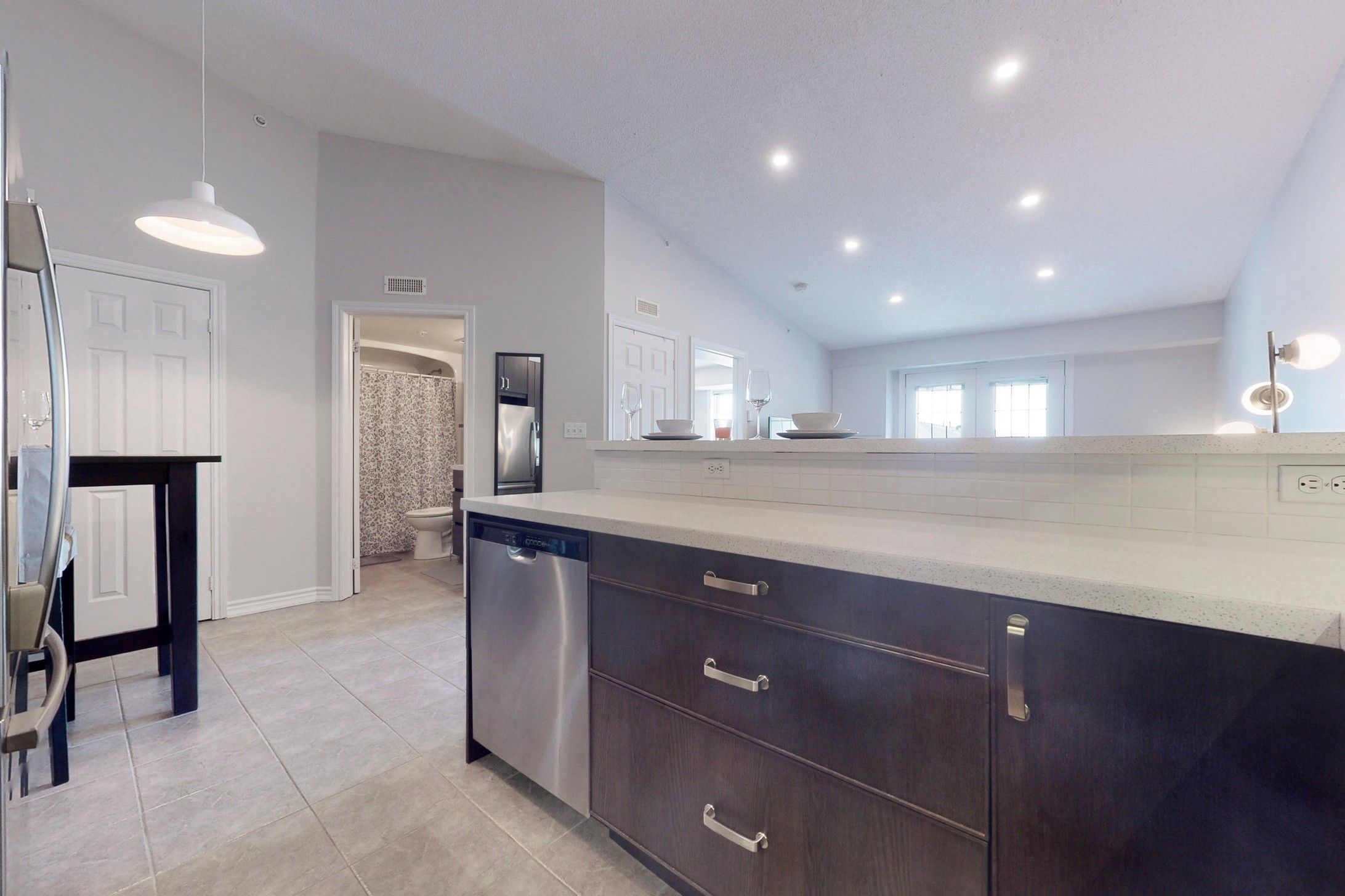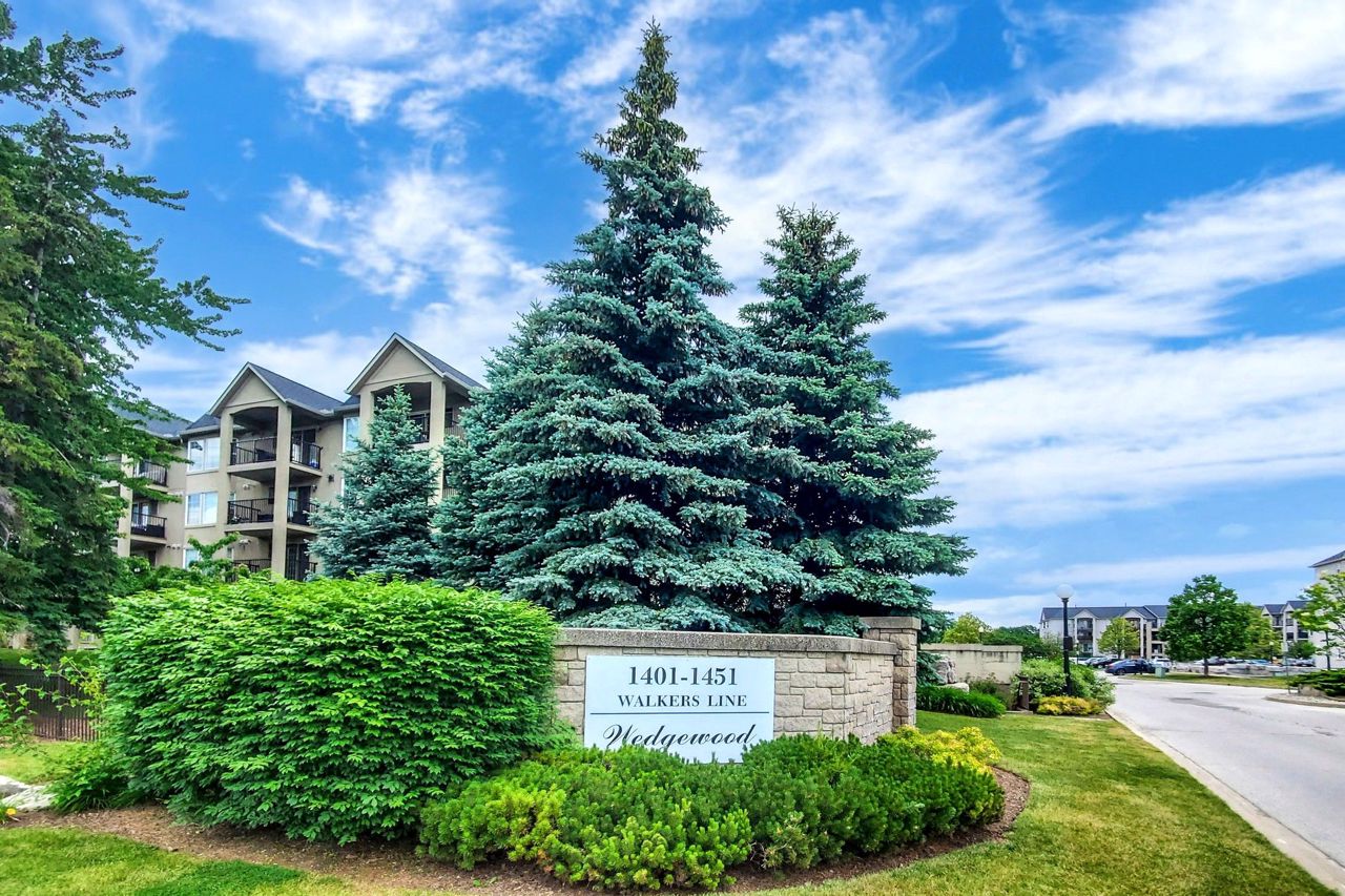 This Is The One You've Been Waiting For At Wedgewood - 1451 Walkers Line. Meticulously Maintained, Premium Top Floor Suite With Vaulted Ceilings, Custom Kitchen With Quartz Counters, Breakfast Bar, Extended Upper Cabinets, Undermount Lighting, Tile Backsplash And Stainless Steel Appliances. Functional And Spacious Layout, Pot Lights Throughout And French Doors Leading Out To The Covered Balcony With Clear South Views. One Exclusive Underground Parking Spot, Locker And Tons Of Visitor Parking. This Suite Exemplifies The Harmonious Blend of Functionality And Aesthetic Appeal, Providing The Ideal Retreat To Call Home.