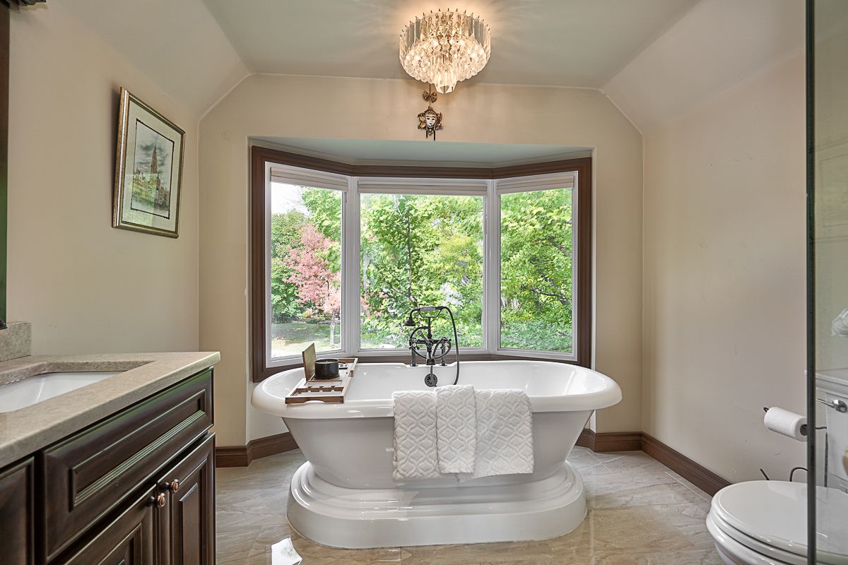 This exquisite family home is nestled on a dead-end court in sought-after Tyandaga. With stunning curb appeal, this home offers a perfect blend of elegance & comfort. Upon entering, you will find a living & dining area, wlarge windows & stunning views of the pool. The kitchen boasts modern appliances & a convenient w/out to deck o/looking the pool. The adjacent family room features a cozy fireplace & w/out to the deck, making it an ideal spot for relaxation. The main floor laundry w access to the garage, ensures effortless daily living. Ascend the staircase to the upper level, where the primary suite awaits. This luxurious retreat includes a private balcony o/looking the pool, a cozy fireplace, 2 walk-in closets, & an updated 5-piece ensuite bathroom. 3 more bedrooms & an updated 4-piece bath complete this level. The lower level offers a Zen-like office space. The rec room is a great spot for leisure, while an additional bedroom provides flexibility for guests. Step outside into theoasis where a stunning inground pool, surrounded by a safety fence, & an outdoor lounge area await. This home offers an incredible combination of style, space, and functionality, making it the perfect place to create lasting memories.