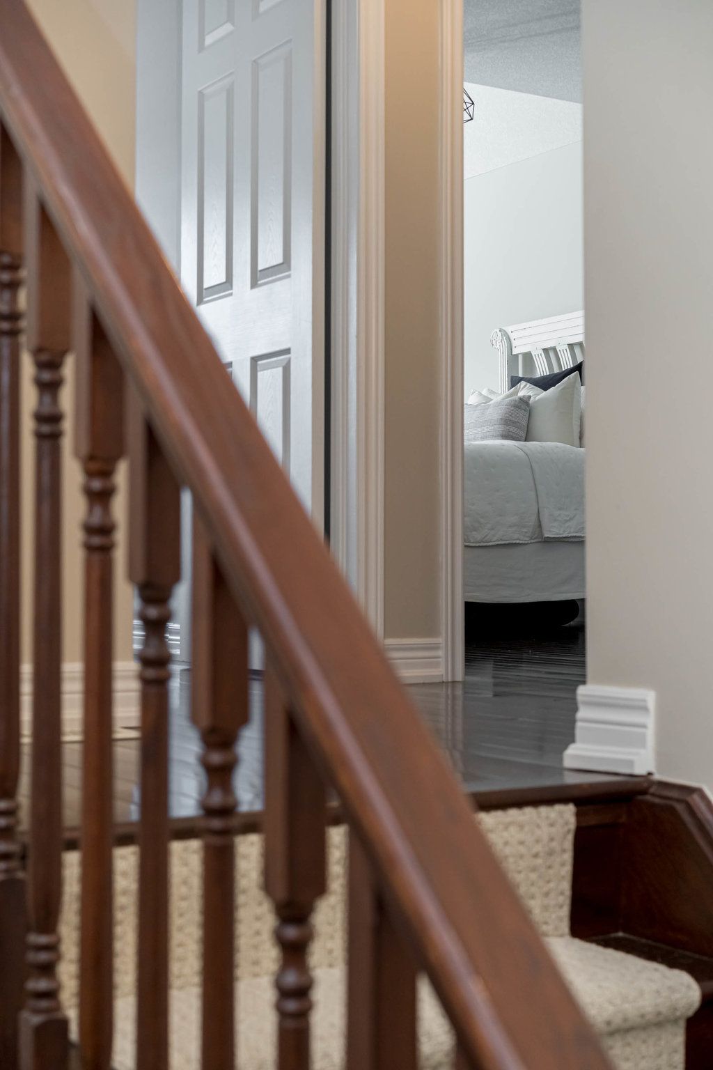 sink, new carpet runner on stairs. Other notable features: hardwood floor, extra spacious primary bedroom, large 2nd bedroom, breakfast bar,