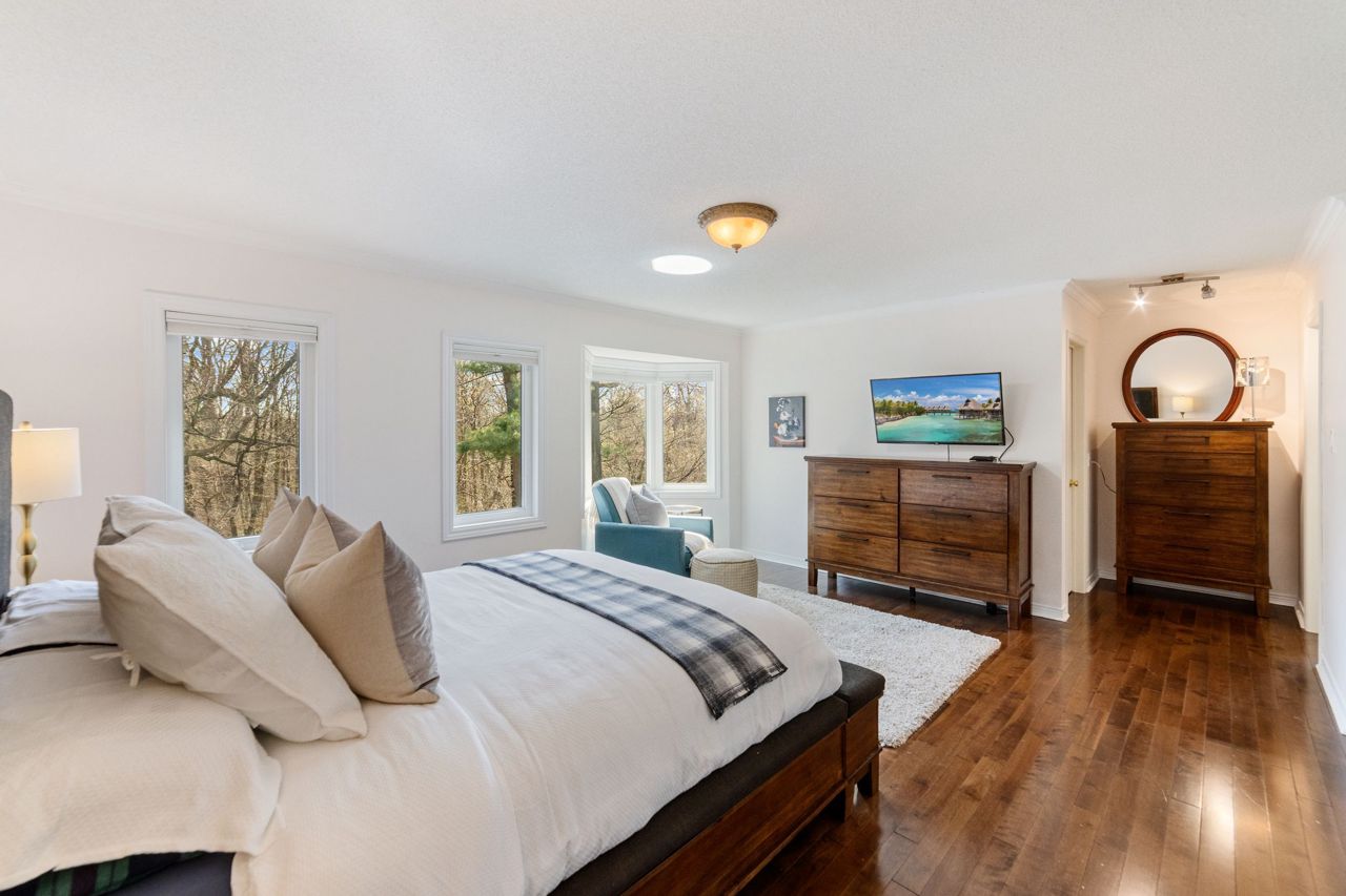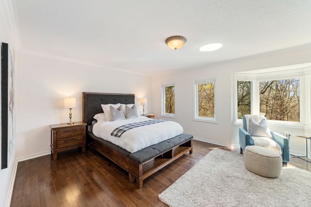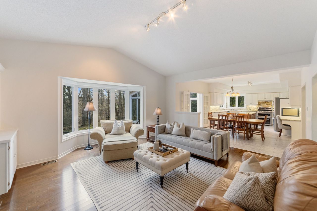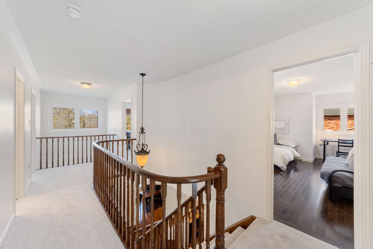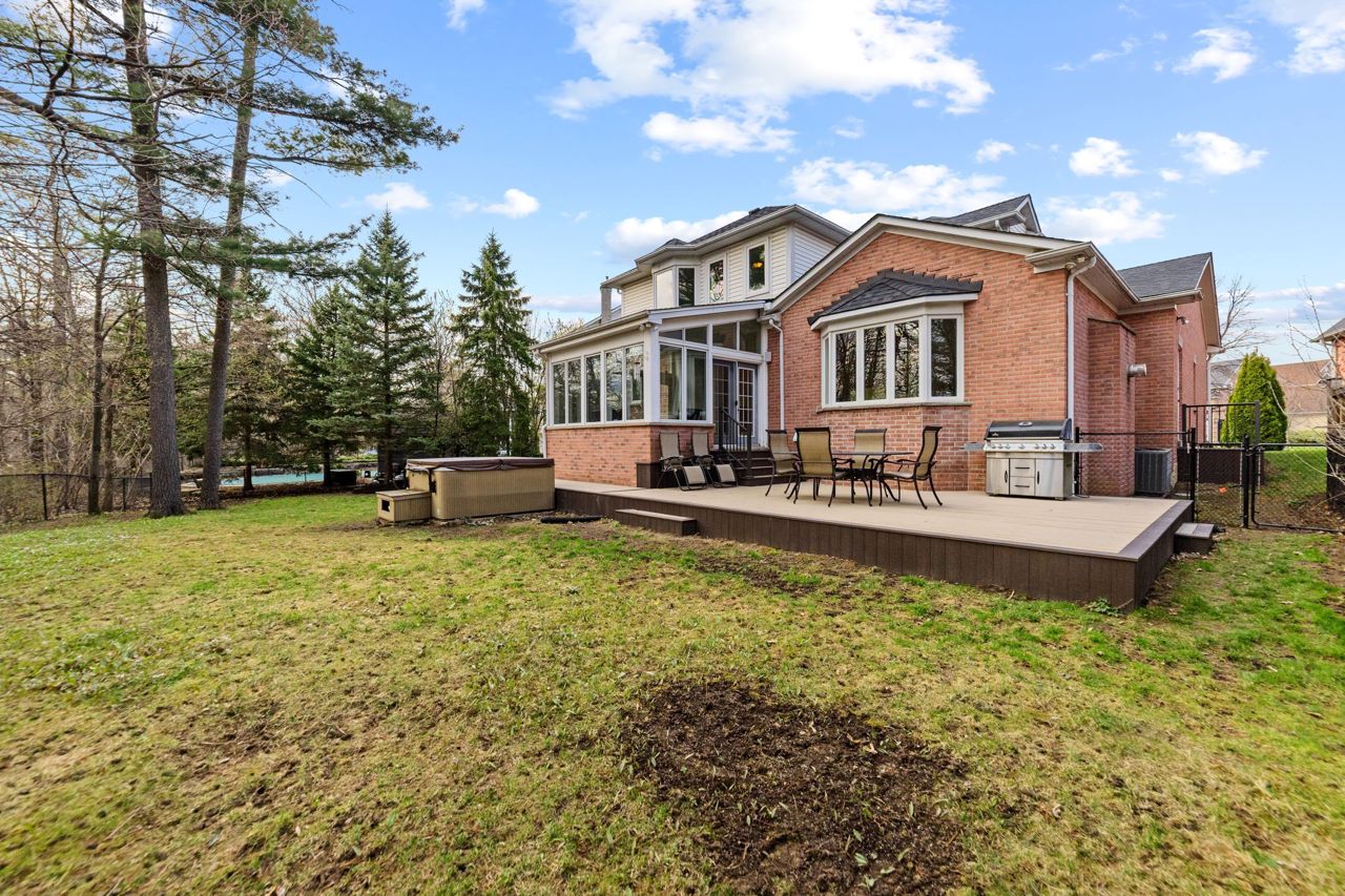 Welcome home. Millcroft's ideal location, nestled on a quiet street and backing onto a serene ravine with a mature tree line, this stunning 2 storey detached home offers peaceful living with nature at your doorstep. Featuring high ceilings and a double car garage, the home boasts an open-concept kitchen with a large center island flowing seamlessly into the great room perfect for entertaining. An attached sunroom overlooks the newly built decking, just in time for relaxing outdoors. With 4 spacious bedrooms upstairs and an additional bedroom and bath in the finished lower level, this home combines comfort, style and function in a tranquil, sought-after setting.
