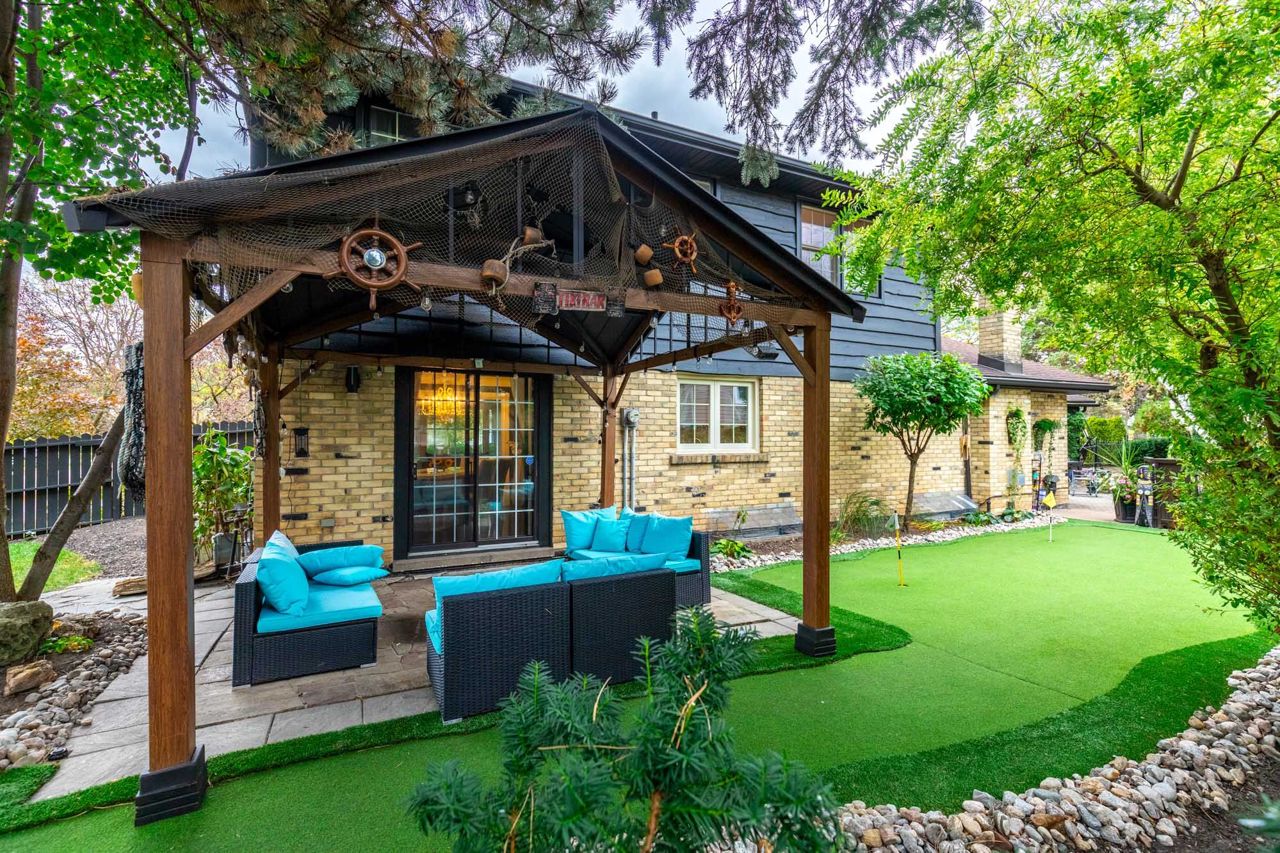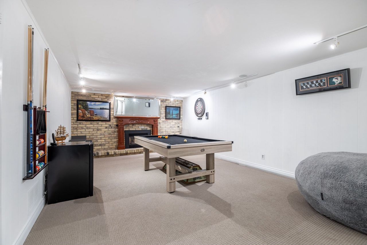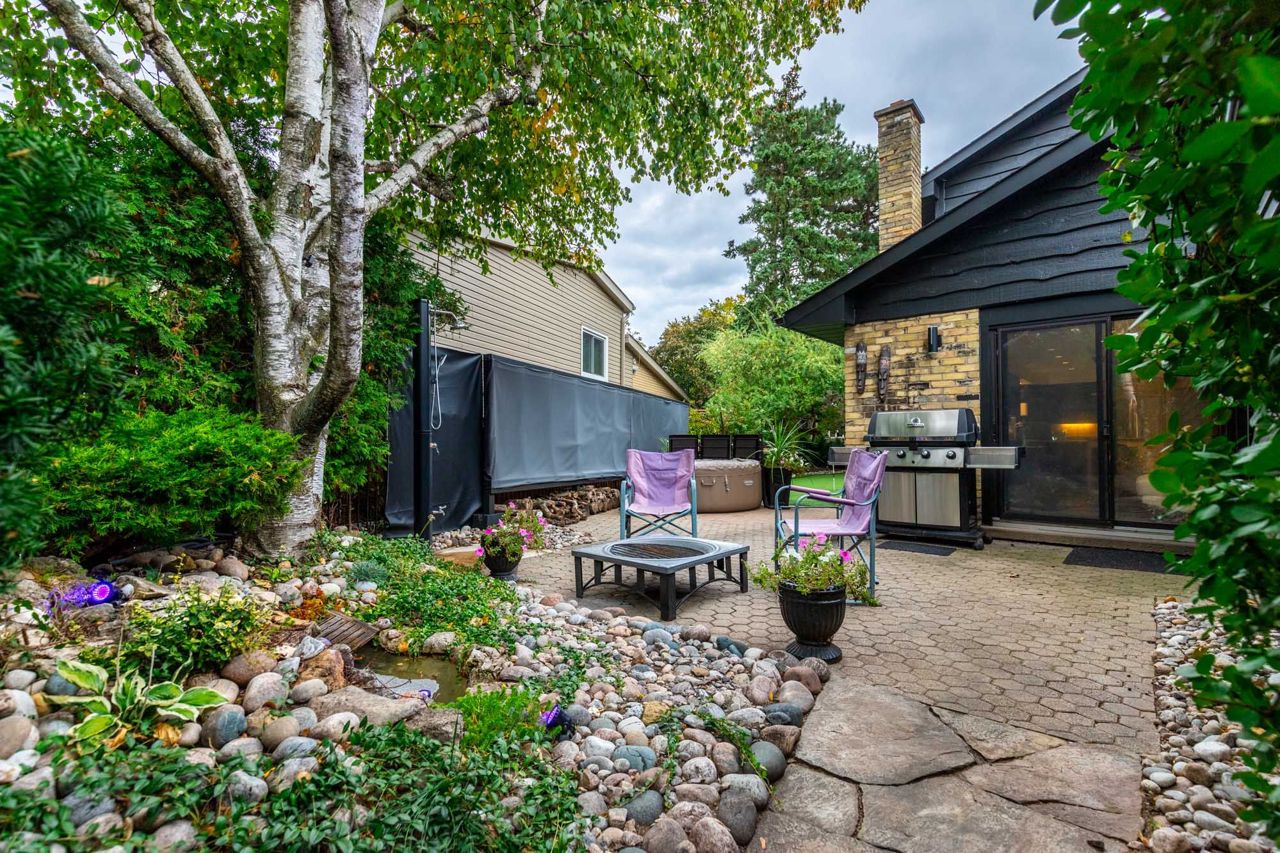 This stunning 3+2-bedroom, 3.5-bathroom home in the desirable Brant Hills neighborhood offers over 3,700 sq ft of living space. The open concept kitchen and family room features upgraded stainless-steel appliances, granite counters, and an under-mount sink, overlooking a private patio and putting green. The main floor also features a main floor office for those working from home. The formal living and dining areas have a walk-out to a private landscaped patio and tranquil pond. The primary bedroom offers a luxurious retreat with a spa-like 5pc ensuite, walk-in closet, and built-in wardrobe, while the other two bedrooms are large and have ample closets. The finished basement is equipped with Berber carpet, a fireplace, and ample space for games, large screens, and storage. This family-friendly property is located within walking distance to schools, shops, and restaurants, and is just minutes away from major highways. With space for up to 8 cars, this home caters to all your needs.