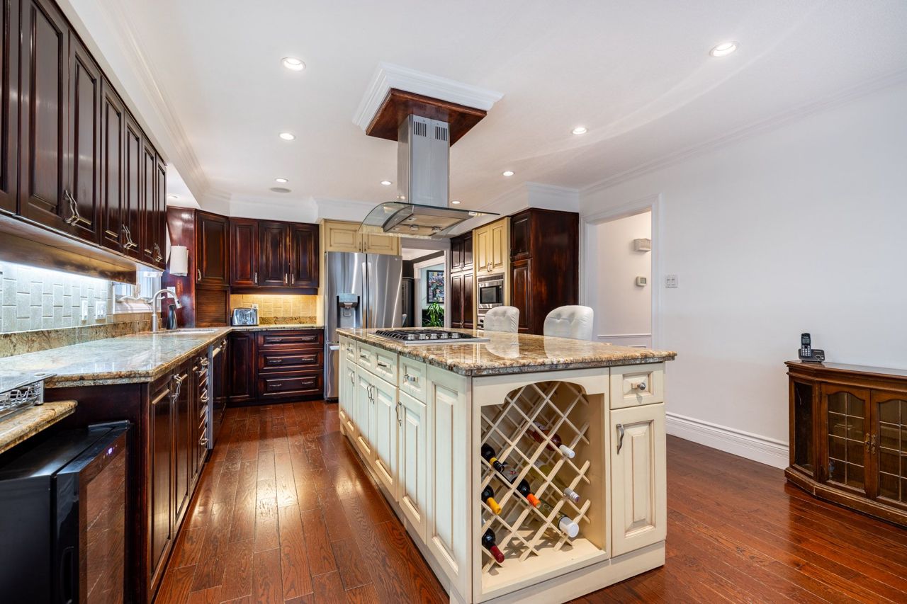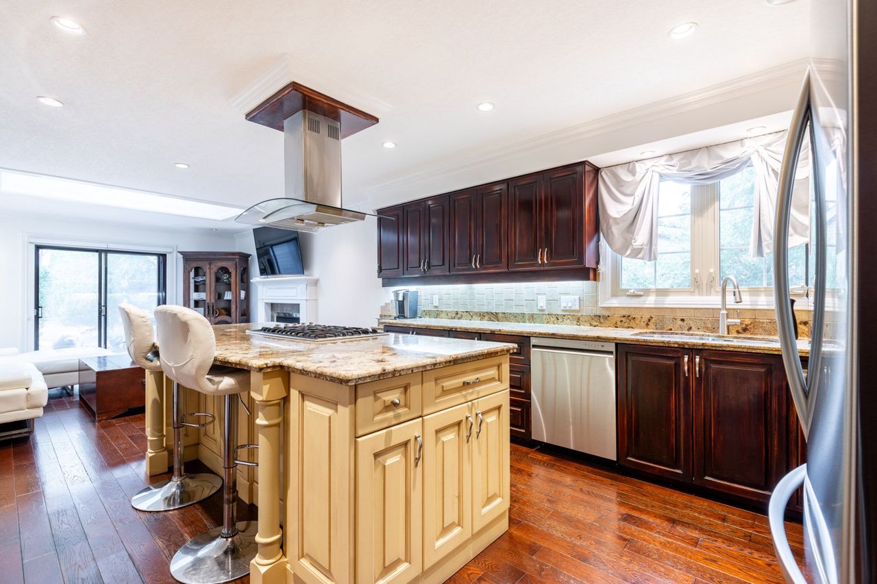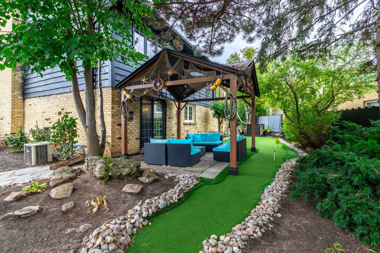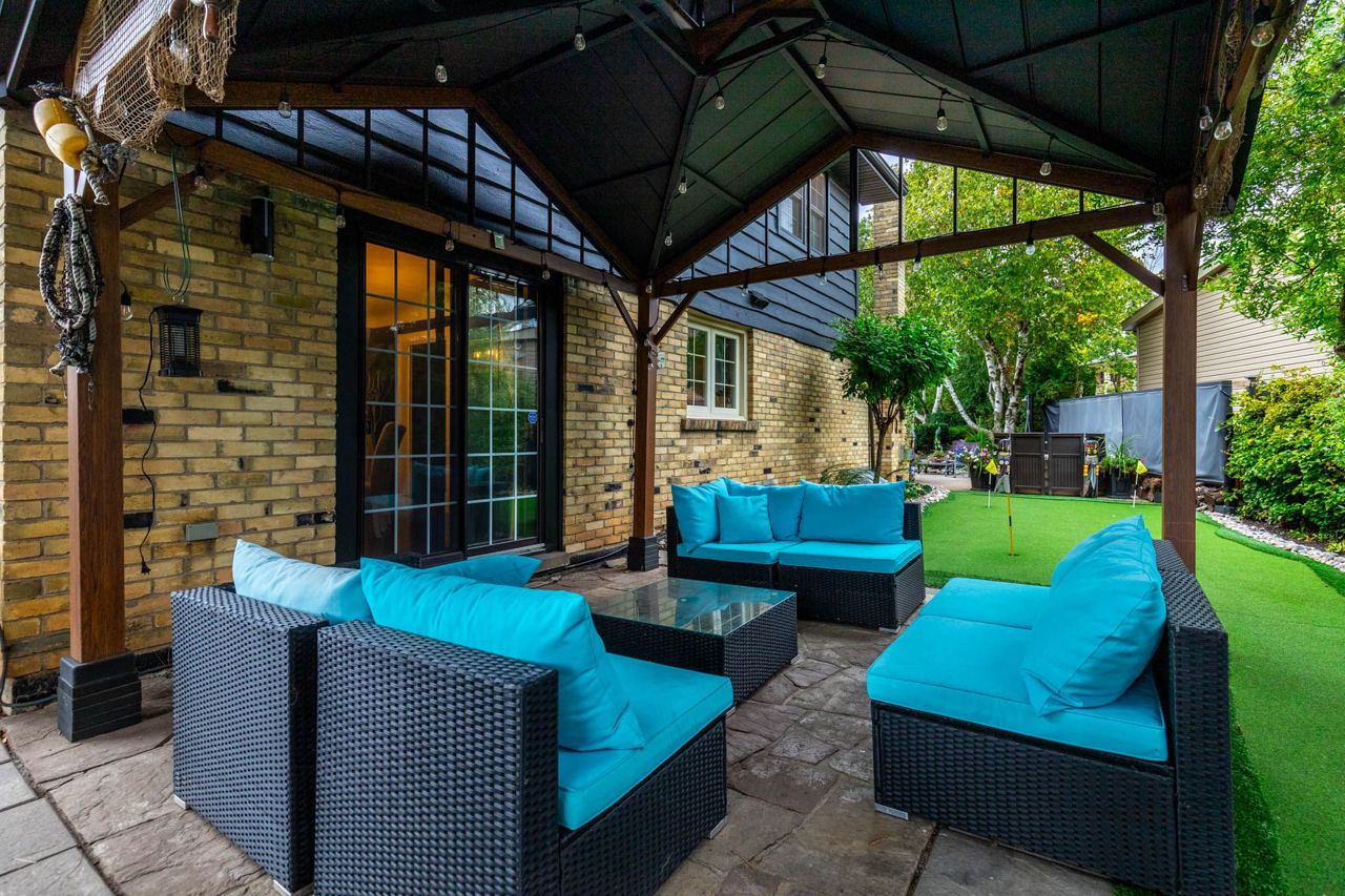 This stunning 3+2-bedroom, 3.5-bathroom home in the desirable Brant Hills neighborhood offers over 3,700 sq ft of living space. The open concept kitchen and family room features upgraded stainless-steel appliances, granite counters, and an under-mount sink, overlooking a private patio and putting green. The main floor also features a main floor office for those working from home. The formal living and dining areas have a walk-out to a private landscaped patio and tranquil pond. The primary bedroom offers a luxurious retreat with a spa-like 5pc ensuite, walk-in closet, and built-in wardrobe, while the other two bedrooms are large and have ample closets. The finished basement is equipped with Berber carpet, a fireplace, and ample space for games, large screens, and storage. This family-friendly property is located within walking distance to schools, shops, and restaurants, and is just minutes away from major highways. With space for up to 8 cars, this home caters to all your needs.