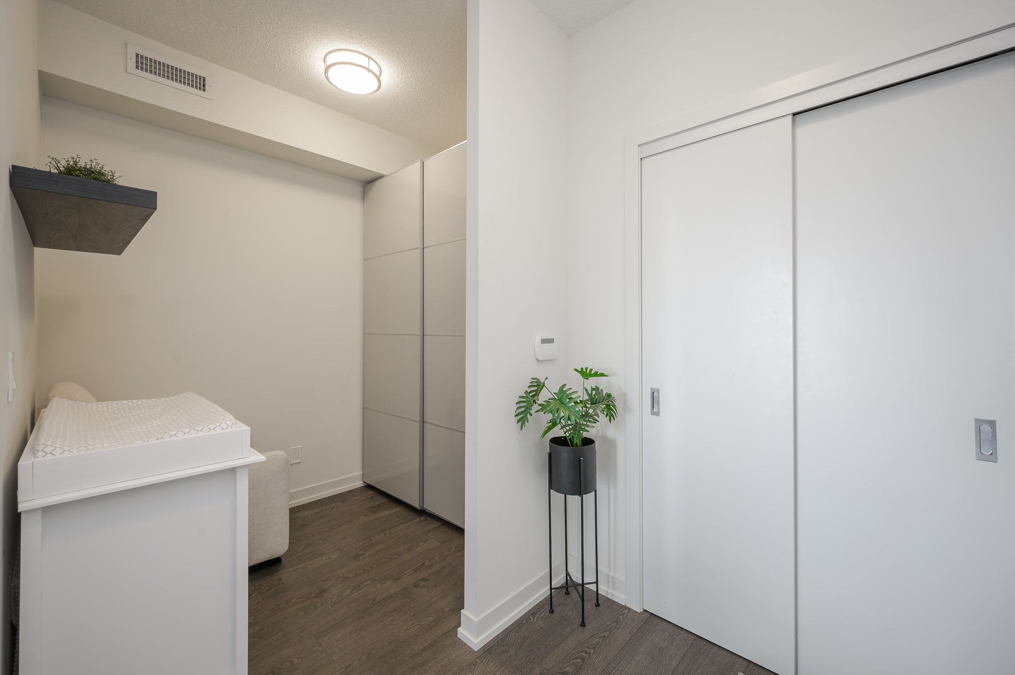 Welcome to Paradigm, where luxury living meets convenience in this stunning 1bed plus den, 1bath condo. Entering, you'll be greeted by upgraded vinyl flooring that flows seamlessly thru/out. Kitchen offers ss appliances, island w/seating, upgraded cabinets&tasteful backsplash. The kitchen opens to living rm, natural light pours in through sliding door leading to private balcony. Bedroom offering comfort & tranquility for restful nights. Bonus den provides flexibility-use as home office, cozy reading nook, or even guest room. Full bath completes the suite. Condo comes w/1 underground parking spot&locker. Paradigm offers an array of amenities - gym, basketball court, pool, hot tub&sauna. Plus exercise park&patio w/BBQs&loungers, party&games rooms&theater. There's even a designated area for your furry friends, complete w/pet-washing room. Additionally there are guest suites&bike storage. Don't forget to explore the rooftop sky-lounge deck for breathtaking views&memorable evenings.Enjoy the easy commute options, with the HWYs nearby & Go Transit just steps away. The location is great, w/Spencer Smith Park & The Pier, schools, parks, downtown shopping & restaurants all conveniently close.