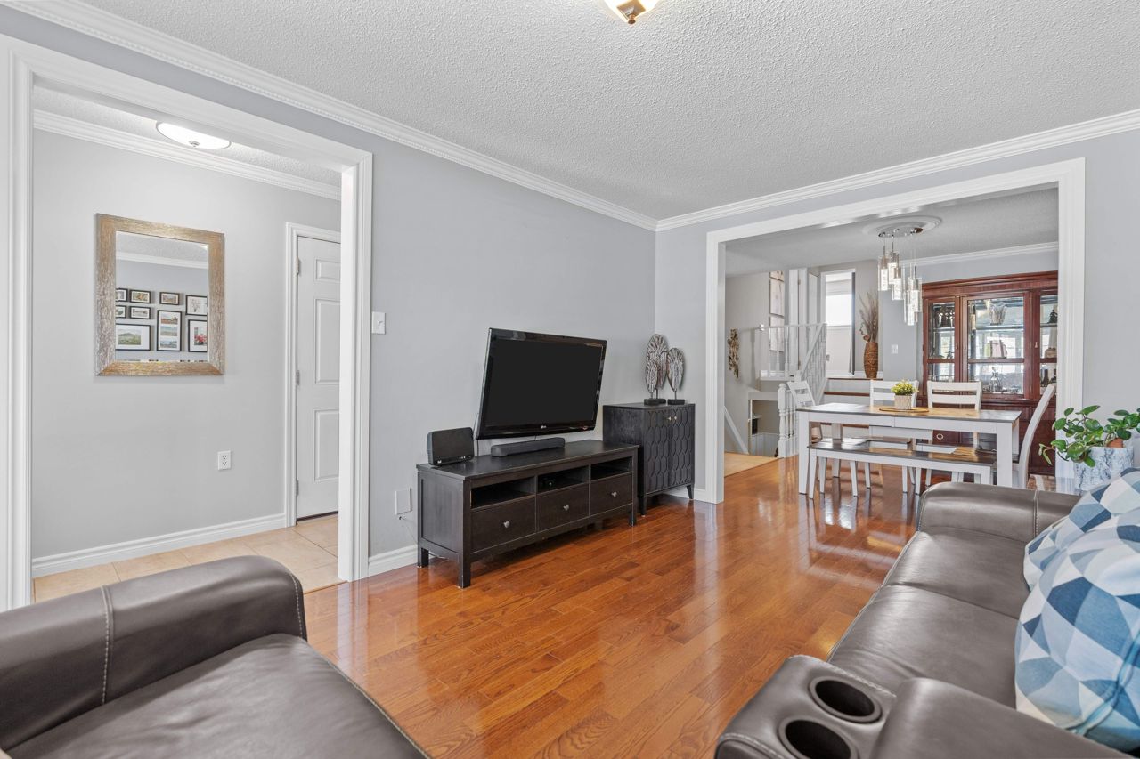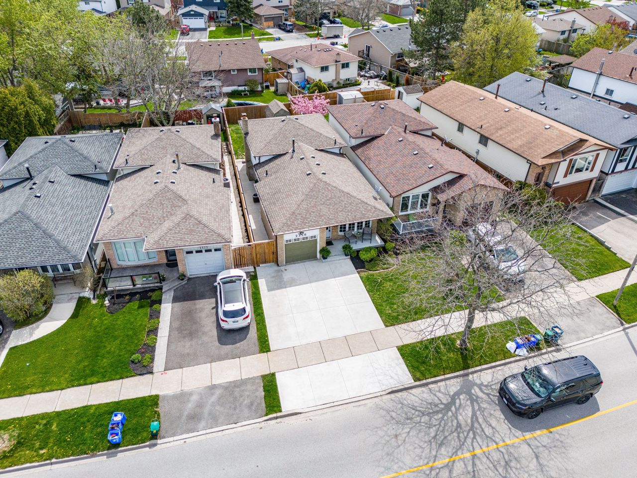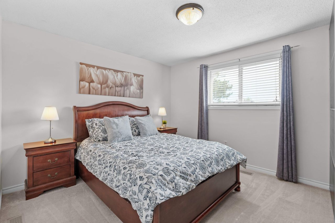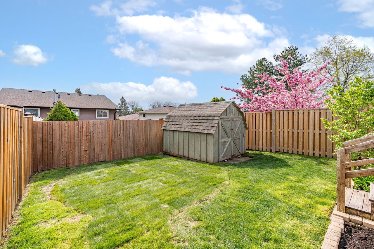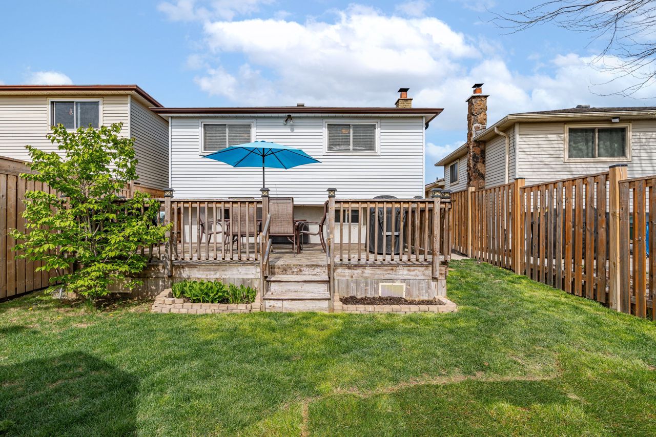 Built in '81, this well-maintained 3 bdrm, 2 bath, 4-lvl back-split is situated in Burlington's desirable 'Brant Hills' neighbourhood. Step inside & be greeted by the open-concept liv/din area w/ hardwood flrs & crown moulding, creating an inviting ambiance for entertaining guests or relaxing w/ family. The updated kitch feat sleek S/S app, a pantry for additional storage, a convenient peninsula w/ brek bar seating for 3+ - perfect for casual dining or morning coffee, & a side door leading to the yard. The upper lvl feat 3 spacious bdrms & a beautifully updated 4-pc bath, offering both style & functionality for your comfort. The lower lvl feat a spacious great rm, complete w/ a gas FP, built-in shelving/cab, wainscotting, & a built-in desk area. This lvl also feat a convenient 3-pc bath, adding convenience & versatility to your lifestyle. Venture downstairs to discover the bsmt lvl, boasting laund facilities, a versatile den (currently utilized as guest bdrm), & an unspoiled area for storage. Outside, enjoy the convenience of a single-car grg w/ inside entry, an updated concrete drive/walkways (21), & a charming front porch that welcomes you home. The rear yard offers a peaceful retreat w/ a deck and storage shed. Conveniently located near schools, parks, shopping, major trans routes, & all other amenities, this home offers the perfect blend of comfort, convenience, and style.