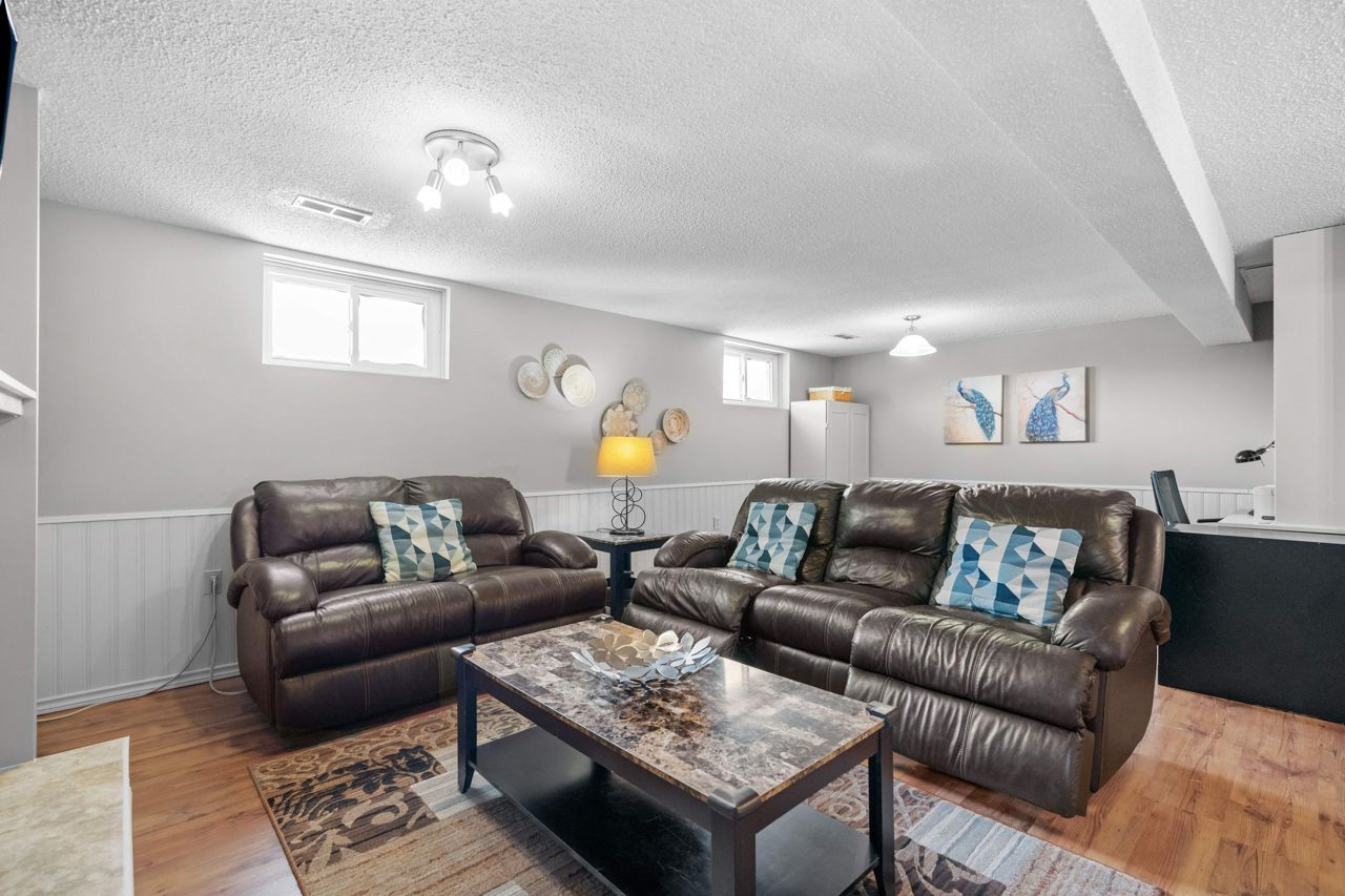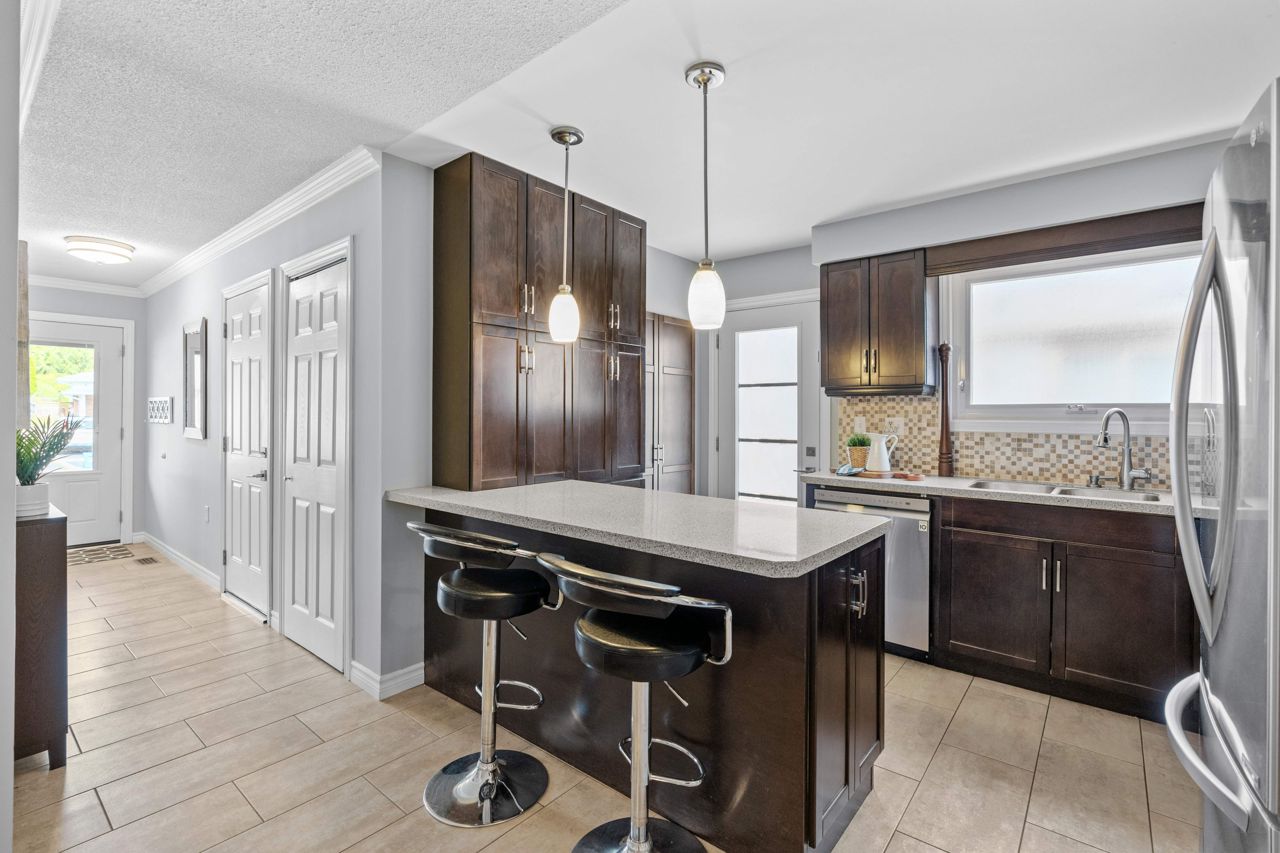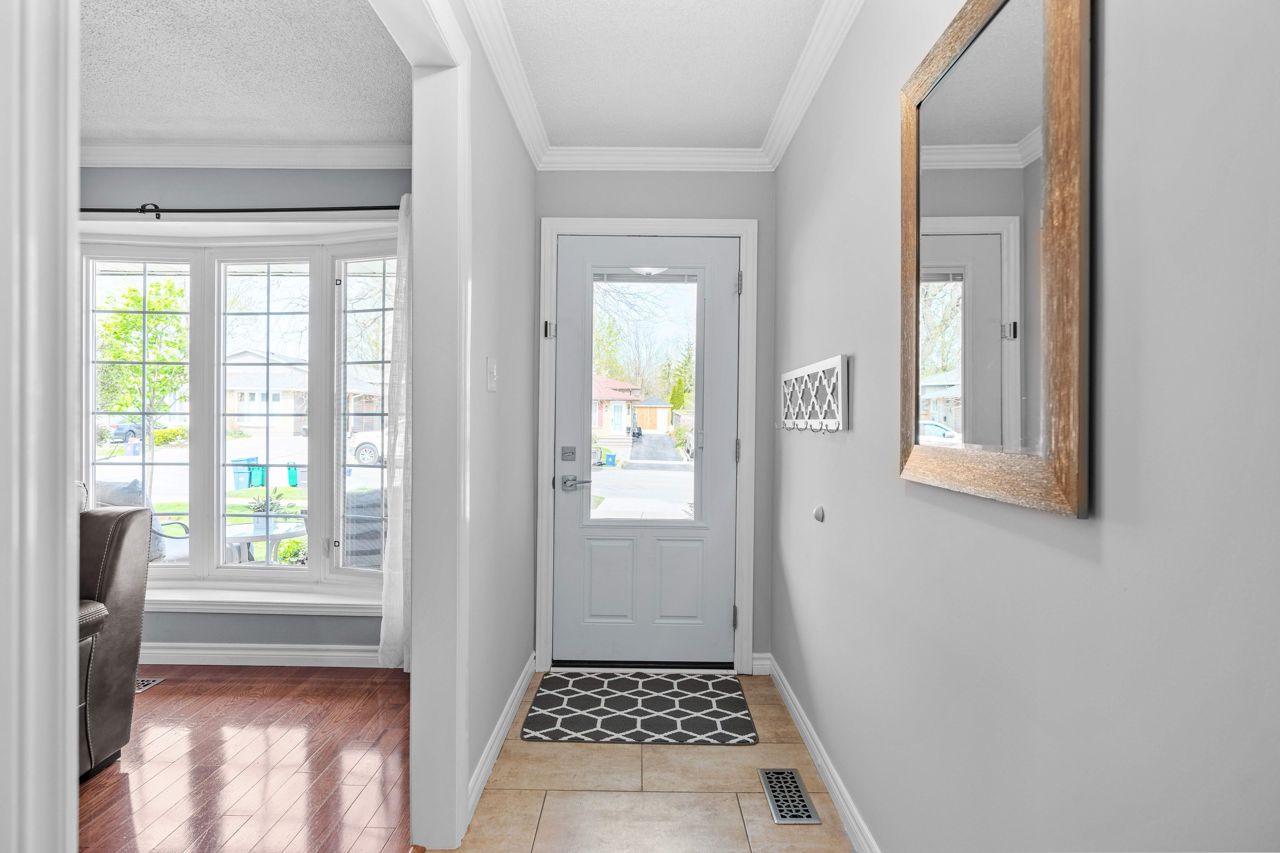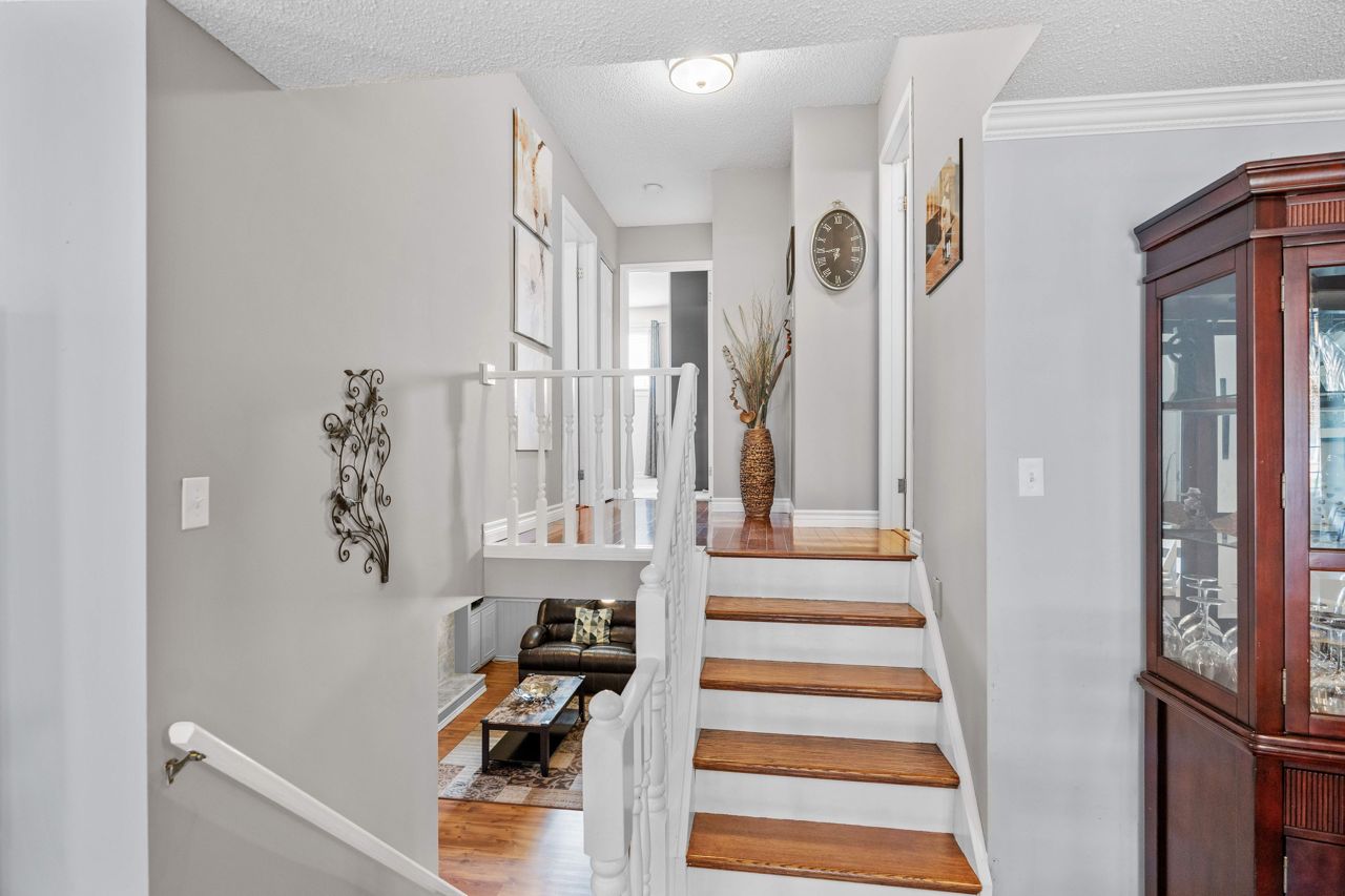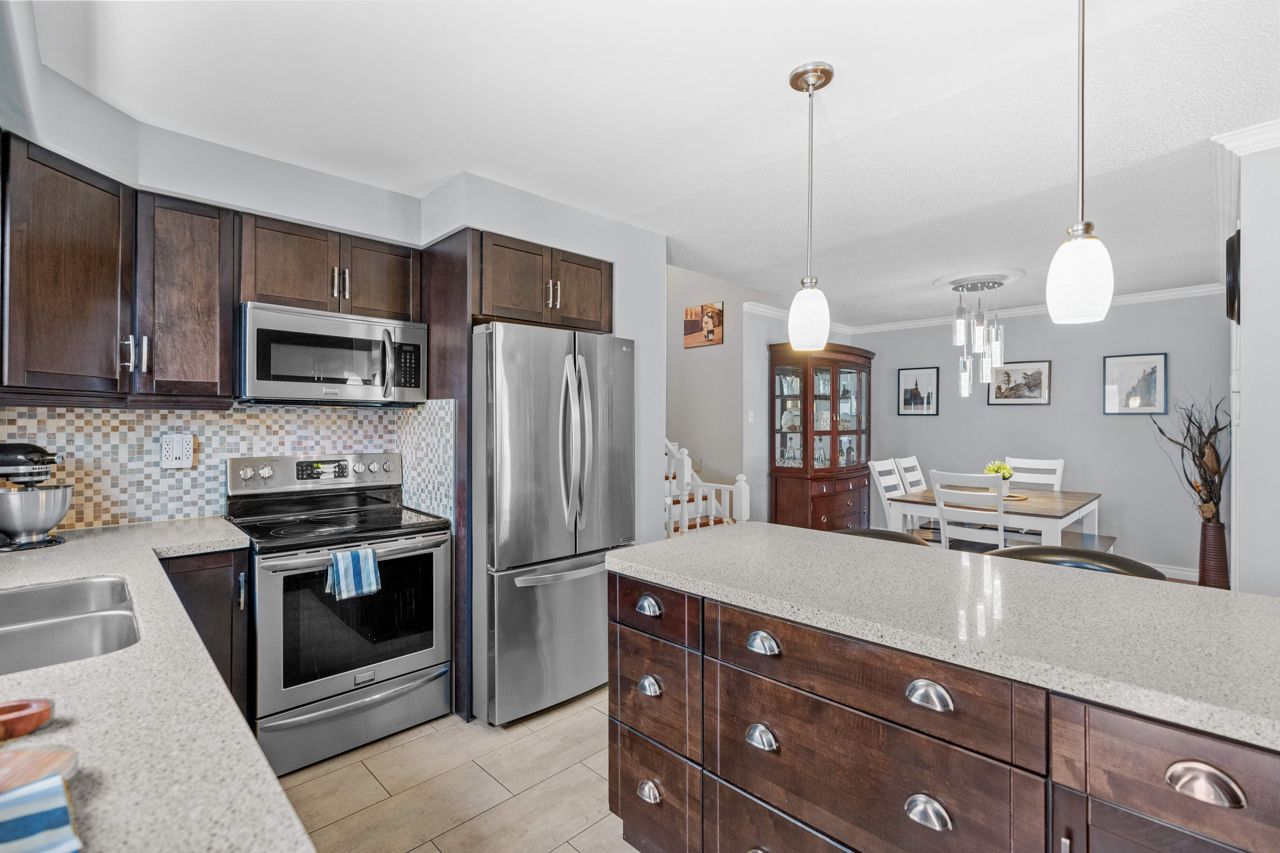 Built in '81, this well-maintained 3 bdrm, 2 bath, 4-lvl back-split is situated in Burlington's desirable 'Brant Hills' neighbourhood. Step inside & be greeted by the open-concept liv/din area w/ hardwood flrs & crown moulding, creating an inviting ambiance for entertaining guests or relaxing w/ family. The updated kitch feat sleek S/S app, a pantry for additional storage, a convenient peninsula w/ brek bar seating for 3+ - perfect for casual dining or morning coffee, & a side door leading to the yard. The upper lvl feat 3 spacious bdrms & a beautifully updated 4-pc bath, offering both style & functionality for your comfort. The lower lvl feat a spacious great rm, complete w/ a gas FP, built-in shelving/cab, wainscotting, & a built-in desk area. This lvl also feat a convenient 3-pc bath, adding convenience & versatility to your lifestyle. Venture downstairs to discover the bsmt lvl, boasting laund facilities, a versatile den (currently utilized as guest bdrm), & an unspoiled area for storage. Outside, enjoy the convenience of a single-car grg w/ inside entry, an updated concrete drive/walkways (21), & a charming front porch that welcomes you home. The rear yard offers a peaceful retreat w/ a deck and storage shed. Conveniently located near schools, parks, shopping, major trans routes, & all other amenities, this home offers the perfect blend of comfort, convenience, and style.