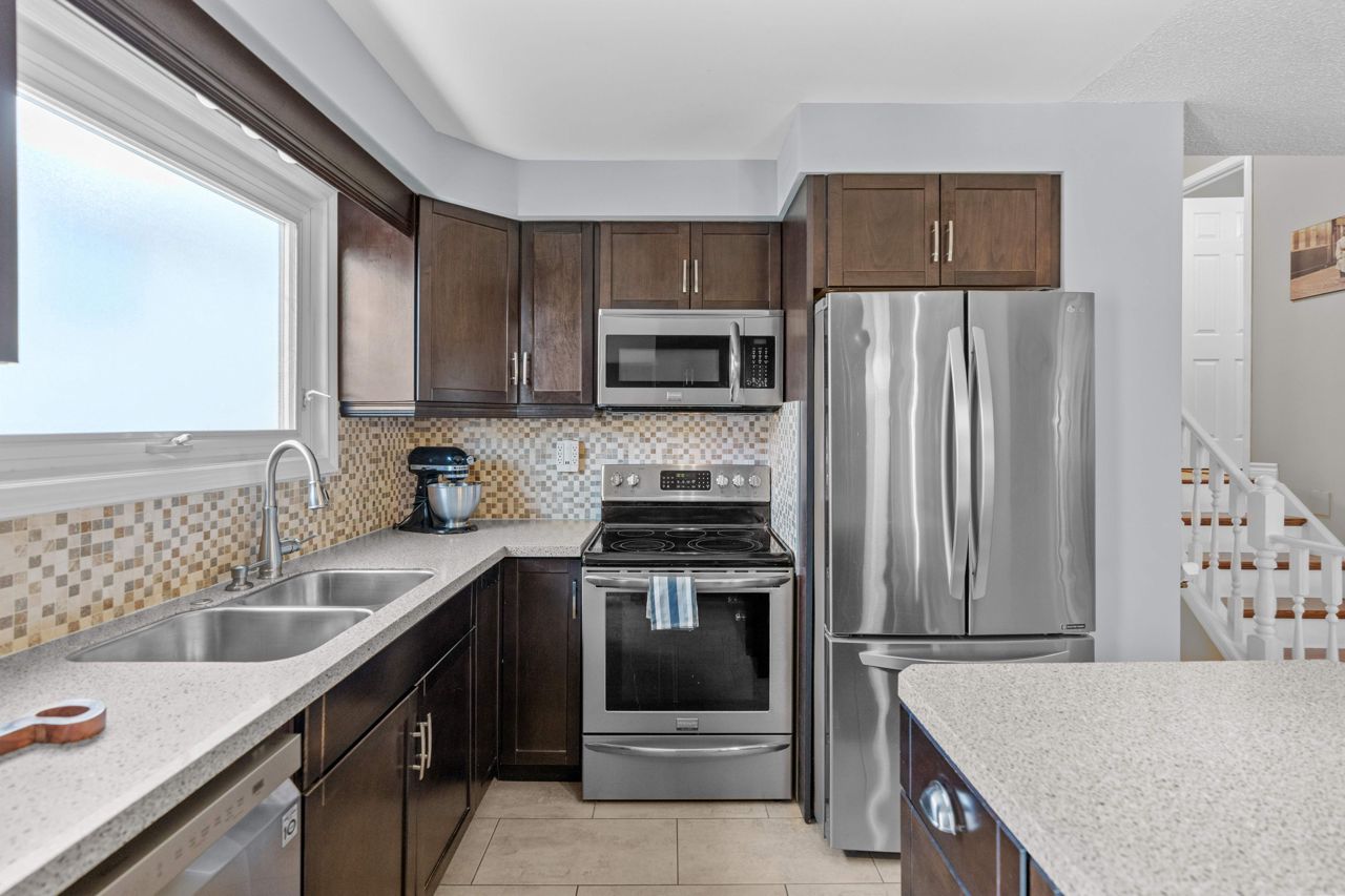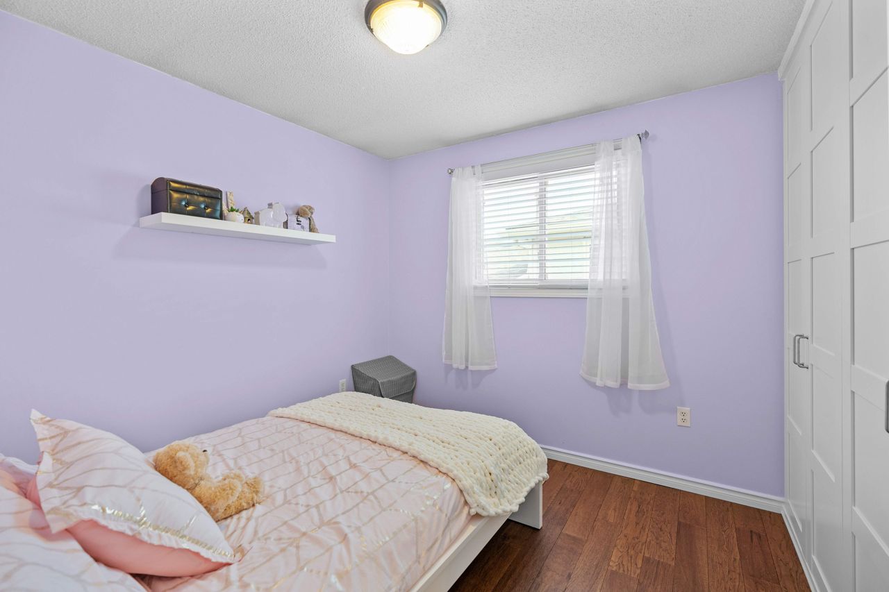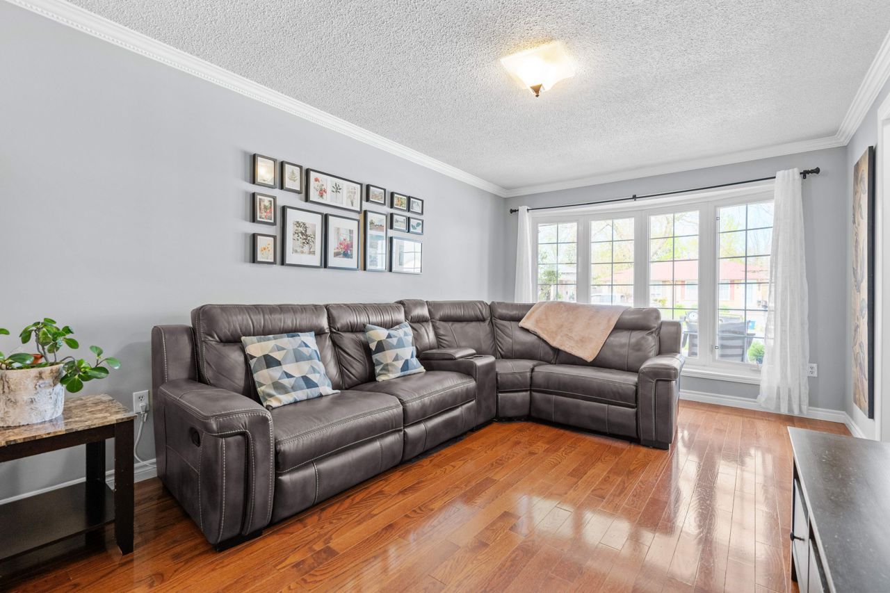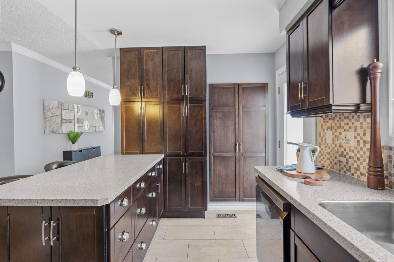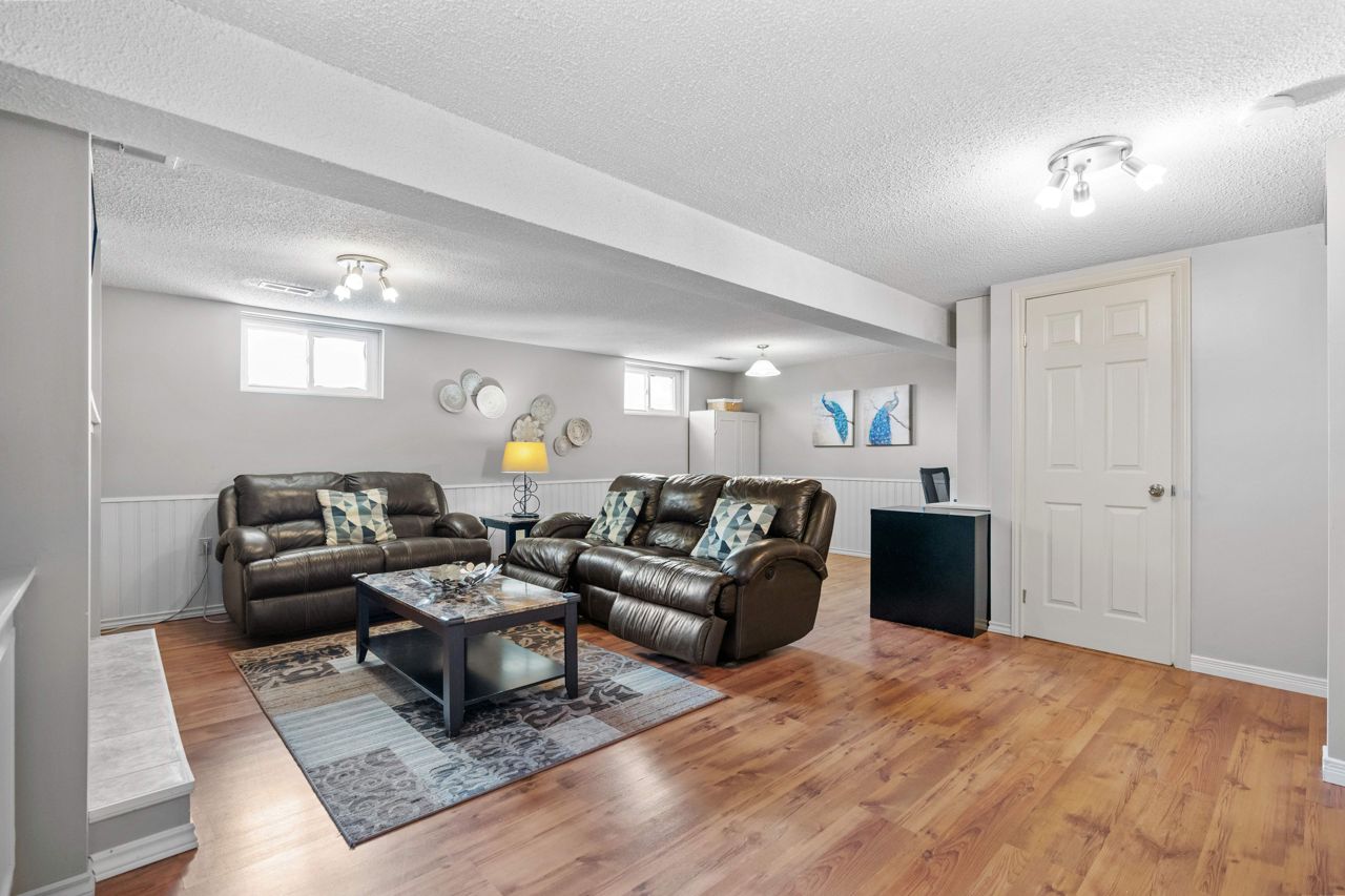 Built in '81, this well-maintained 3 bdrm, 2 bath, 4-lvl back-split is situated in Burlington's desirable 'Brant Hills' neighbourhood. Step inside & be greeted by the open-concept liv/din area w/ hardwood flrs & crown moulding, creating an inviting ambiance for entertaining guests or relaxing w/ family. The updated kitch feat sleek S/S app, a pantry for additional storage, a convenient peninsula w/ brek bar seating for 3+ - perfect for casual dining or morning coffee, & a side door leading to the yard. The upper lvl feat 3 spacious bdrms & a beautifully updated 4-pc bath, offering both style & functionality for your comfort. The lower lvl feat a spacious great rm, complete w/ a gas FP, built-in shelving/cab, wainscotting, & a built-in desk area. This lvl also feat a convenient 3-pc bath, adding convenience & versatility to your lifestyle. Venture downstairs to discover the bsmt lvl, boasting laund facilities, a versatile den (currently utilized as guest bdrm), & an unspoiled area for storage. Outside, enjoy the convenience of a single-car grg w/ inside entry, an updated concrete drive/walkways (21), & a charming front porch that welcomes you home. The rear yard offers a peaceful retreat w/ a deck and storage shed. Conveniently located near schools, parks, shopping, major trans routes, & all other amenities, this home offers the perfect blend of comfort, convenience, and style.