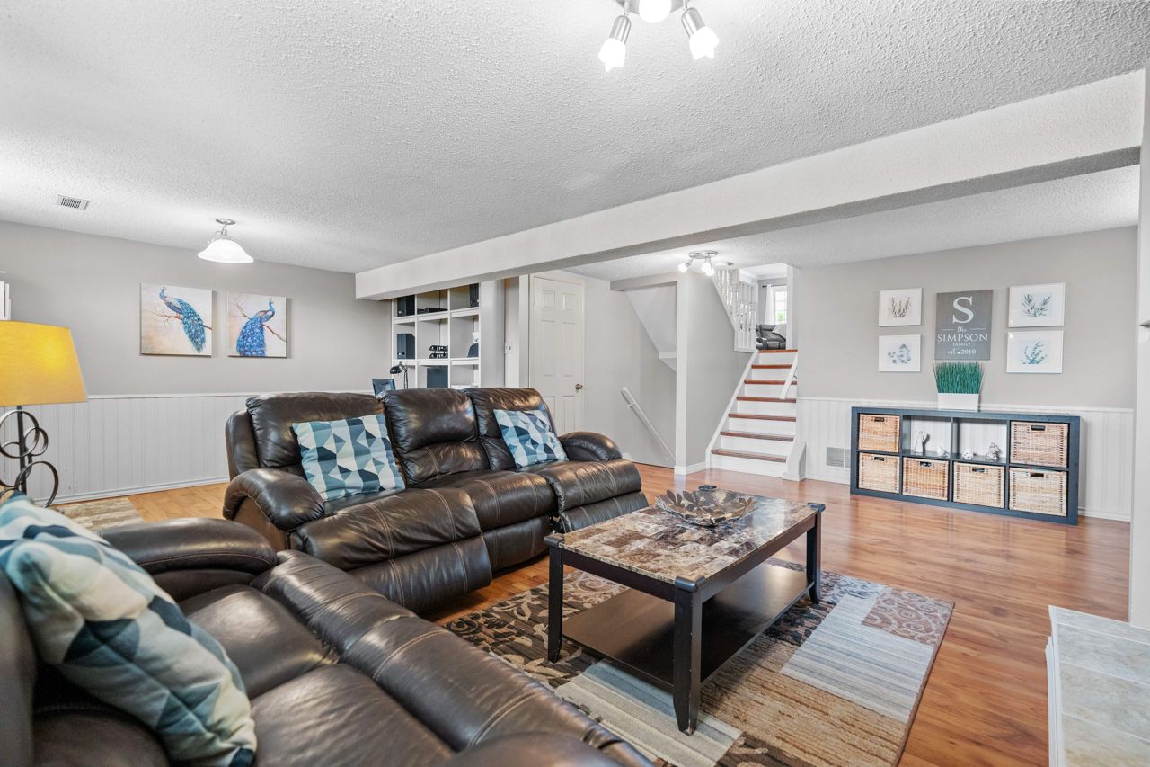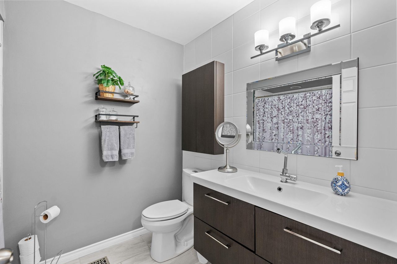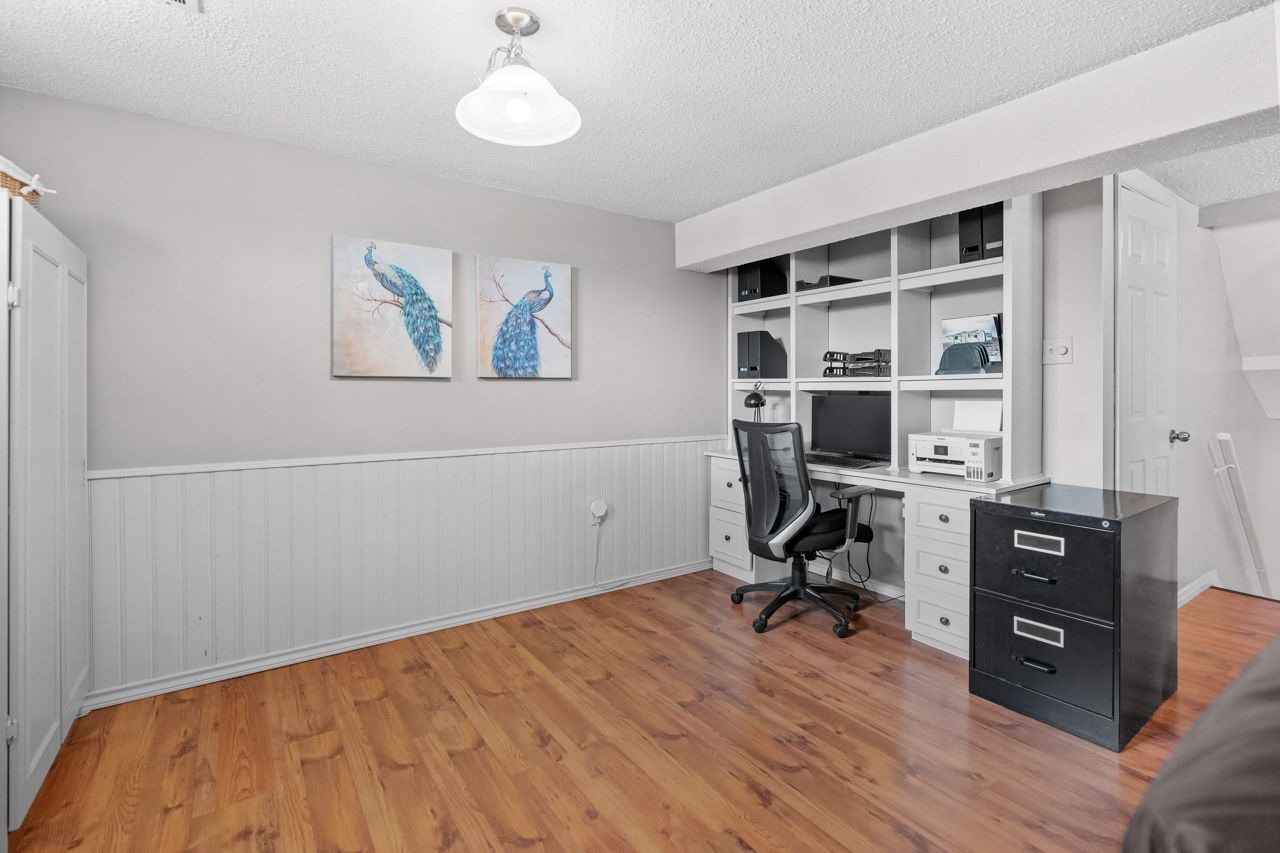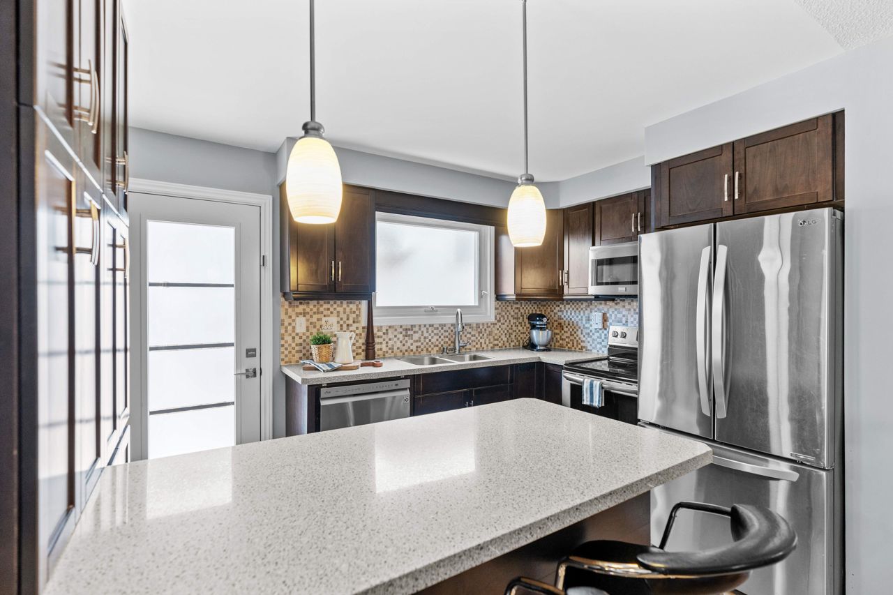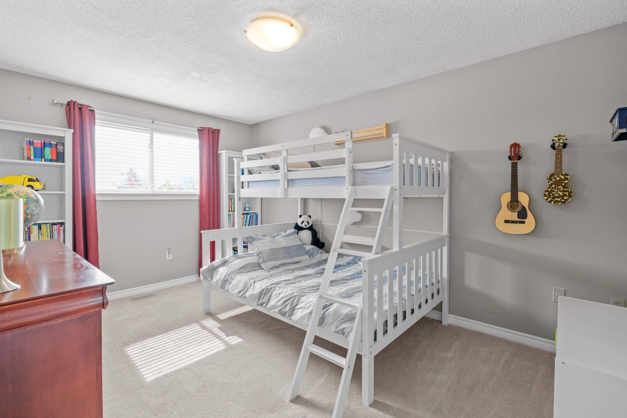 Built in '81, this well-maintained 3 bdrm, 2 bath, 4-lvl back-split is situated in Burlington's desirable 'Brant Hills' neighbourhood. Step inside & be greeted by the open-concept liv/din area w/ hardwood flrs & crown moulding, creating an inviting ambiance for entertaining guests or relaxing w/ family. The updated kitch feat sleek S/S app, a pantry for additional storage, a convenient peninsula w/ brek bar seating for 3+ - perfect for casual dining or morning coffee, & a side door leading to the yard. The upper lvl feat 3 spacious bdrms & a beautifully updated 4-pc bath, offering both style & functionality for your comfort. The lower lvl feat a spacious great rm, complete w/ a gas FP, built-in shelving/cab, wainscotting, & a built-in desk area. This lvl also feat a convenient 3-pc bath, adding convenience & versatility to your lifestyle. Venture downstairs to discover the bsmt lvl, boasting laund facilities, a versatile den (currently utilized as guest bdrm), & an unspoiled area for storage. Outside, enjoy the convenience of a single-car grg w/ inside entry, an updated concrete drive/walkways (21), & a charming front porch that welcomes you home. The rear yard offers a peaceful retreat w/ a deck and storage shed. Conveniently located near schools, parks, shopping, major trans routes, & all other amenities, this home offers the perfect blend of comfort, convenience, and style.