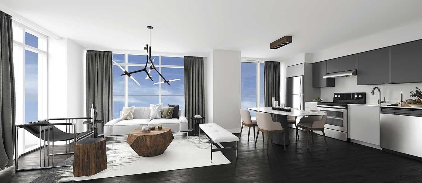 BRAND NEW NEVER LIVED luxury Condo 2-bedroom, 2-bathroom with parking, 6th floor unit offers a modern living experience. 636 square feet of living space and over 116 square feet of open balcony. W wide plank engineered laminate flooring throughout, premium Whirlpool stainless steel