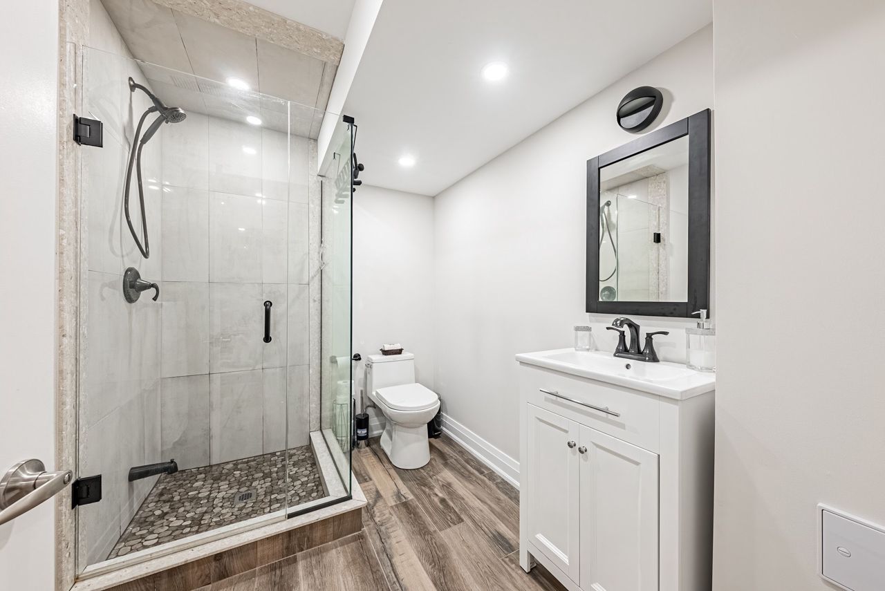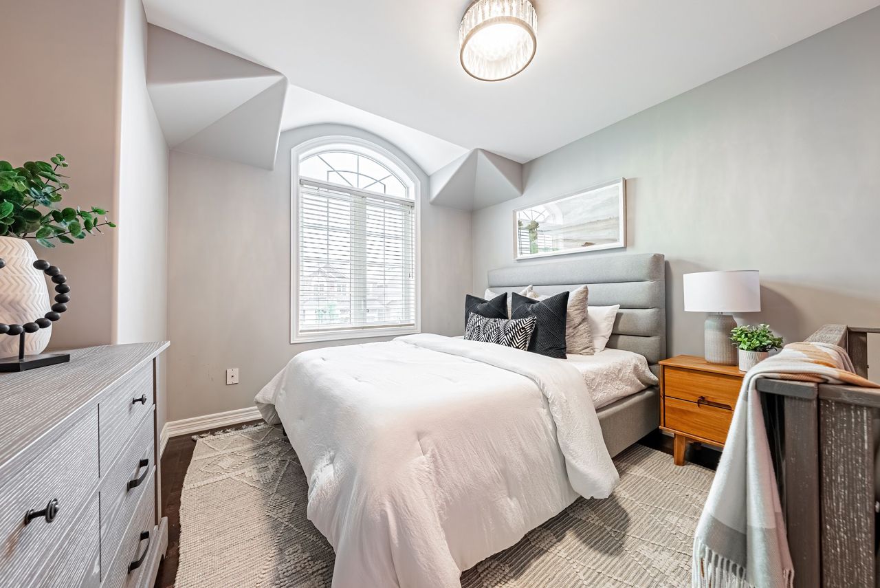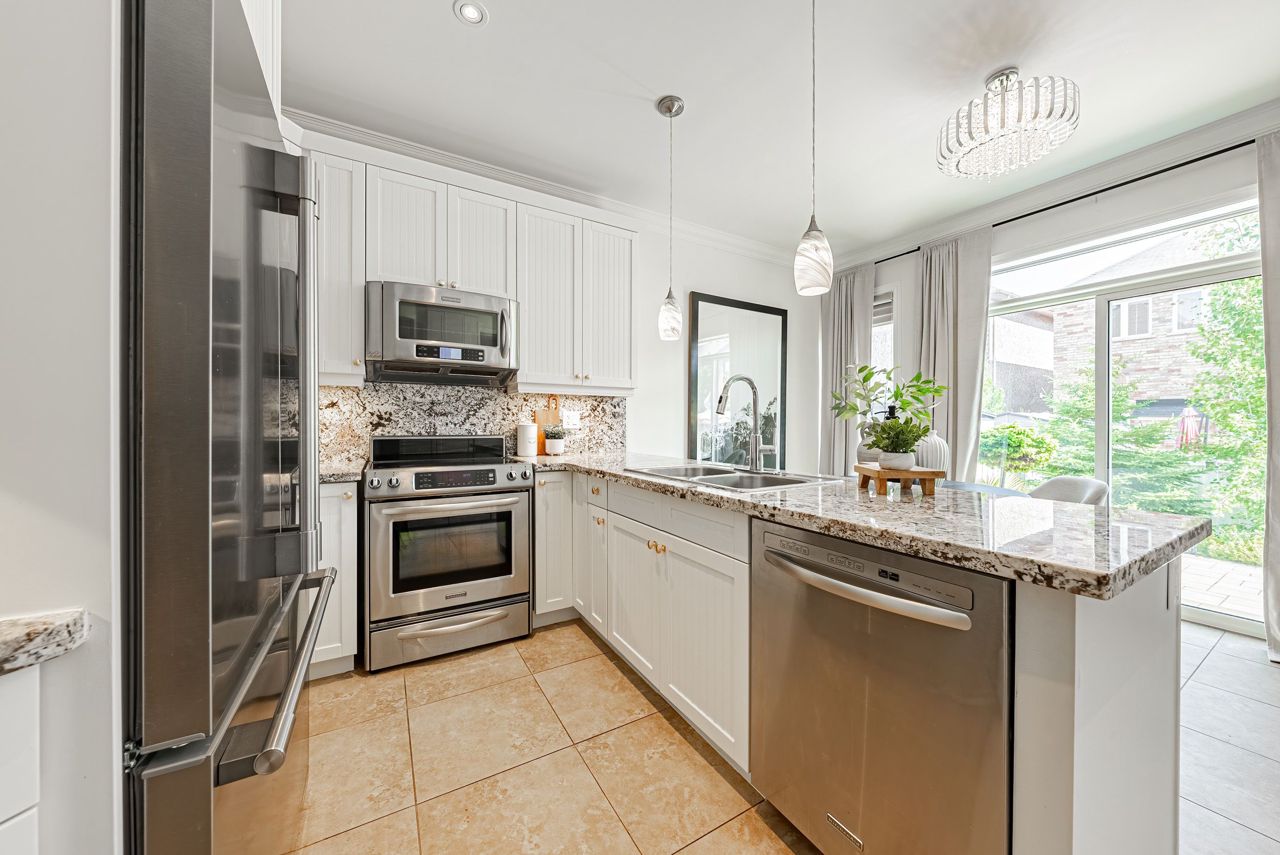 Incredible 3 bedroom, 3.5 bath Fernbrook built home within walking distance to St. Anne's school with over 2800 sq ft of living space! Engineered bamboo floors on main, 9ft ceilings, crown moulding, gas fireplace w marble surround & oak mantle, custom blinds & pot lights set the tone for the level of finishes this home has to offer. Bright kitchen w custom cabinetry, granite countertops & backsplash, SS appliances, pantry & eat in area! Open to above oak staircase leads to 3 great sized bdrms, hardwood flrs, laundry rm, 3pc bath & beautiful 4pc master ensuite w double sinks, large tub & oversized shower. The fully finished basement offers a rec room, custom bar area, gym/home office space & beautiful 3pc bath. Maintenance free backyard living featuring limestone coloured natural stone that wraps to the front of the home, wiring for an outdoor TV + a gas bbq hookup. Located close to 407 & QEW, shops & restaurants this home is surrounded with fantastic amenities for your whole family!