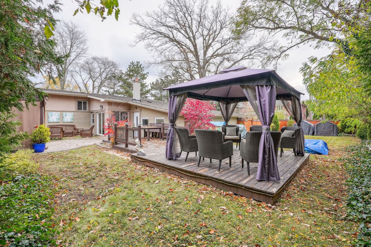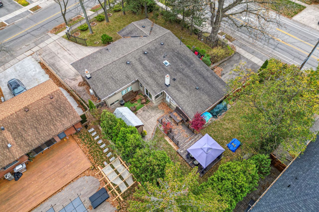 Welcome to this exceptional corner lot home in Burlington's coveted Elizabeth Gardens neighborhood,offering versatile living options w/a full in-law suite or potential to build your dream home.The spacious property fts 8+ parking spots,two driveways&an inviting stucco&tile exterior. Inside,living rm welcomes you with warmth through hardwood flrs,oversized windows&pot lights.The chef's dream kitchen boasts a subway tile backsplash,granite countertops&an arched ceiling Main bathrm is a 5-piece retreat w/a large double vanity&bright window.Three bedrms on this lvl offer arched ceilings&le storage. L/L features a large flex rm w/skylights&a wet bar,perfect for entertaining,along w/an office with backyard&garage access.The double door garage provides additional storage. Bsmt serves as an in-law suite with above-grade windows,a spacious rec rm, 2nd kit& two lrg bathrms. Backyard oasis includes aggregate concrete,a wood deck w/ built-in seating,pergola,open green space&a large garden shed.Close to highways, amenities& parks, this property is an incredible opportunity for your forever home! Inclusions: All existing elf’s, all window coverings, All existing appliances: 2 fridges, 2 stoves, 2 hood fans,