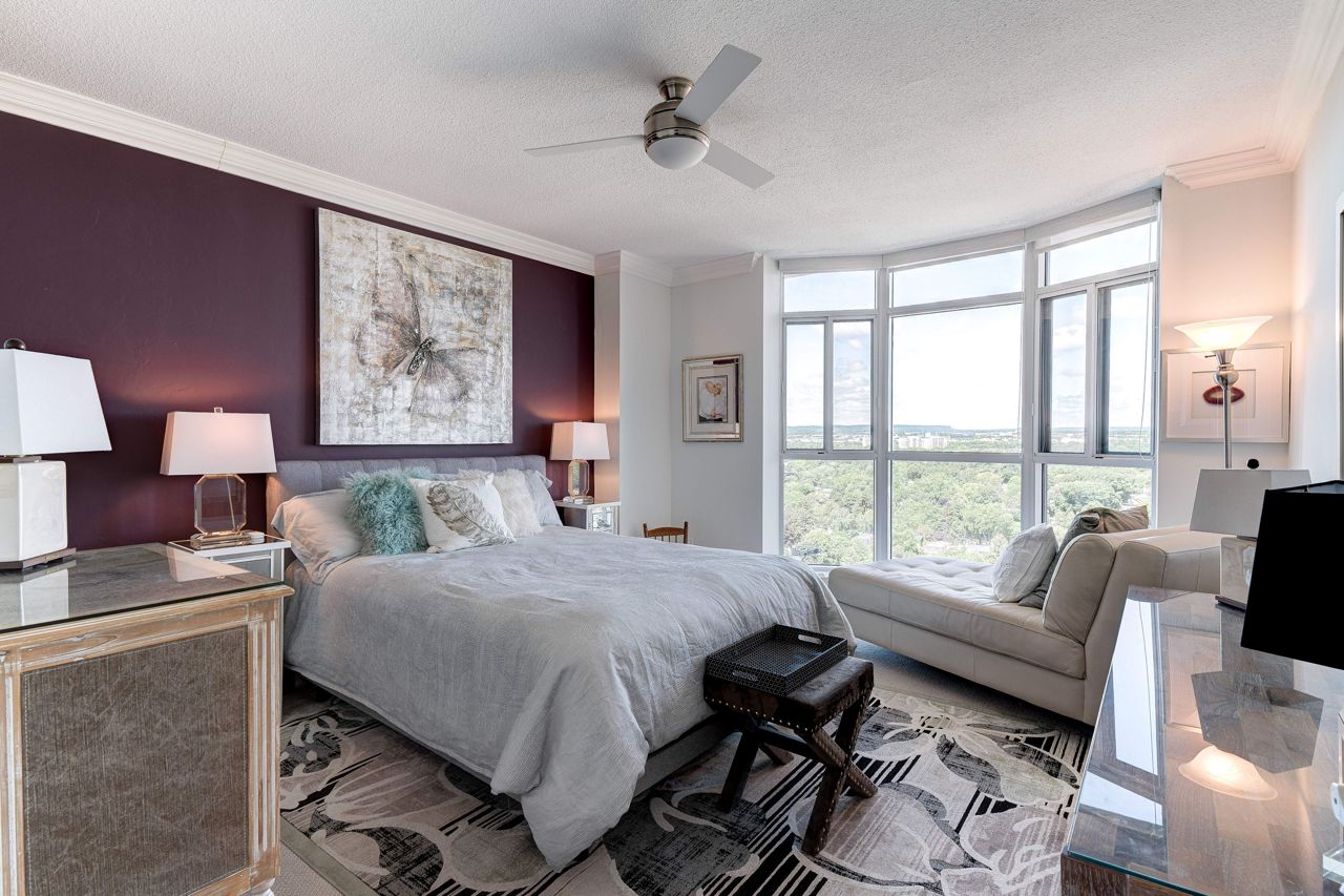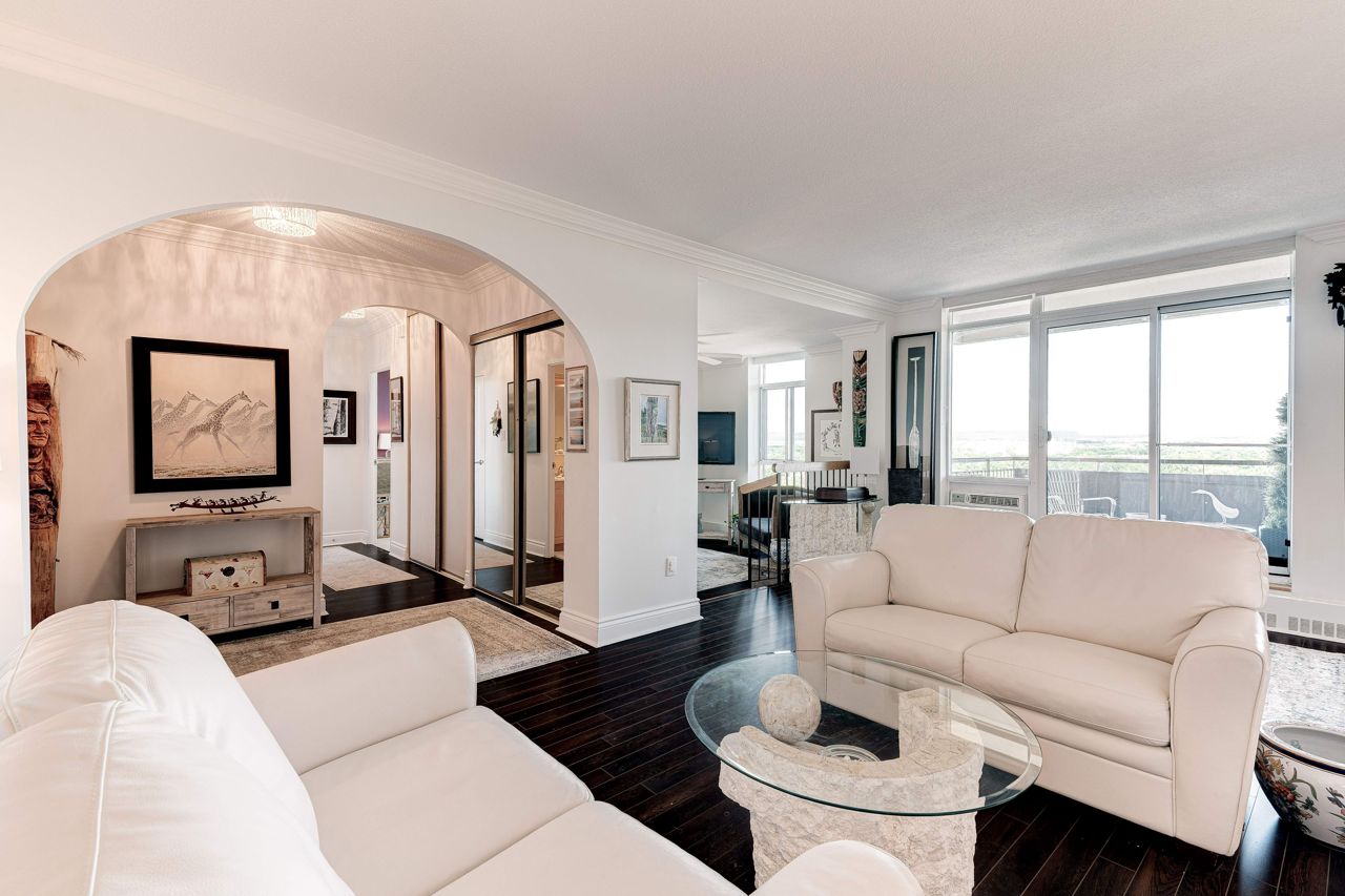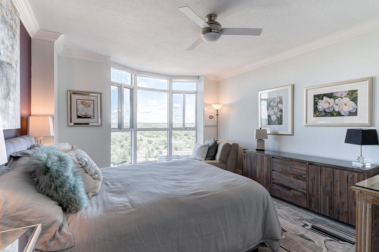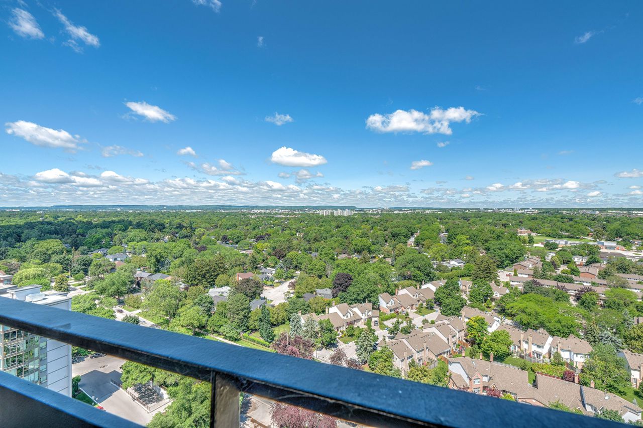 Beautifully upgraded penthouse with panoramic unobstructed view!Approx 1185 sq ft. DEN FITS LARGE SOFA BED OR COULD BE CONVERTED TO 2ND BEDROOM. Enjoy the view of the mesmerizing sunsets that descend over the picturesque escarpment. Nestled on the shores of Lake Ontario, you can relax by the outdoor pool taking in the lake views. Fabulous new renovations are in progress at Admirals Walk! Elegant new hallways and decor, & the lobby will also soon be refreshed. This fabulous condo has quality upgrades incl upgraded white kitchen, hardwood floors, ensuite laundry, and more. Custom built-ins and closet organizers are strategically incorporated throughout the unit, ensuring that every inch of space is optimized to its fullest potential. Plenty of amenities to utilize. Fabulous location with easy access to highways, shopping and Bronte Harbour to the east and downtown Burlington to the west. Move in ready!