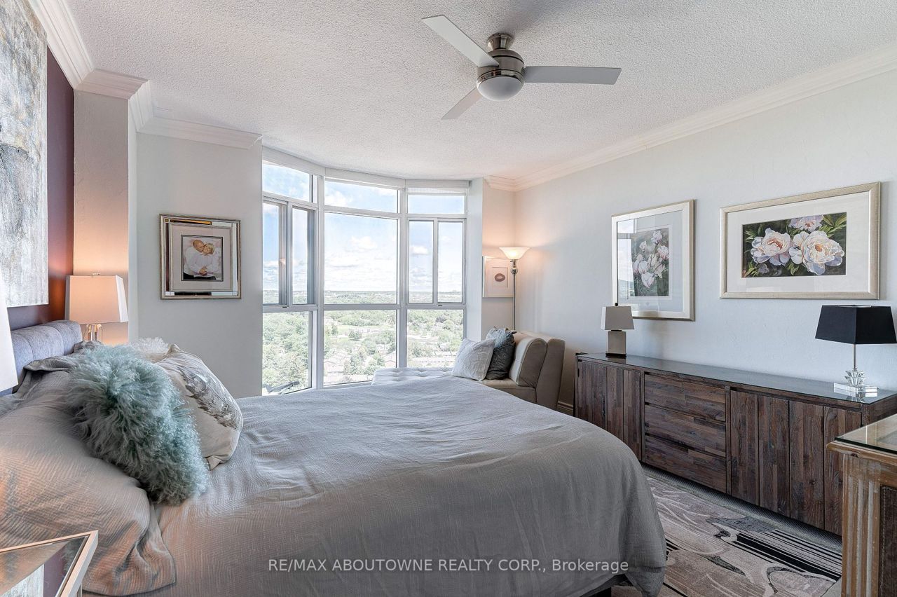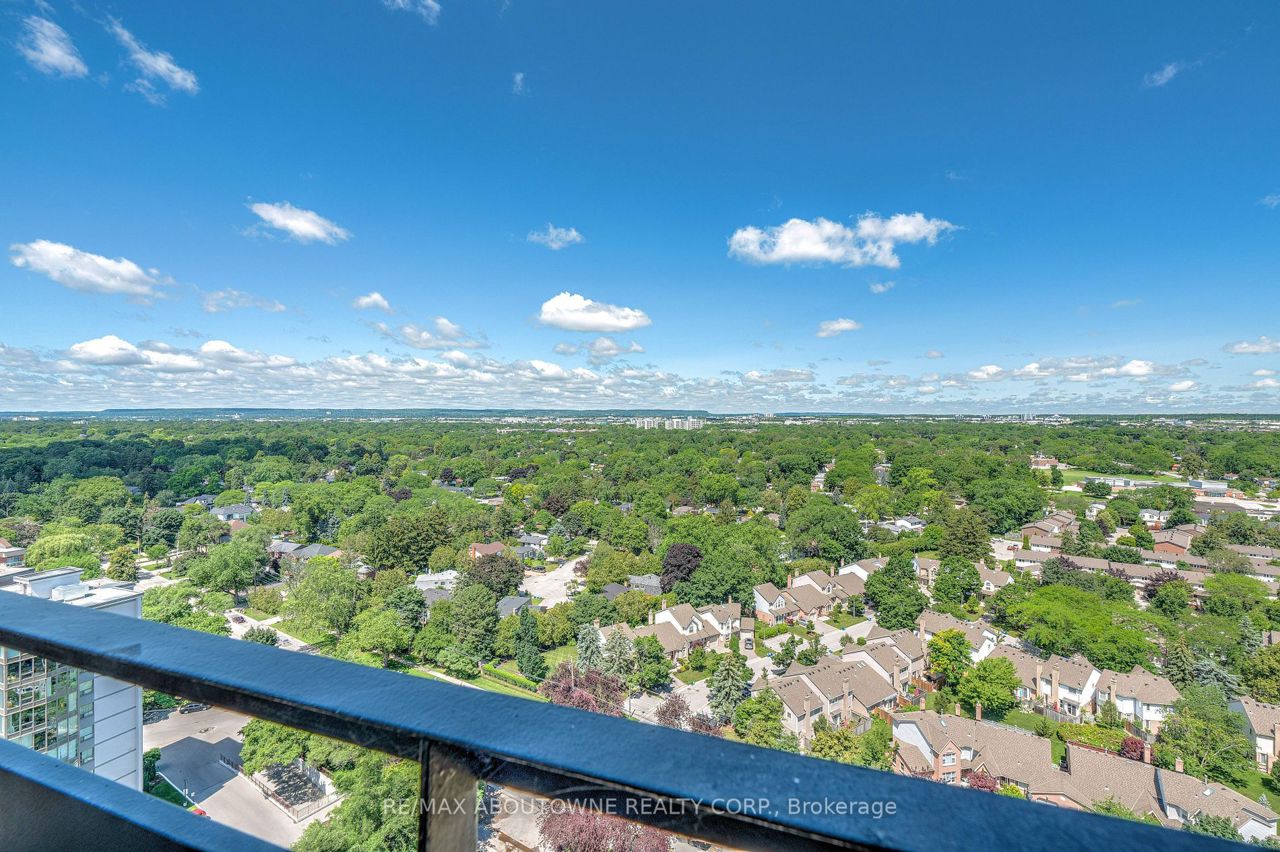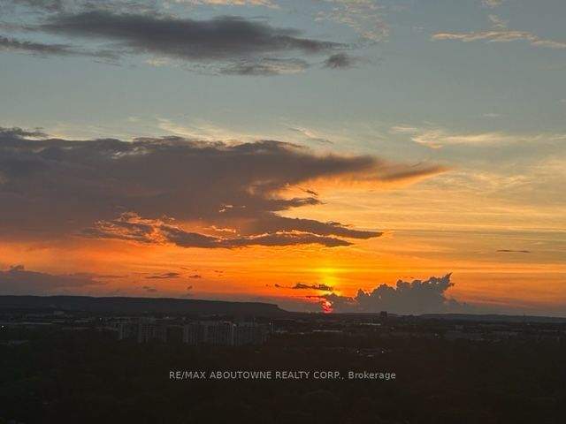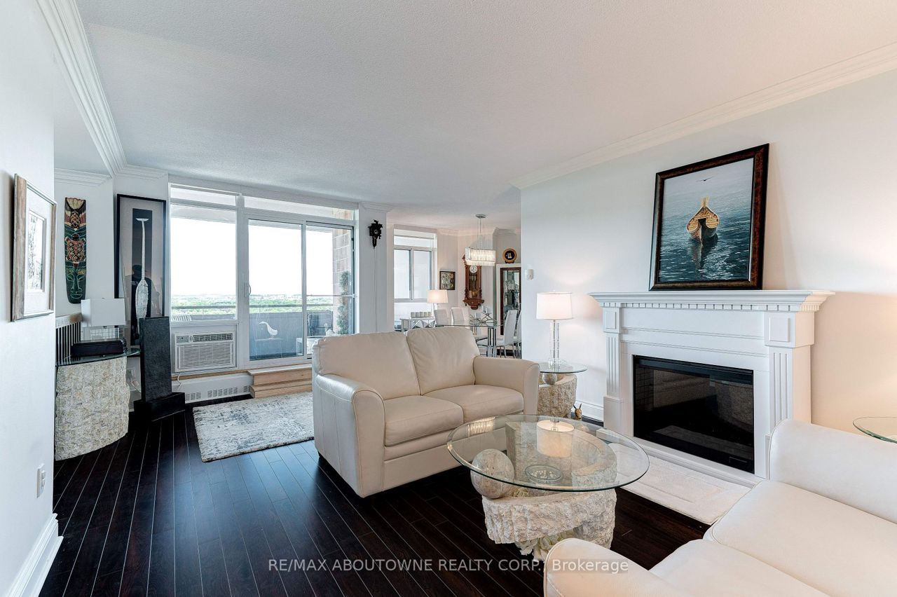 Beautifully upgraded penthouse with panoramic unobstructed view! Approx. 1185 sq ft. DEN FITS LARGE SOFA BED OR COULD BE CONVERTED TO 2ND BEDROOM. Enjoy the view of the mesmerizing sunsets that descend over the picturesque escarpment. Nestled on the shores of Lake Ontario, you can relax by the outdoor pool taking in the lake views. Fabulous new renovations are in progress at Admirals Walk! Elegant new hallways and decor, & the lobby will also soon be refreshed. This fabulous condo has quality upgrades including upgraded white kitchen, hardwood floors, ensuite laundry, and more. Custom built-ins and closet organizers are strategically incorporated throughout the unit, ensuring that every inch of space is optimized to its fullest potential. Plenty of amenities to utilize. Fabulous location with easy access to highways, shopping and Bronte Harbour to the east and downtown Burlington to the west. Move in ready!