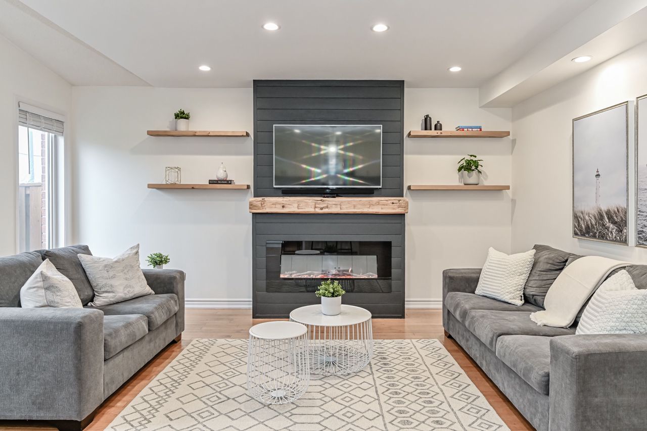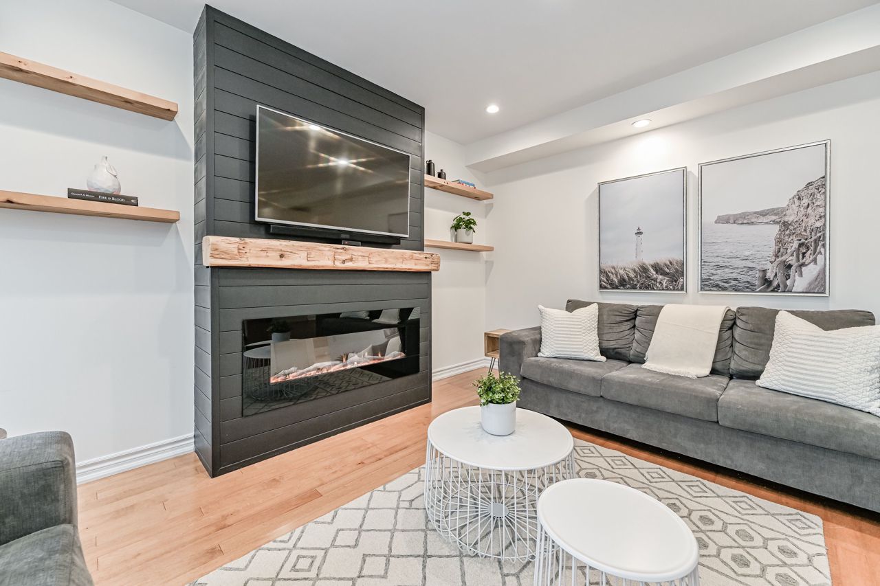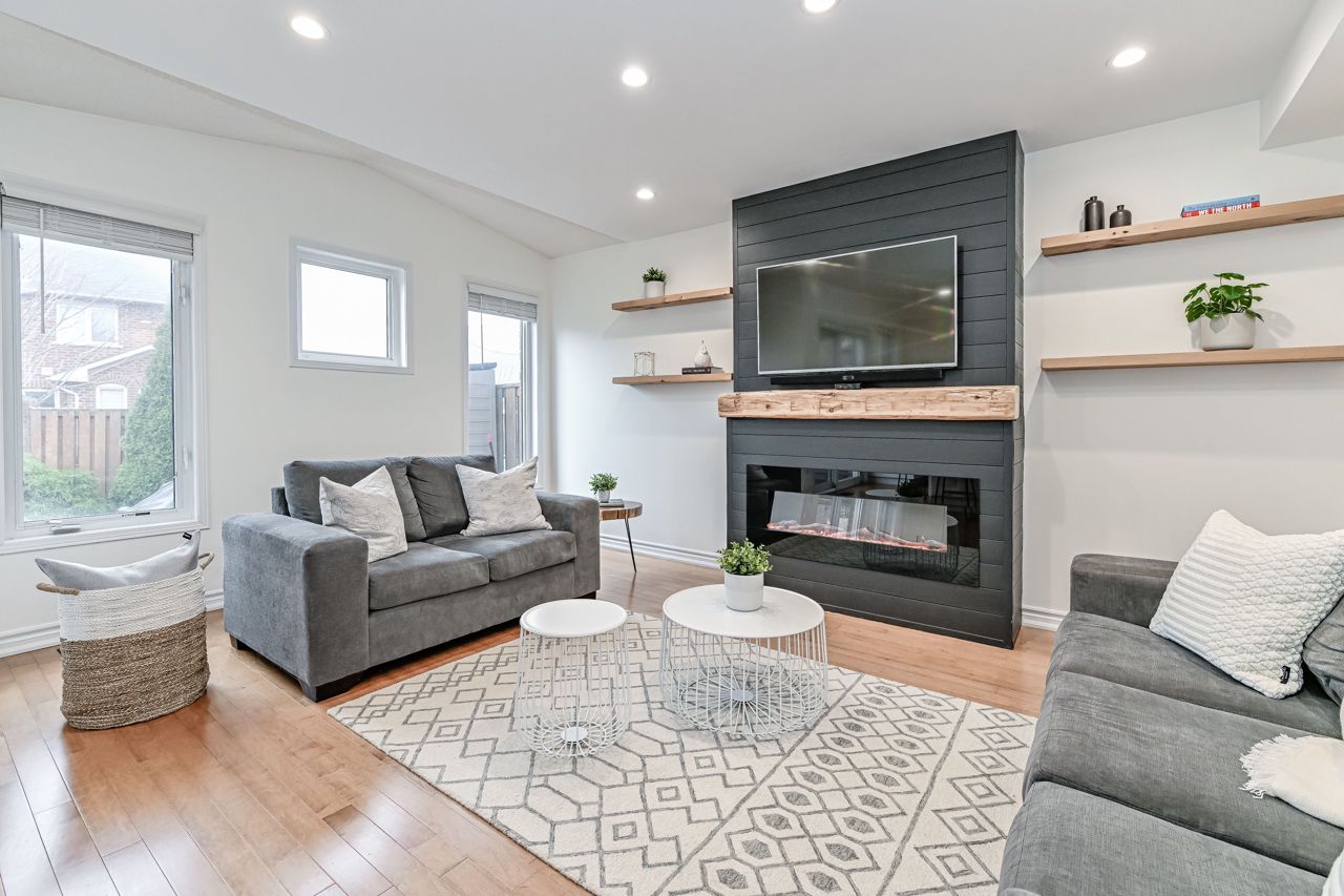 Rarely offered Large Immaculate 4 Bedroom Semi-Detached with 2255 sq ft of Finished Living Space. This Modern & Sophisticated home has a rustic & stylish theme that continues throughout. Pot lights & Gleaming Hardwood Floors on the 1st and 2nd floors. Gorgeous Brand new modern Paneling In Dining Room. Impeccable Modern Kitchen with stainless steel Appliances that opens into family room that features shiplap fireplace With Electric Insert, Barn beam mantle, & custom floating shelves. Basement has a flawless custom media built-in, barn doors, bathroom, Wet bar with quartz countertop, & a reclaimed wall mounted bar from the historic Gooderham & Worts Distillery in Toronto. Oversized primary bedroom with large walk-in closet & renovated ensuite with separate soaker tub. 2nd Floor also has 3 additional bedrooms that perfect for a large family or anyone who needs a home office. Laundry Upstairs & another Full bathroom. Just Move in and enjoy life in your charming, cozy, elegant new home.