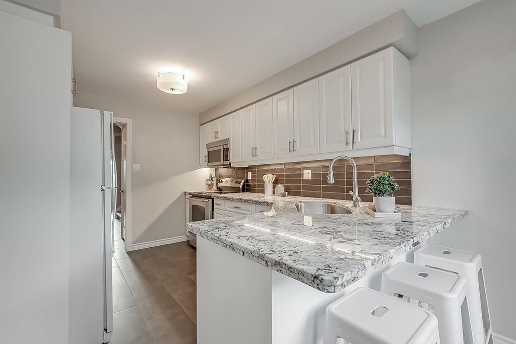Stunning Renovated Freehold Town in sought after South Burlington! Boasting over 2000 sq ft. of living space, this 3+1 Bed, 2 Bath has a designer's touch & is surrounded by mature landscaping. A tastefully redesigned interior where every detail has been carefully curated. The open-concept living space boasts a seamless flow, adorned with contemporary finishes & an abundance of natural light. The reno'd kitchen features stone countertops, & custom high end cabinetry, a breakfast bar & direct access to back patio. The Liv/DinRm combination offers rich hrdwd flrs & direct access to kit. Main flr has a reno'd foyer w coat closet, custom Pella front door & Reno'd 2pc bath. The 2nd floor offers a spacious Primary Bed w Double Closets, Reno'd 4pc main bath & 2 other good sized beds. Finished bsmnt w 4th bed/home office, large Rec Rm & laundry rm. Mechanicals & Roof have been updated in last 10yrs. Rarely offered 1.5 garage, large 117' deep lot w mature landscaping & double wide driveway.Furnace 2013 A/C 2014 Front Windows: Pella Front Door: Pella Roof Replaced in last 10yrs.
