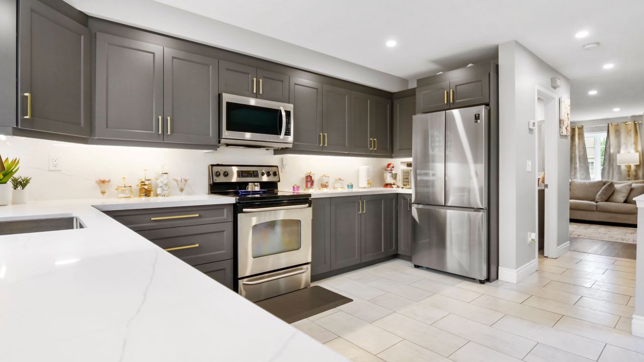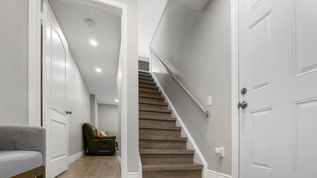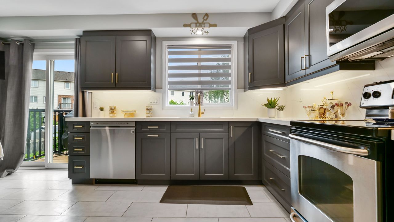 Welcome to the esteemed Bayview Townhomes community! Nestled just a stone's throw away from the awe-inspiring waterfront trails of Burlington Bay, you'll discover an abundance of outdoor activities to enjoy. Fully renovated from top to bottom, this end unit townhouse is tailor-made for individuals who value both quality and convenience. As you step onto the main level, you'll be greeted by stylish vinyl flooring and a versatile flex space. Sliding doors effortlessly lead you to a charming and fully fenced rear yard, offering the perfect setting for hosting memorable gatherings. Ascending to the upper level, a luminous and expansive kitchen awaits, adorned with custom cabinetry, tiled floors, ample storage and counter space, and sleek SS appliances. The primary suite awaits, providing a serene sanctuary complete with abundant closet space and fully renovated bathroom. Two additional bedrooms can be found on this level, ensuring ample space for your loved ones or guests.***EXTRAS*** Pot lights throughout, custom kitchen w quartz counters and backsplash, 3 renovated bathrooms, interior garage access, new balcony with custom railings, custom made stairs to match flooring, feature wall.