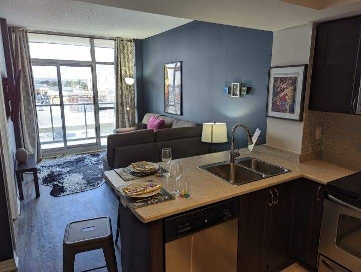 Welcome To The Ironstone! This Stunning 1 Bedroom + Den Furnished Unit. Open Living Space With Balcony Accessible From The Living Room And Primary Bedroom. This Gem Is Located In Burlington's Most Convenient Location. The Ironstone Offers The Perfect Balance Of City Living And Outdoor Recreation. 24 Hours Concierge Service. Close To Restaurants, Entertainment And All Amenities.Amenities Include Entertainment And Media Room, Gym, Yoga Studio, Rooftop Terrace With Bbq, Gas Fireplace, Visitor Parking And Concierge Service. Located Near Highways, Go Transit, Dining, Shopping, And Hiking Trails.