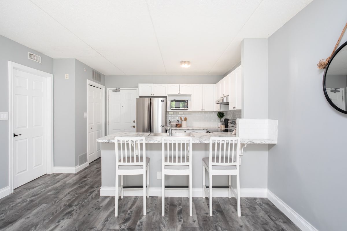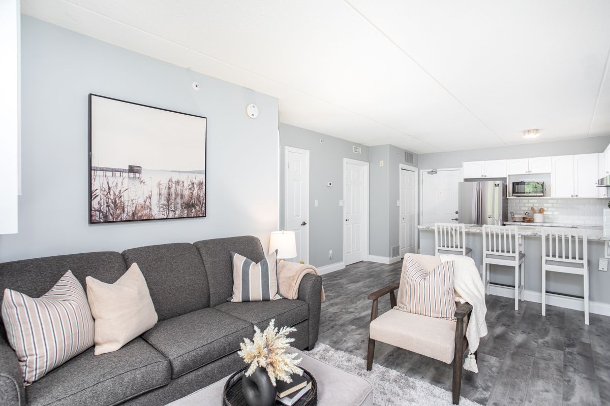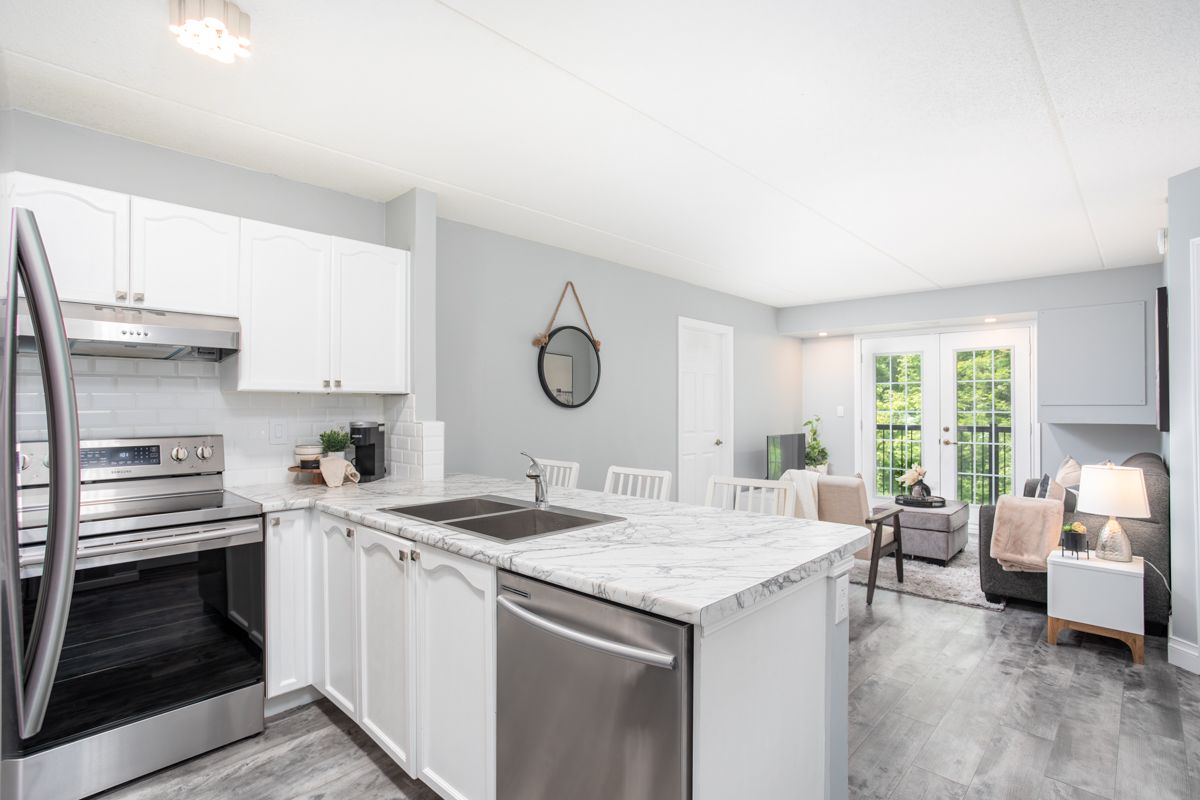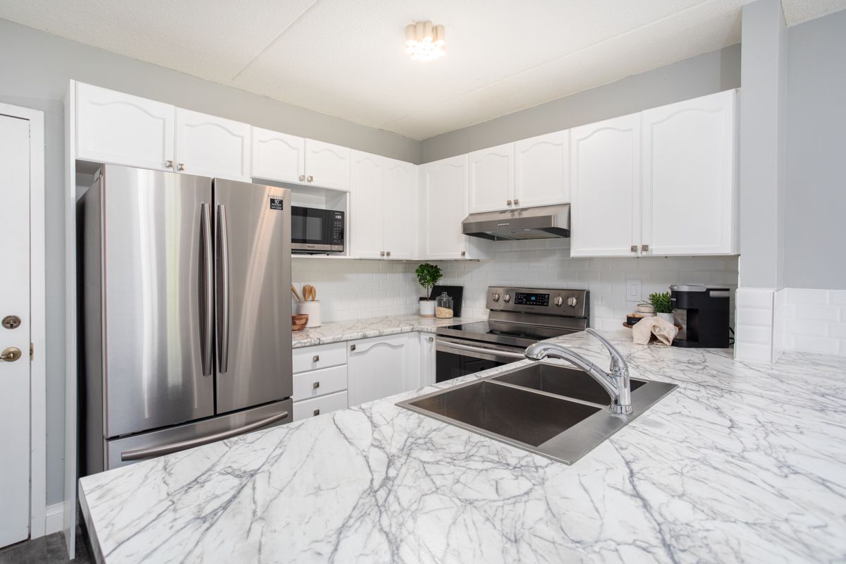 Location, Location, Location. Modern & chic 2-bedroom condo located in desirable “Orchard Uptown”. Nestled in private setting, this extremely well-kept suite offers you the best of turn-key lifestyle. Contemporary open concept design with gorgeous laminate flooring through-out, an updated kitchen with premium built-in stainless-steel appliances; subway tile backsplash showcasing a gorgeous living space with walk-out to private balcony overlooking in a Muskoka-like setting. In-suite laundry, underground parking; storage locker. On-site amenities include clubhouse with party and fitness facility, underground car wash bay; plenty of guest parking. Nothing to do but move-in and enjoy serenity in the city just steps from shopping, restaurants, and entertainment.