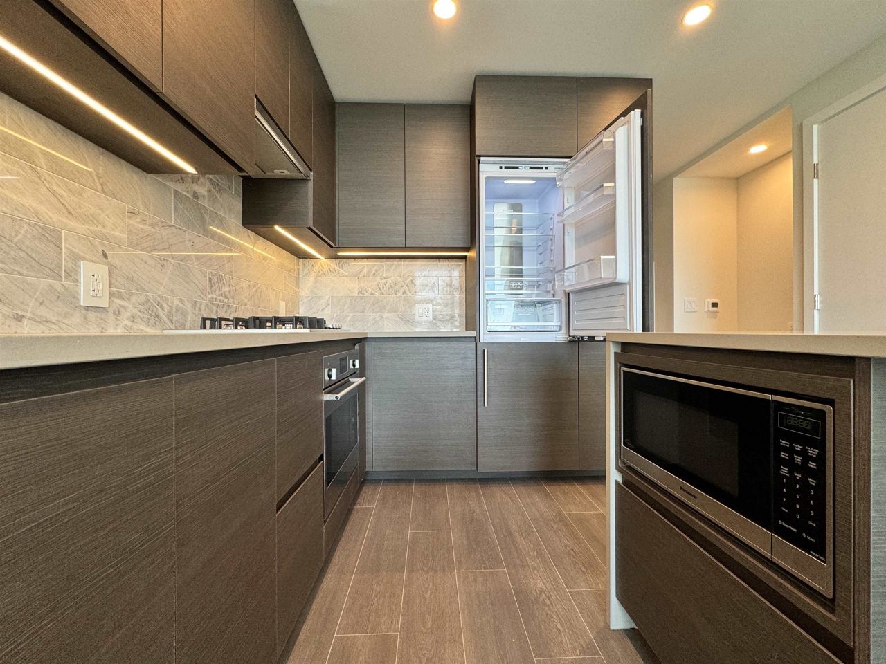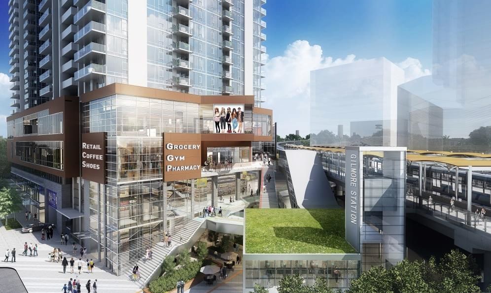 Introducing a brand new, massive development by renowned developer Onni Group. An urban community connected to Gilmore SkyTrain station and world class shopping and entertainment. Residents enjoy a long list of luxurious amenities such as: 24-hour concierge, indoor swimming pool, steam room and saunas, hot tub, movie theatre, karaoke room, party rooms, bowling, golf simulator, fitness room, rooftop patio, children's play area and much more. Easily access Trans Canada highway, Amazing Brentwood, BCIT from this location. This West facing unit is a junior two bedroom with the best features. You will notice the difference when you compare with other junior two bedroom units: Bathtub with seating, a larger built-in workstation, a laundry closet with storage cabinets, a larger walk-in closet.